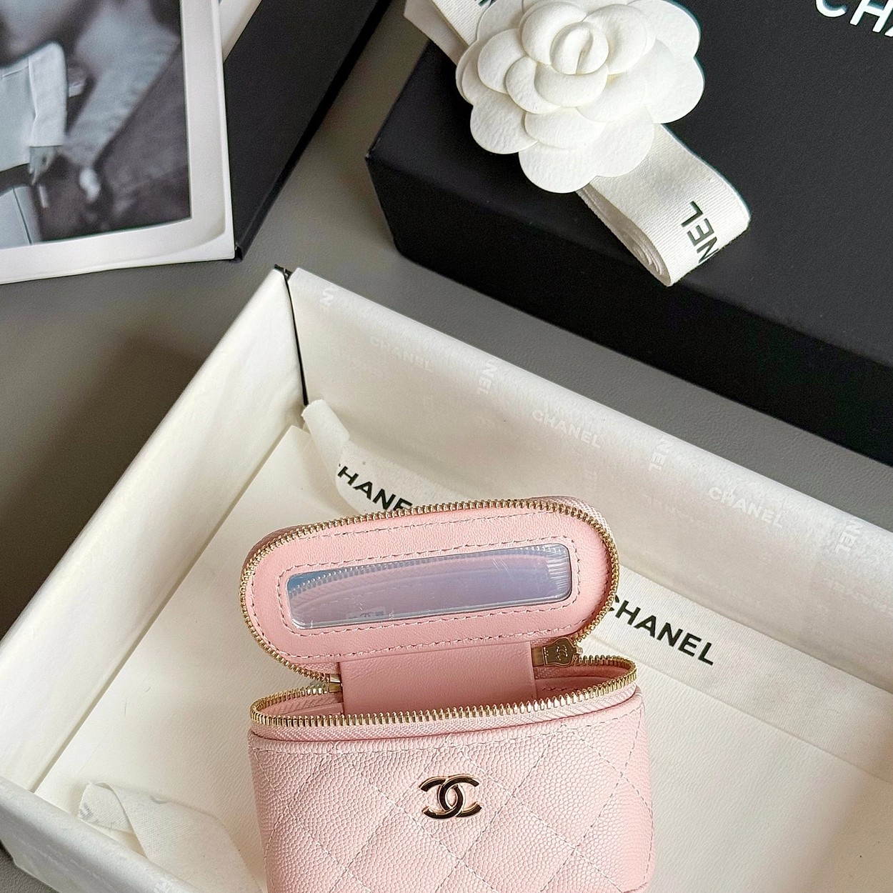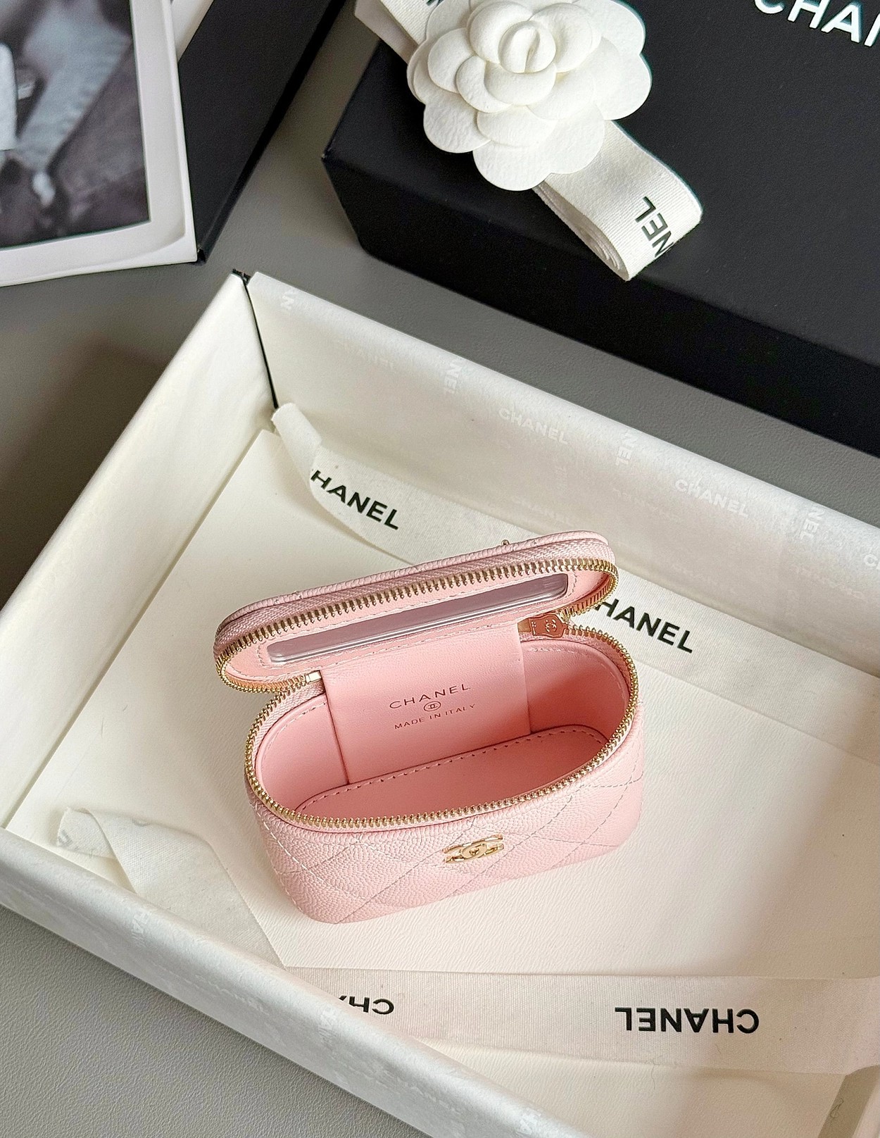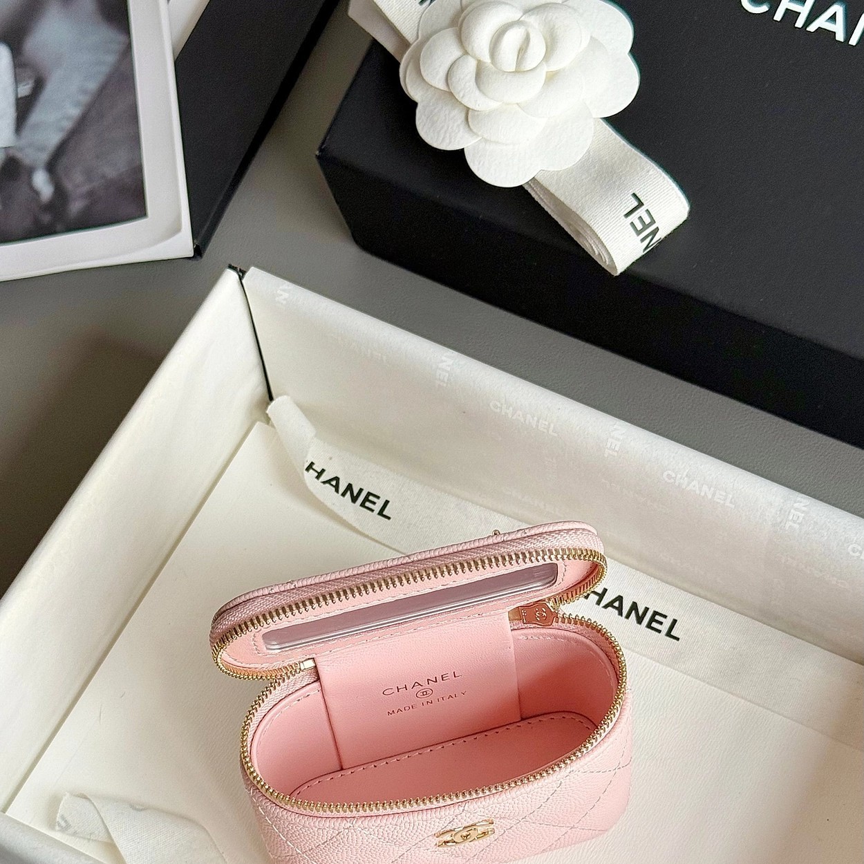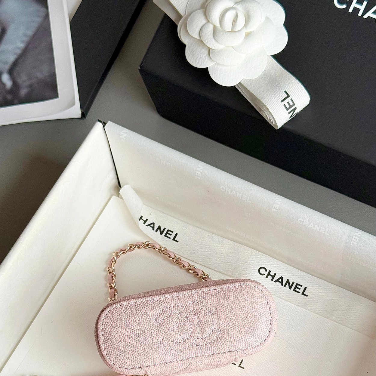 原厂Haas鱼子酱牛皮搭配24K厚钯水润香槟扣,内里可以放些小物件比如车钥匙之类!缩小版的盒子化妆包优雅又气质!小小的实在太可爱了!挂在大包上当个装饰时尚又百搭、挂在裤腰上也非常Nice……