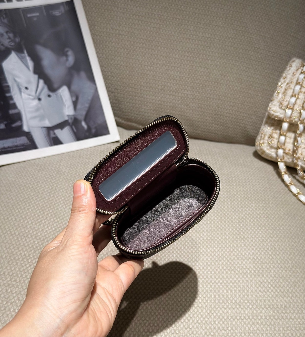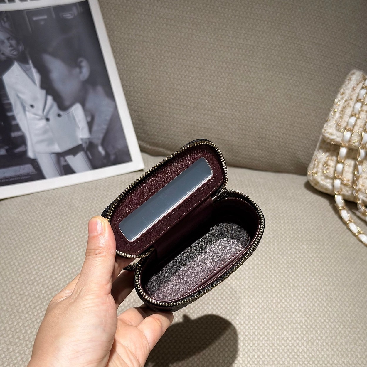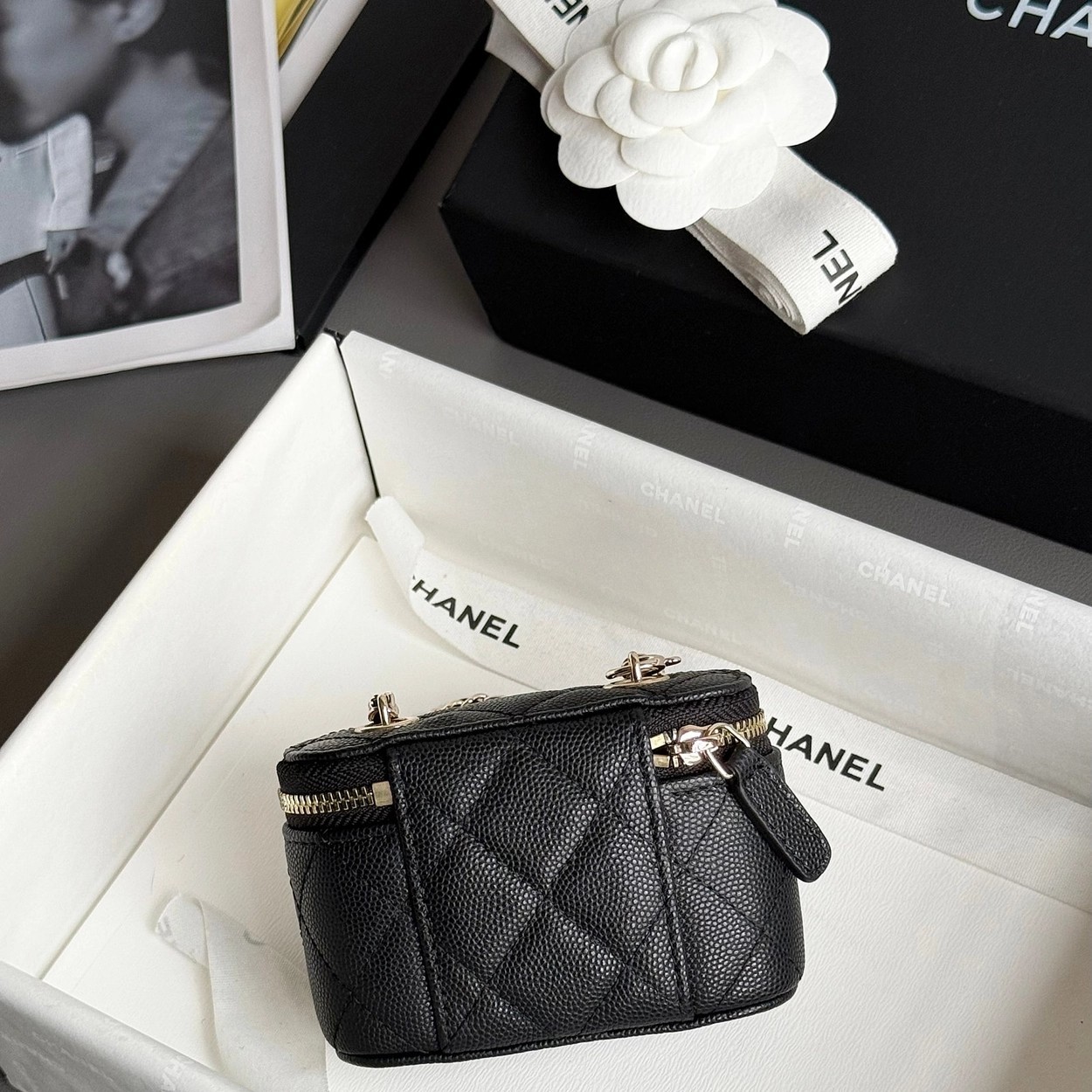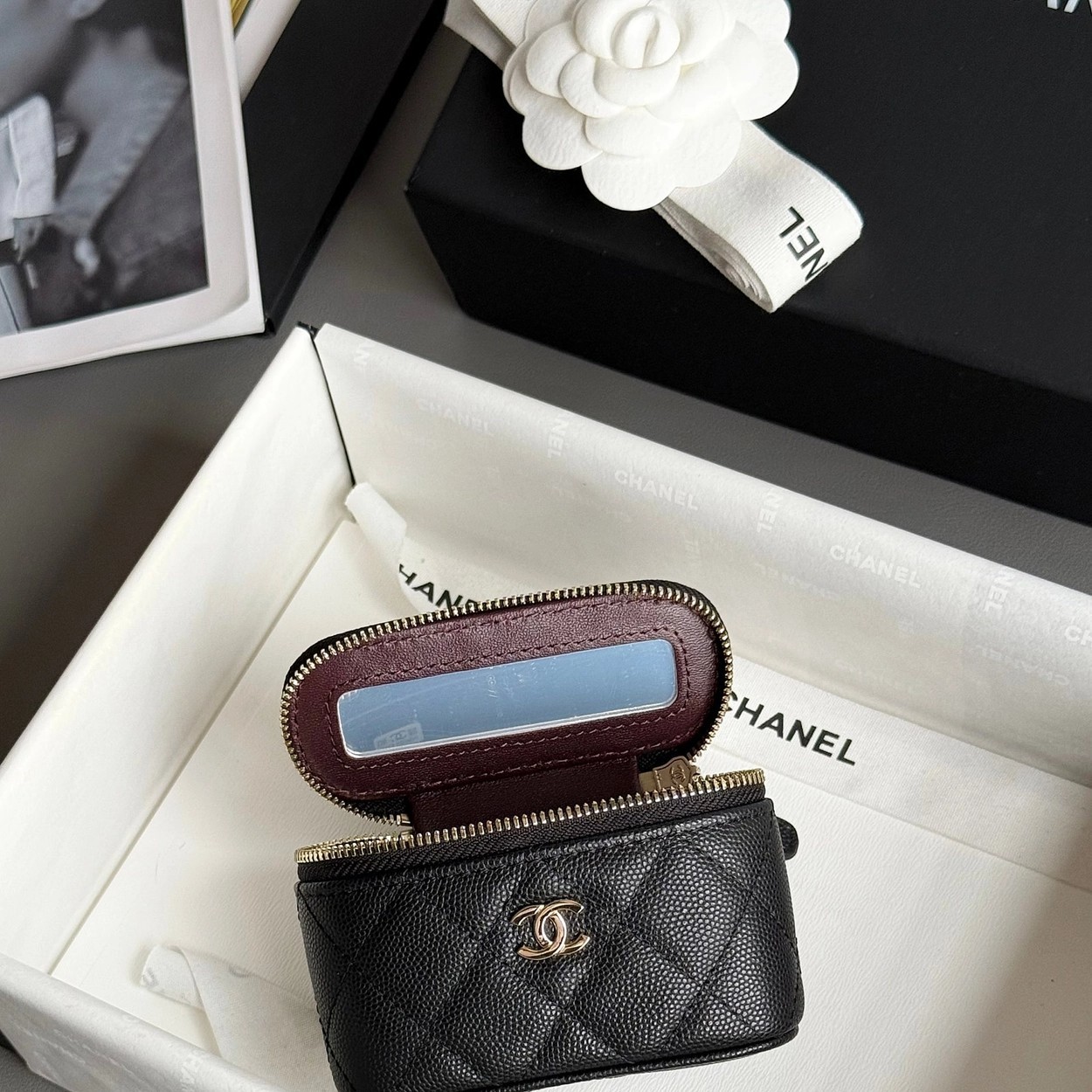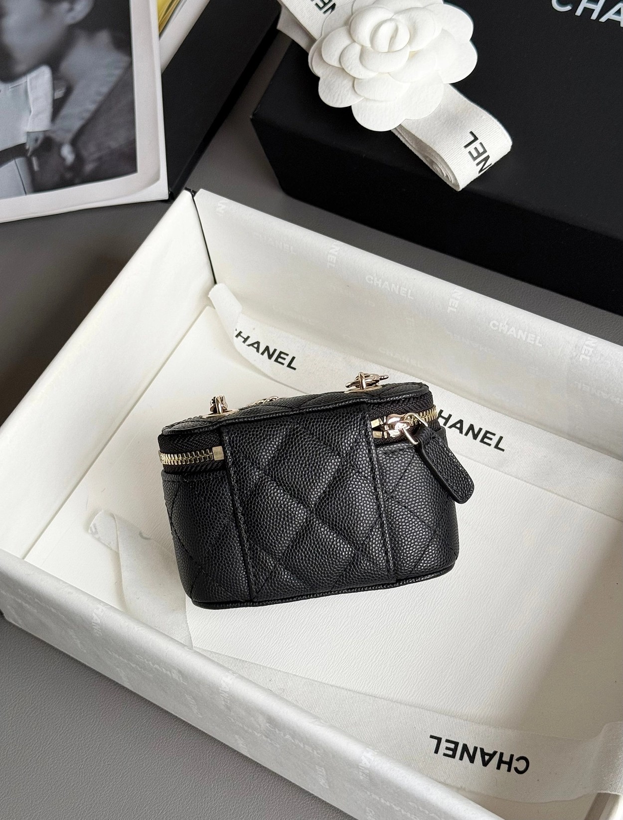 原厂Haas鱼子酱牛皮搭配24K厚钯水润香槟扣,内里可以放些小物件比如车钥匙之类!缩小版的盒子化妆包优雅又气质!小小的实在太可爱了!挂在大包上当个装饰时尚又百搭、挂在裤腰上也非常Nice……