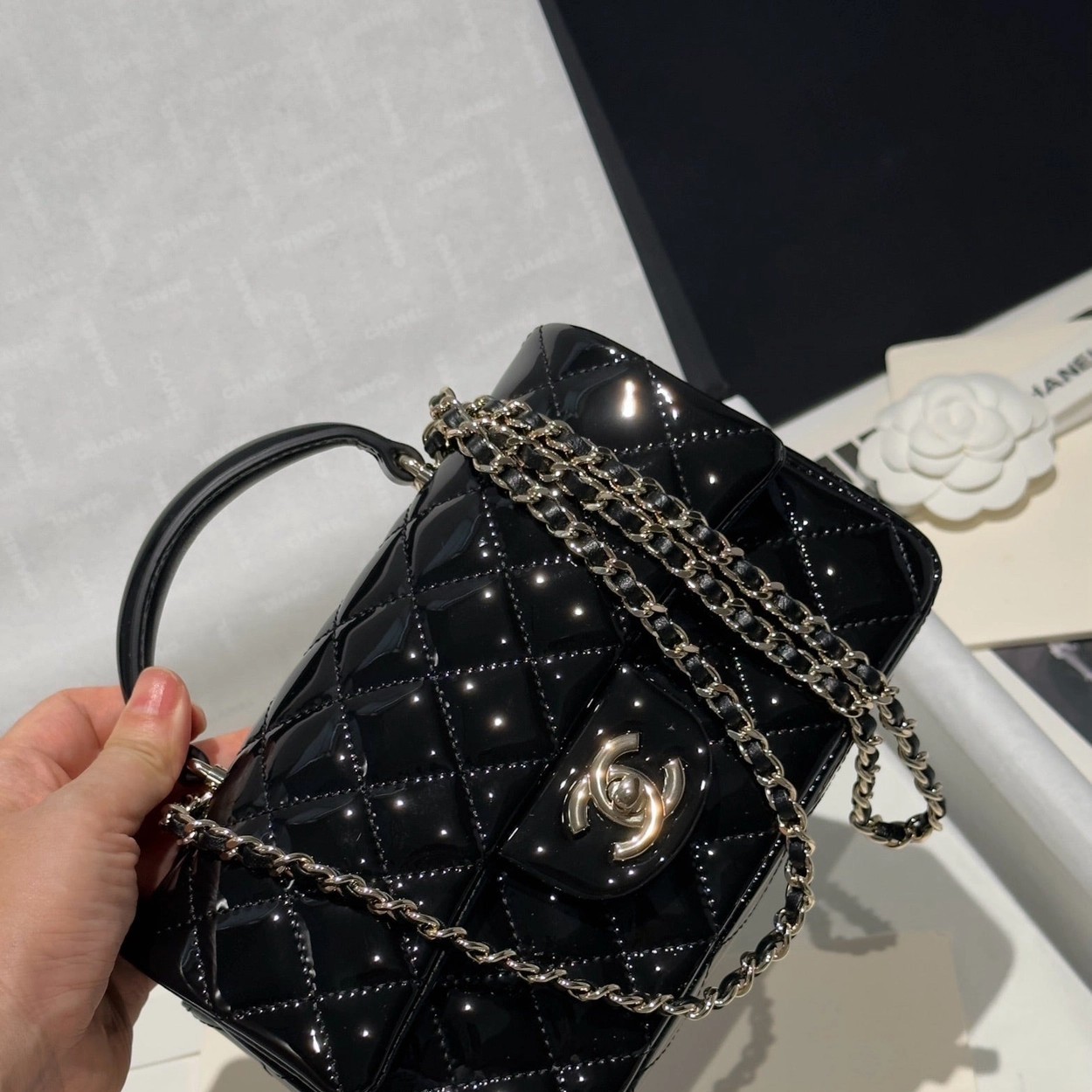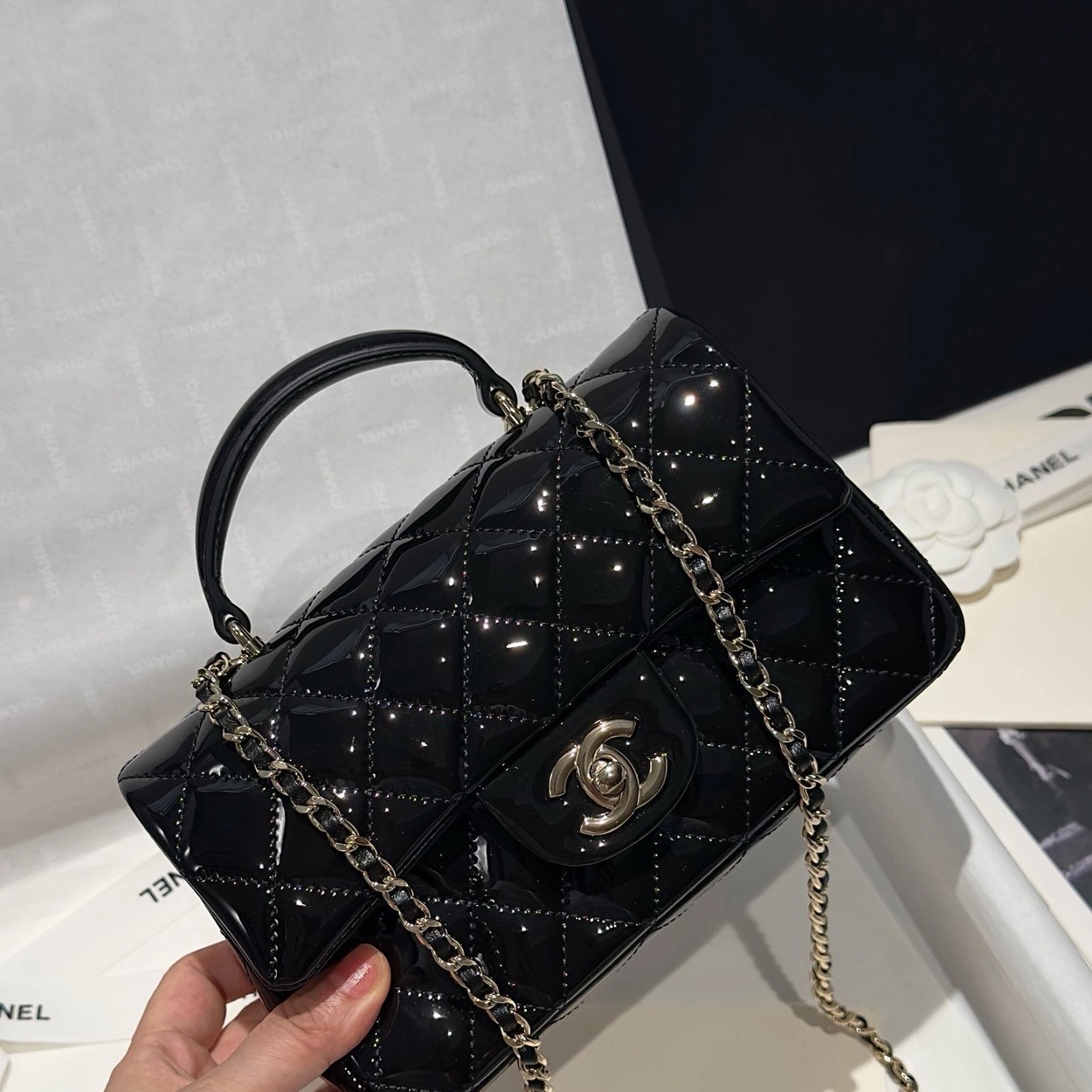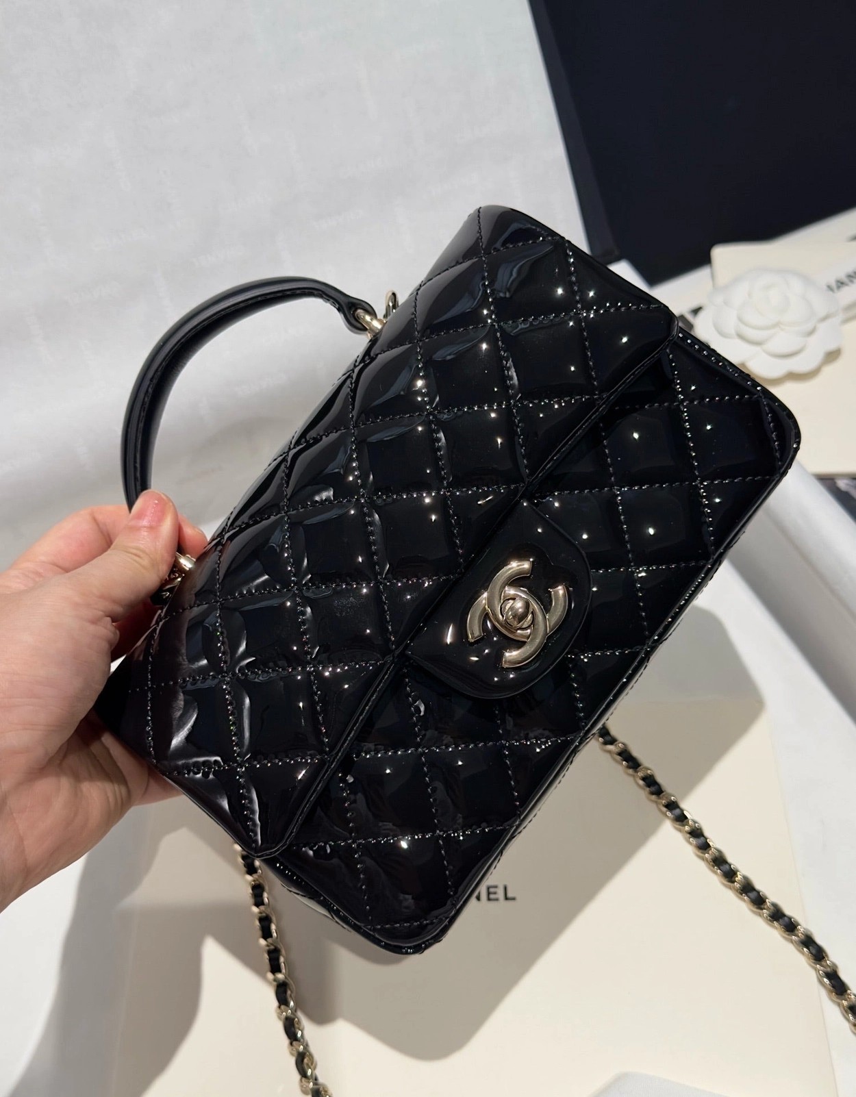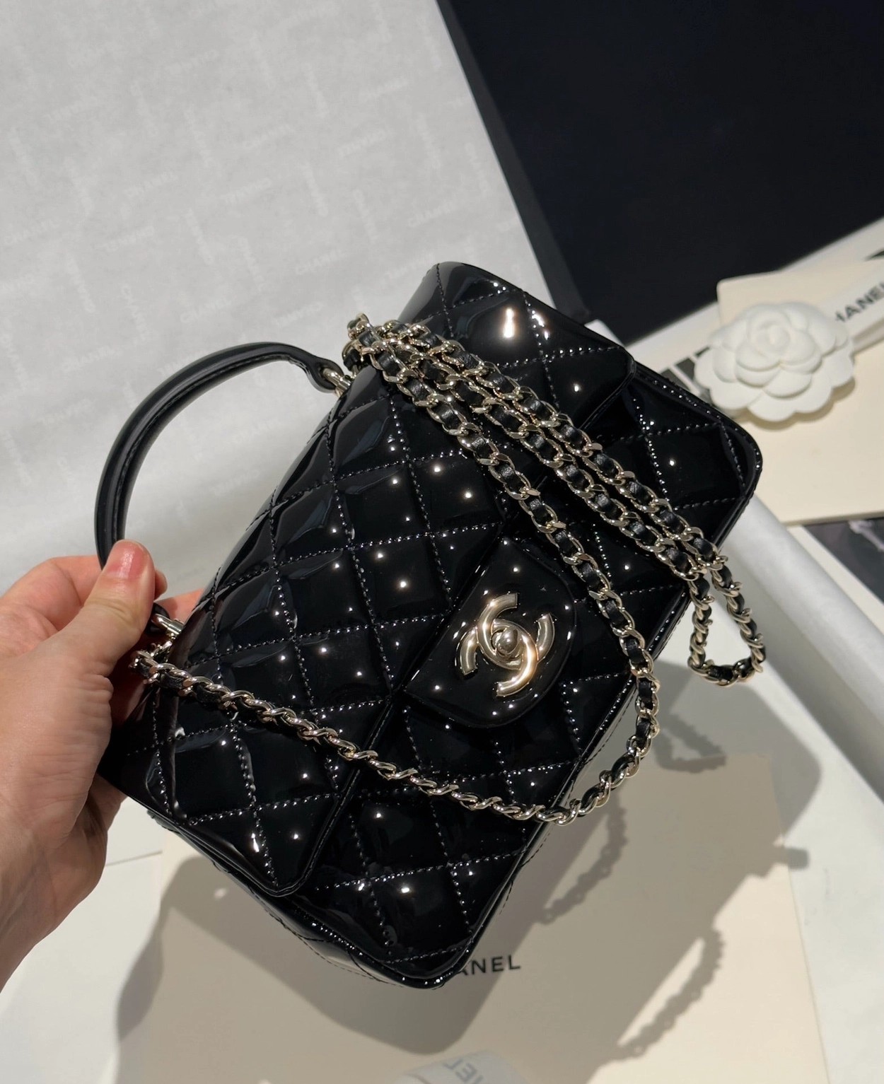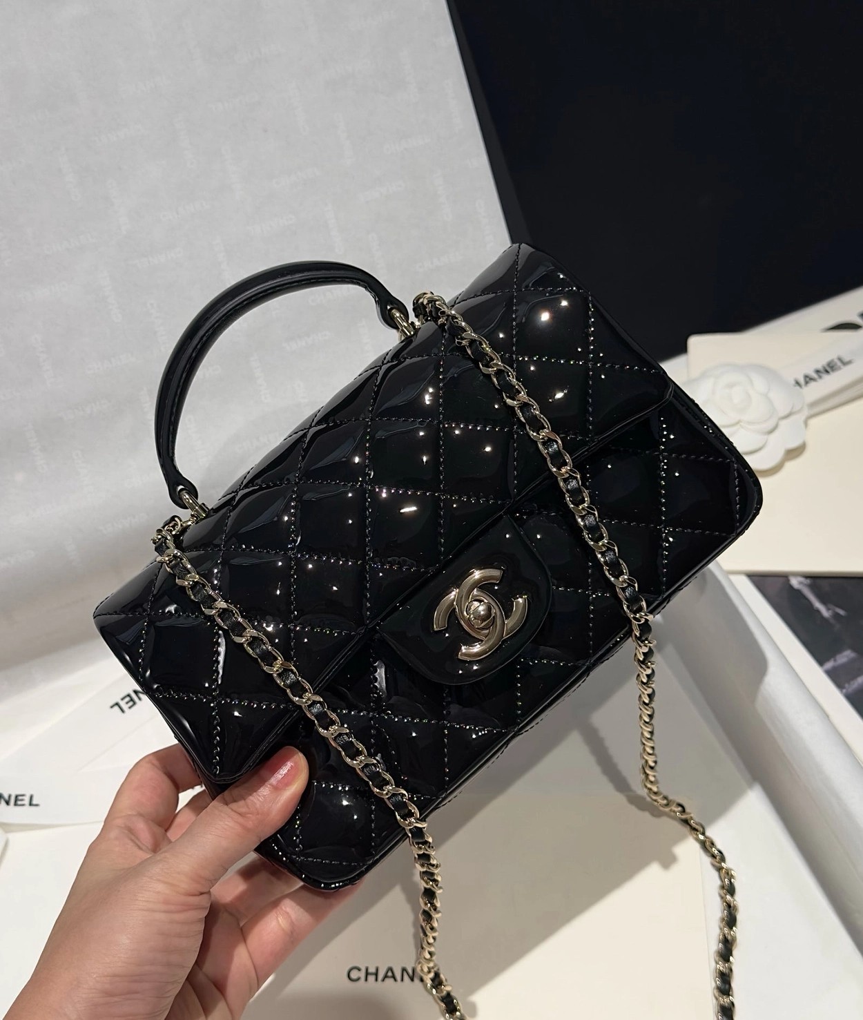 Chanel 24K手提漆皮CF大Mini handle