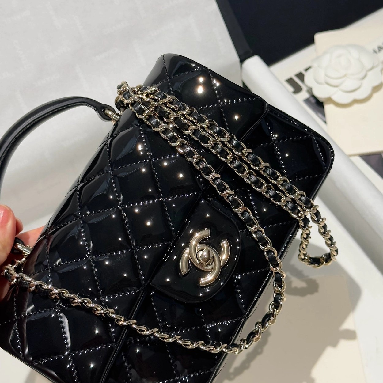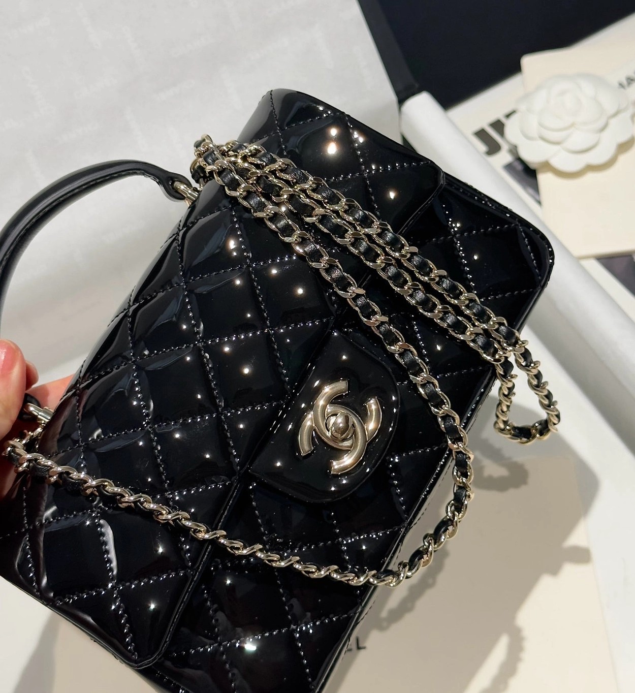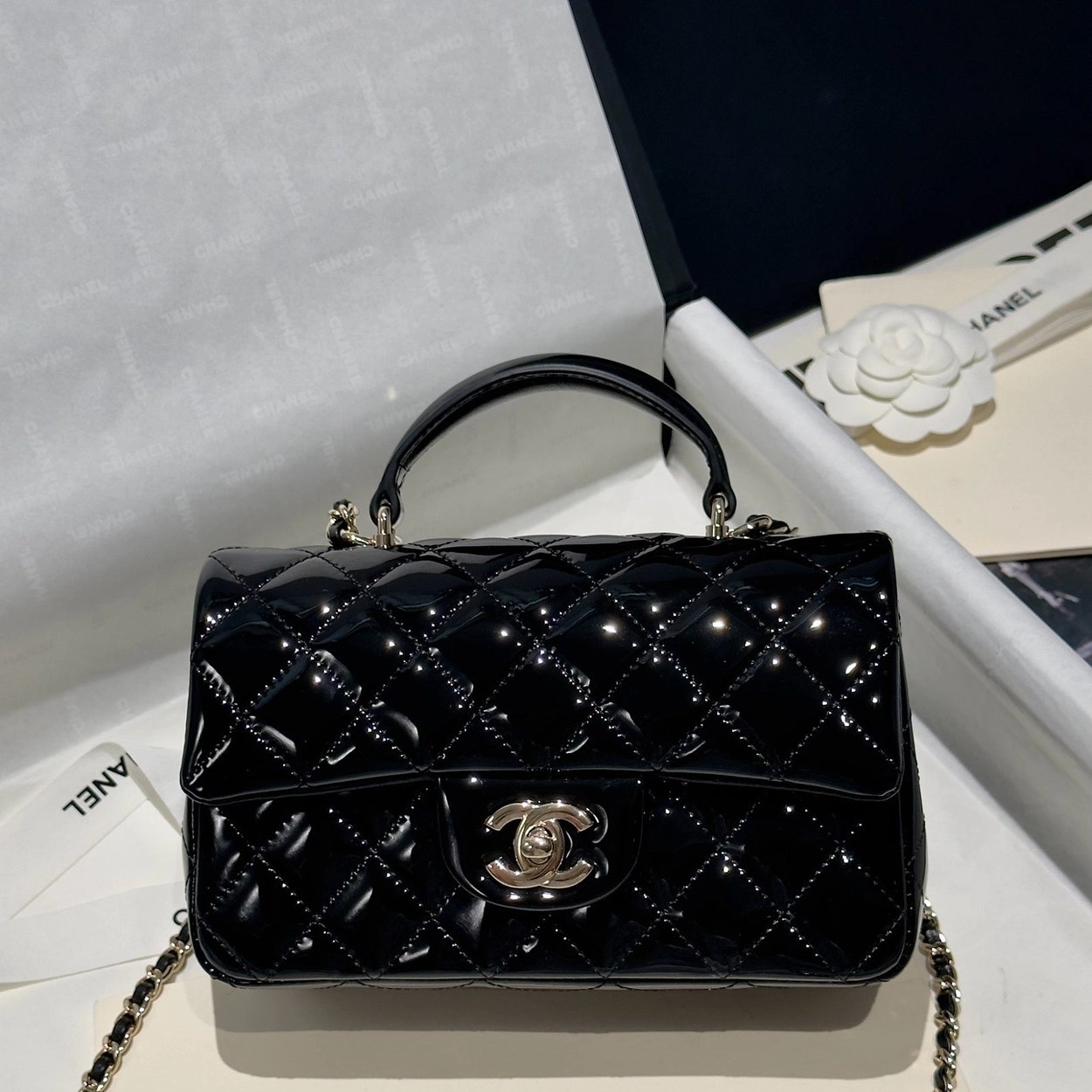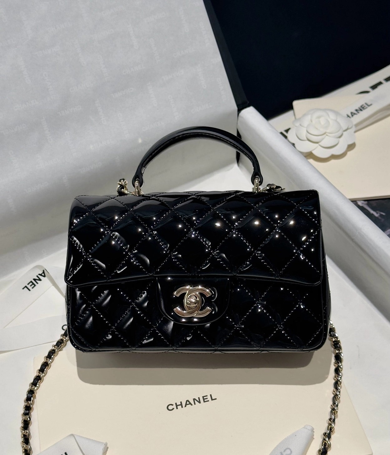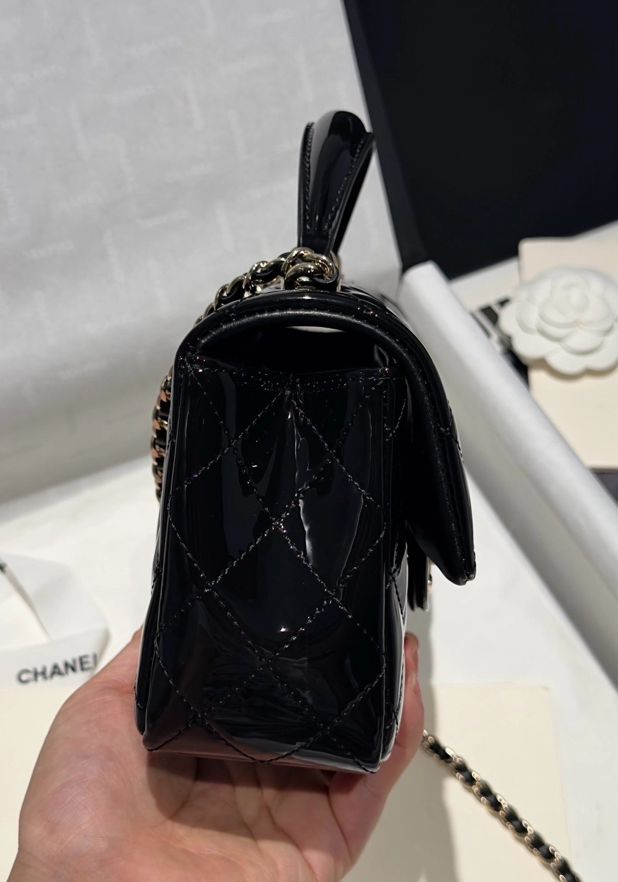 Chanel 24K手提漆皮CF大Mini handle