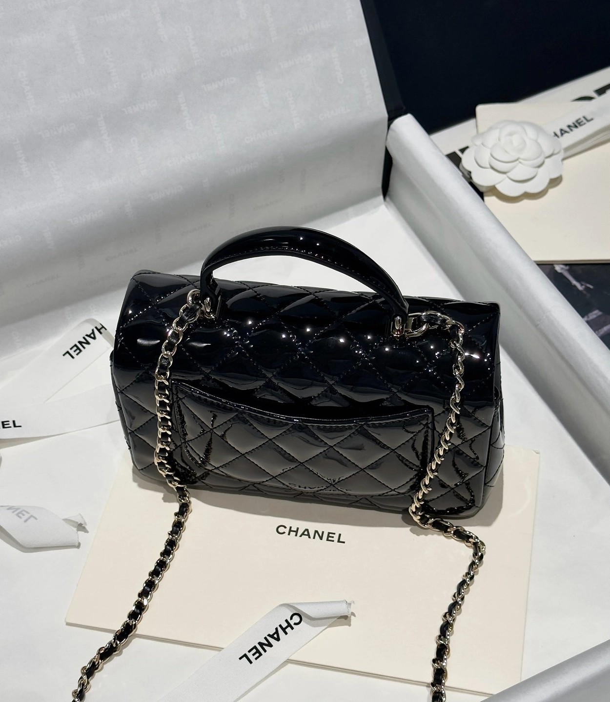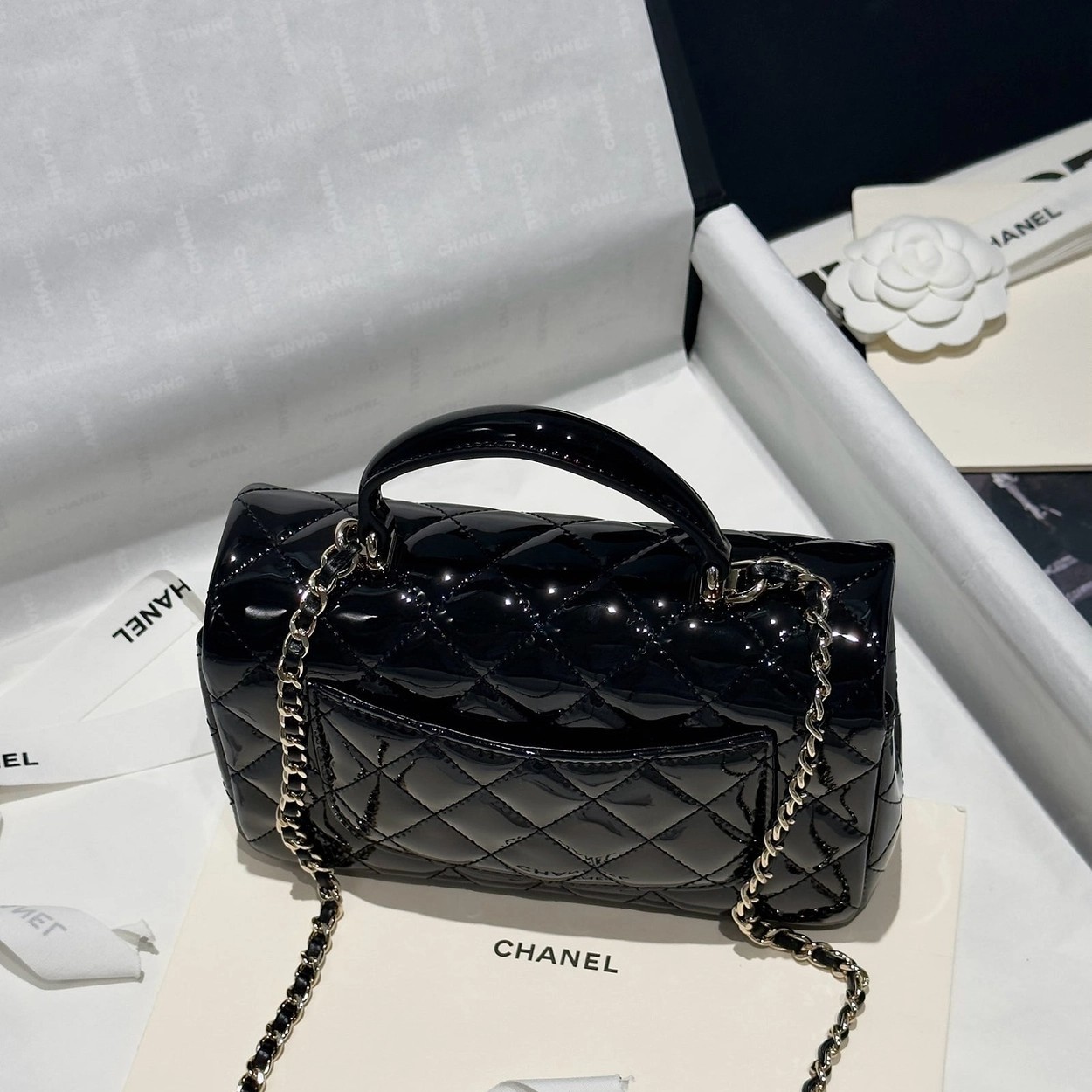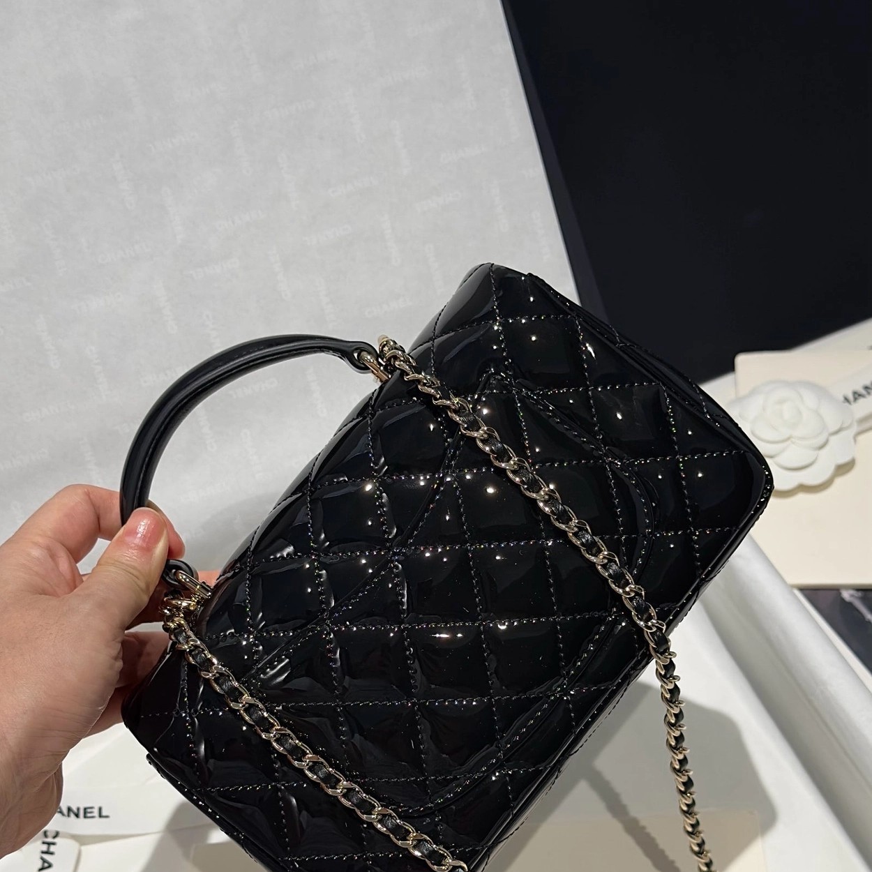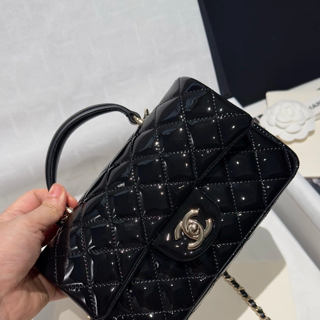 Chanel 24K手提漆皮CF大Mini handle