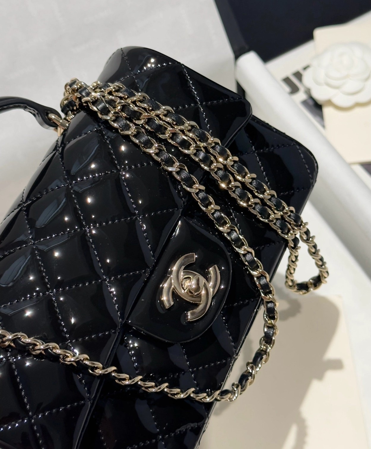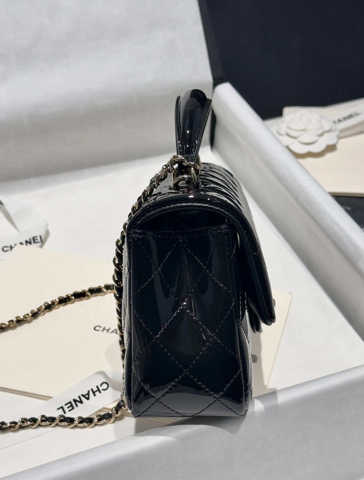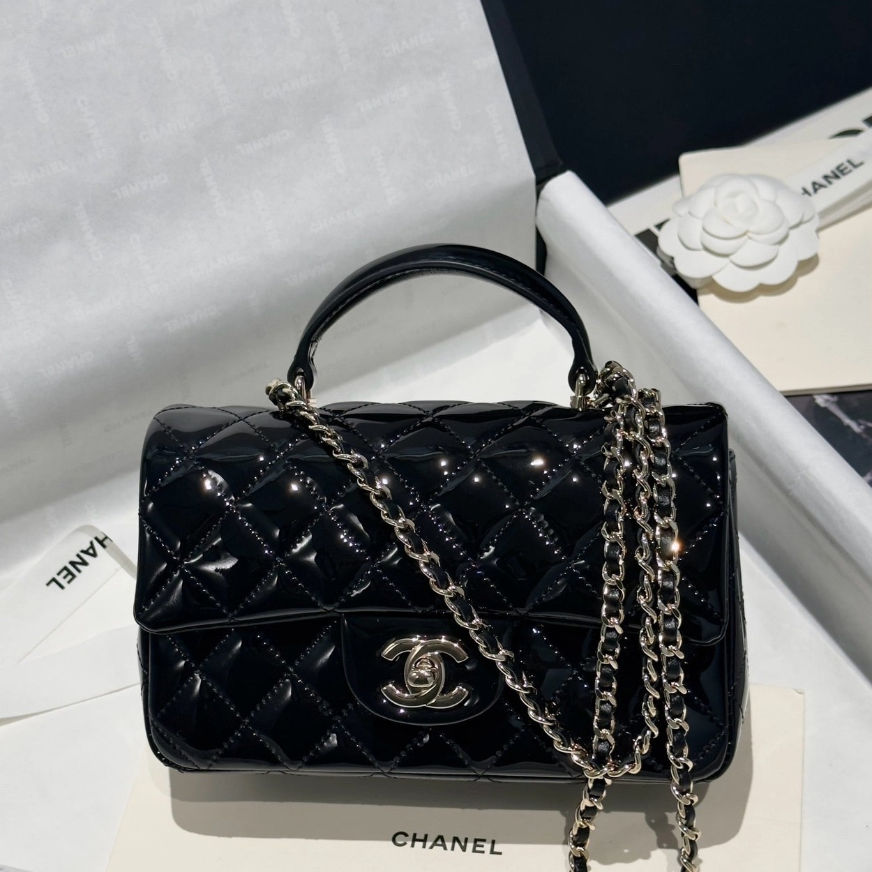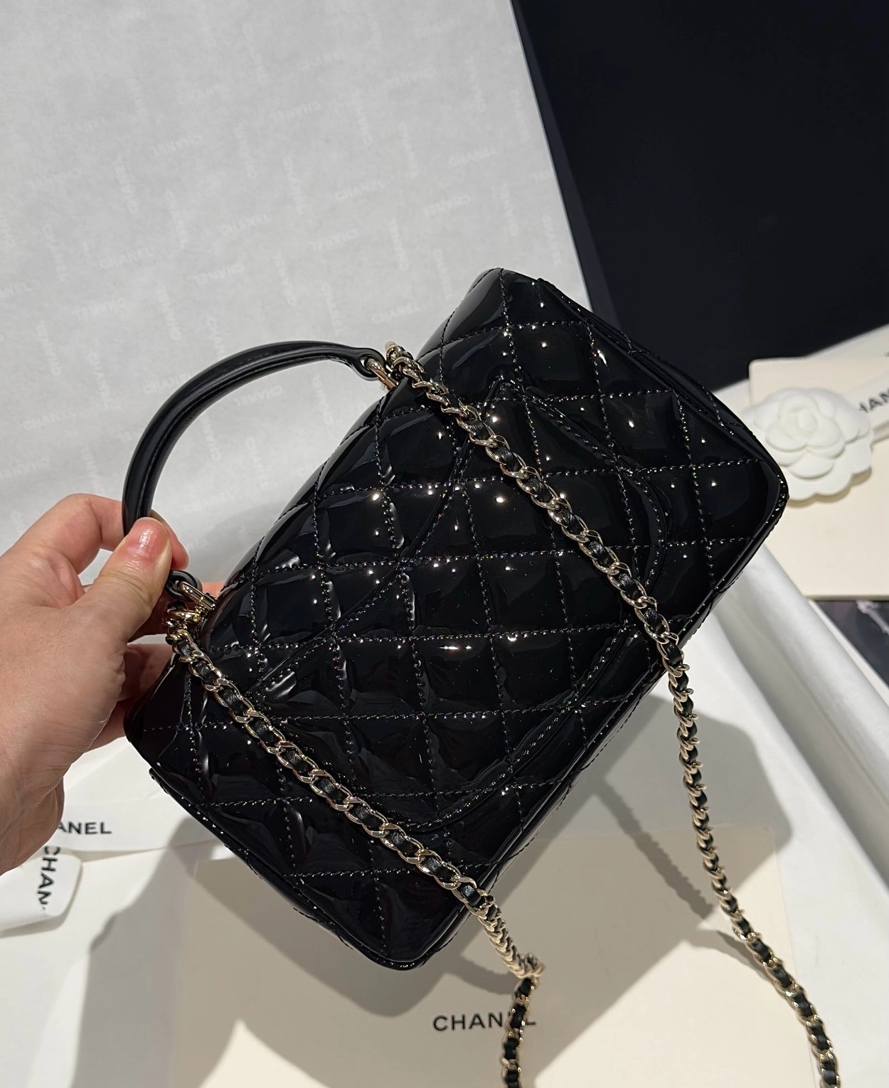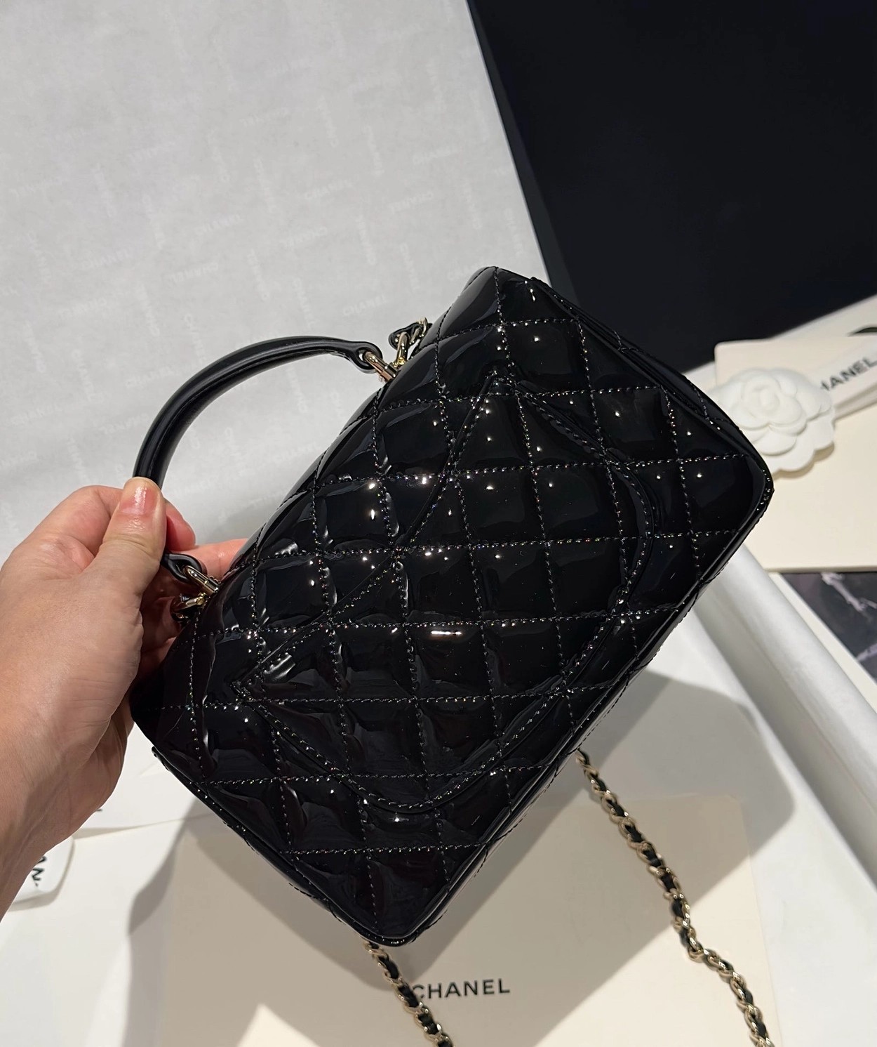 Chanel 24K手提漆皮CF大Mini handle