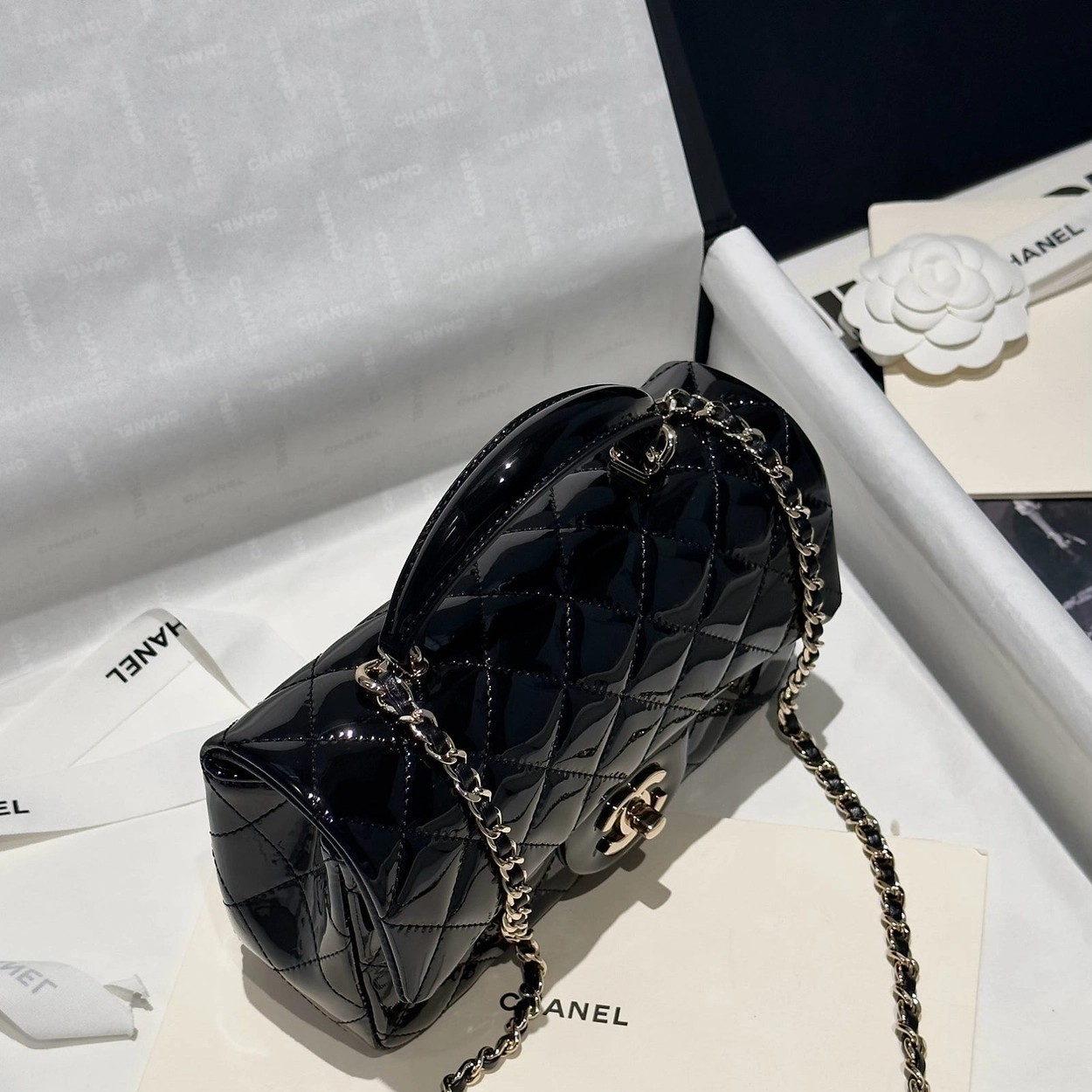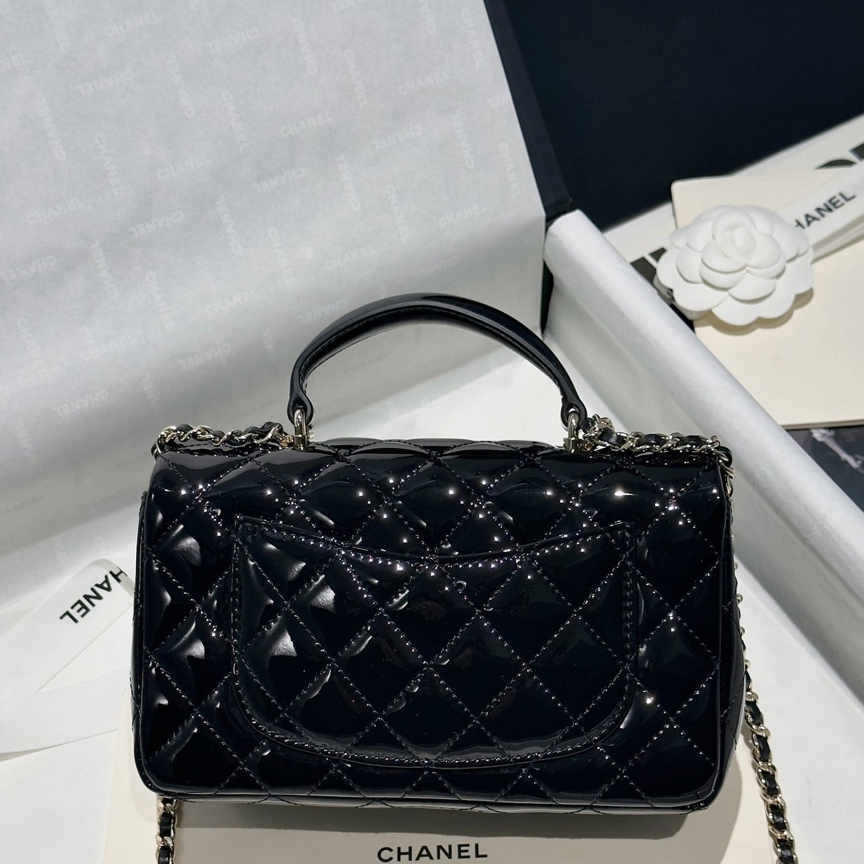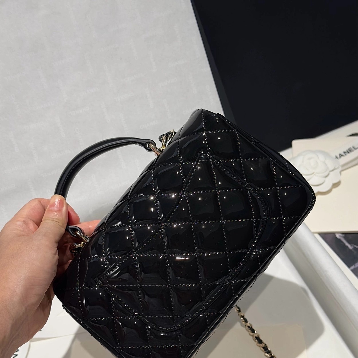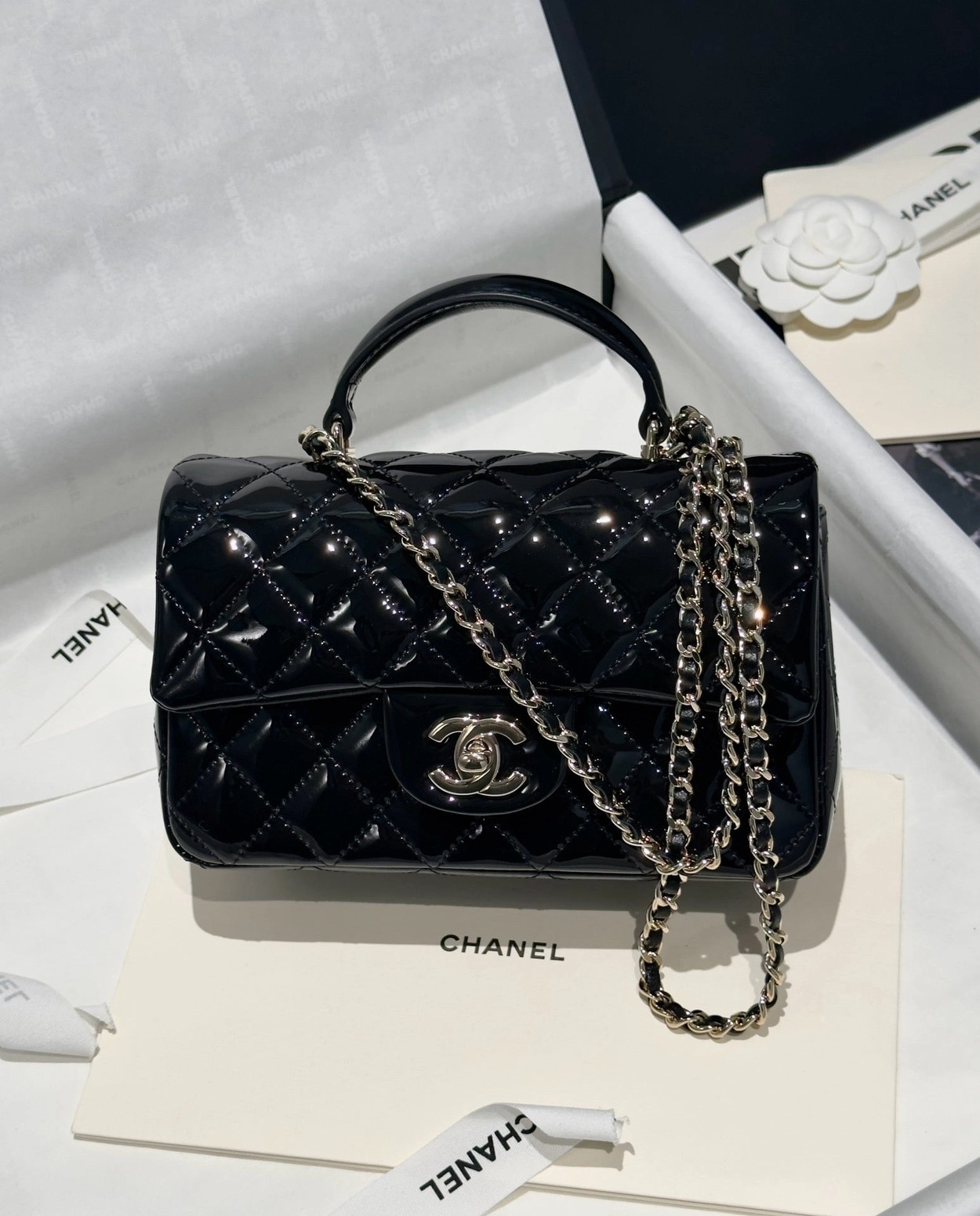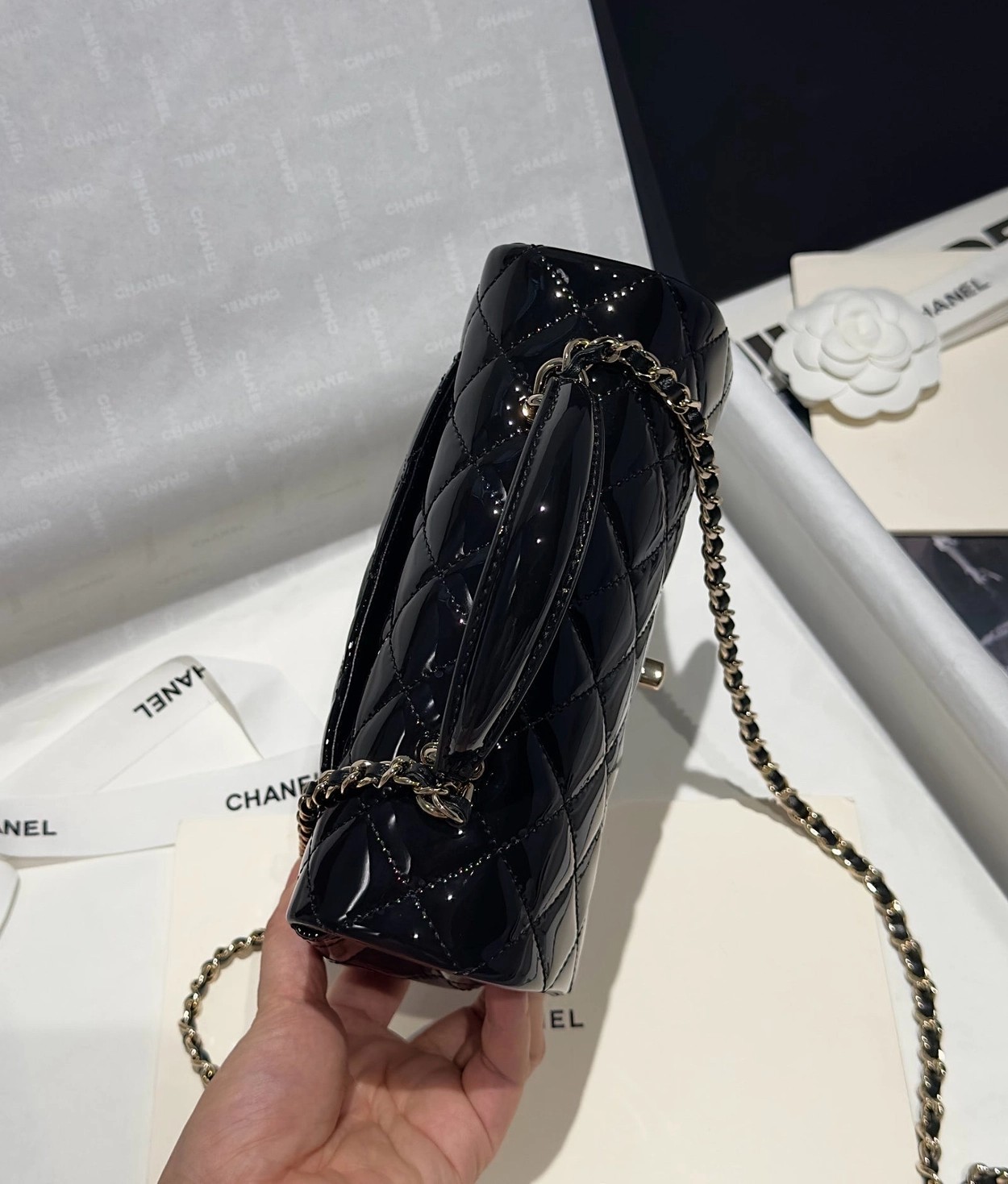 Chanel 24K手提漆皮CF大Mini handle
