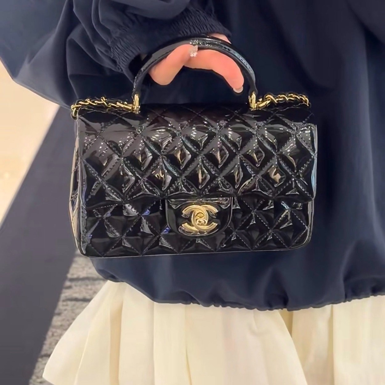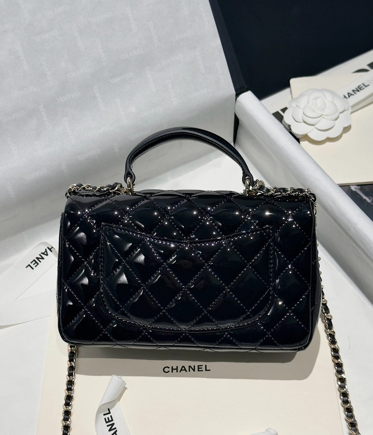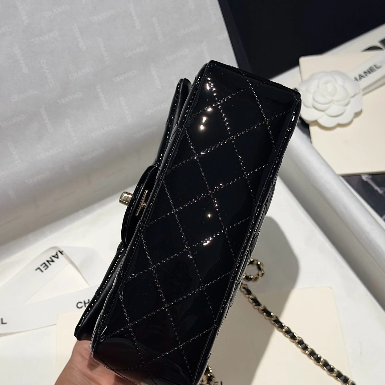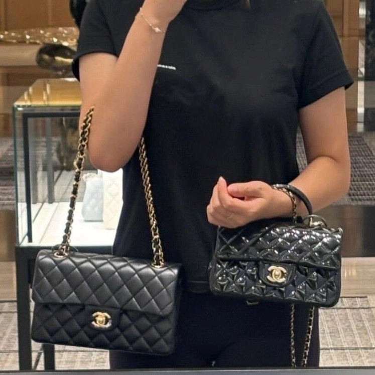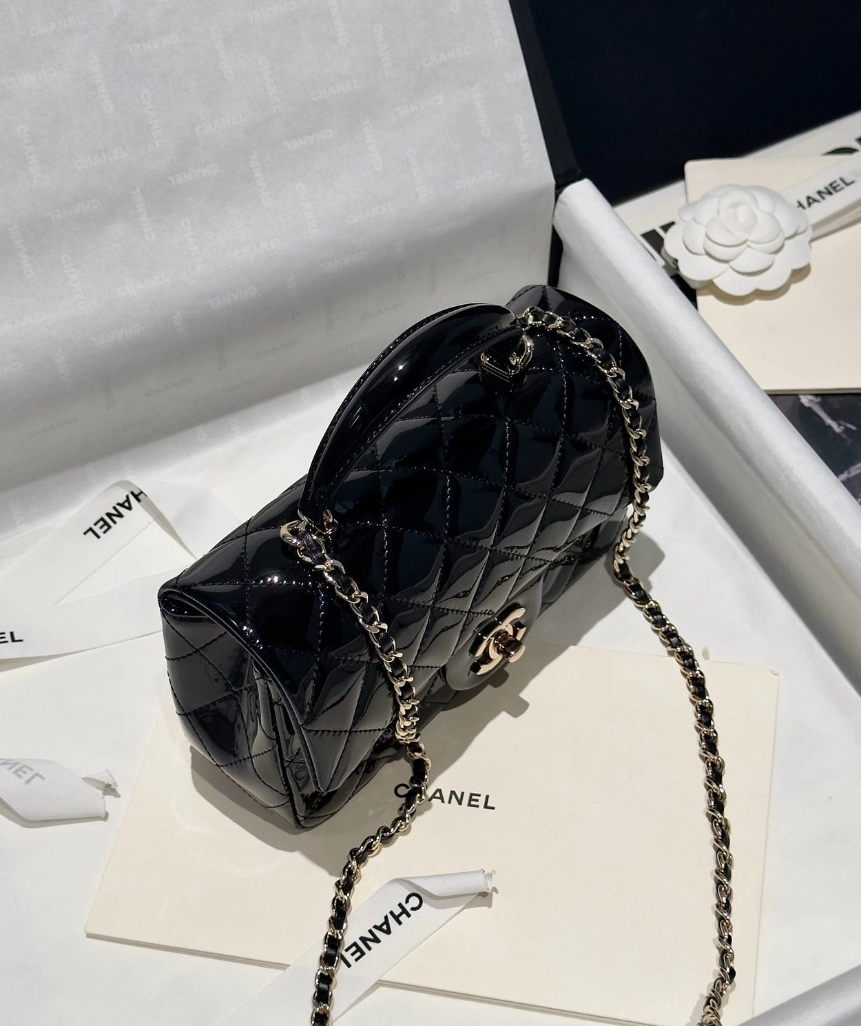 Chanel 24K手提漆皮CF大Mini handle