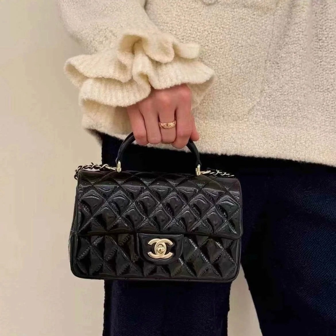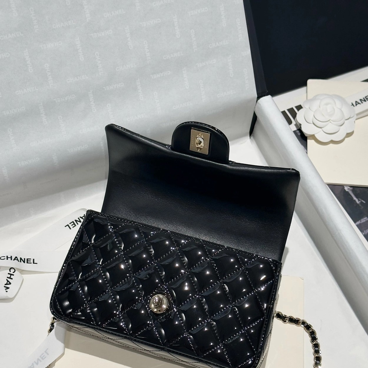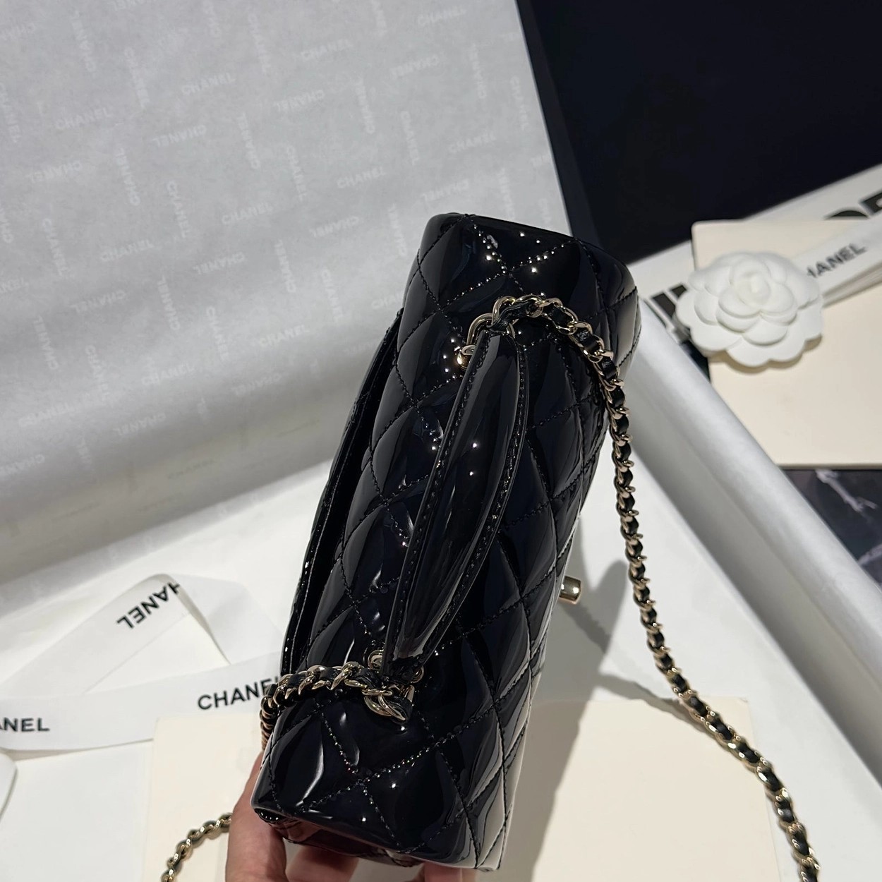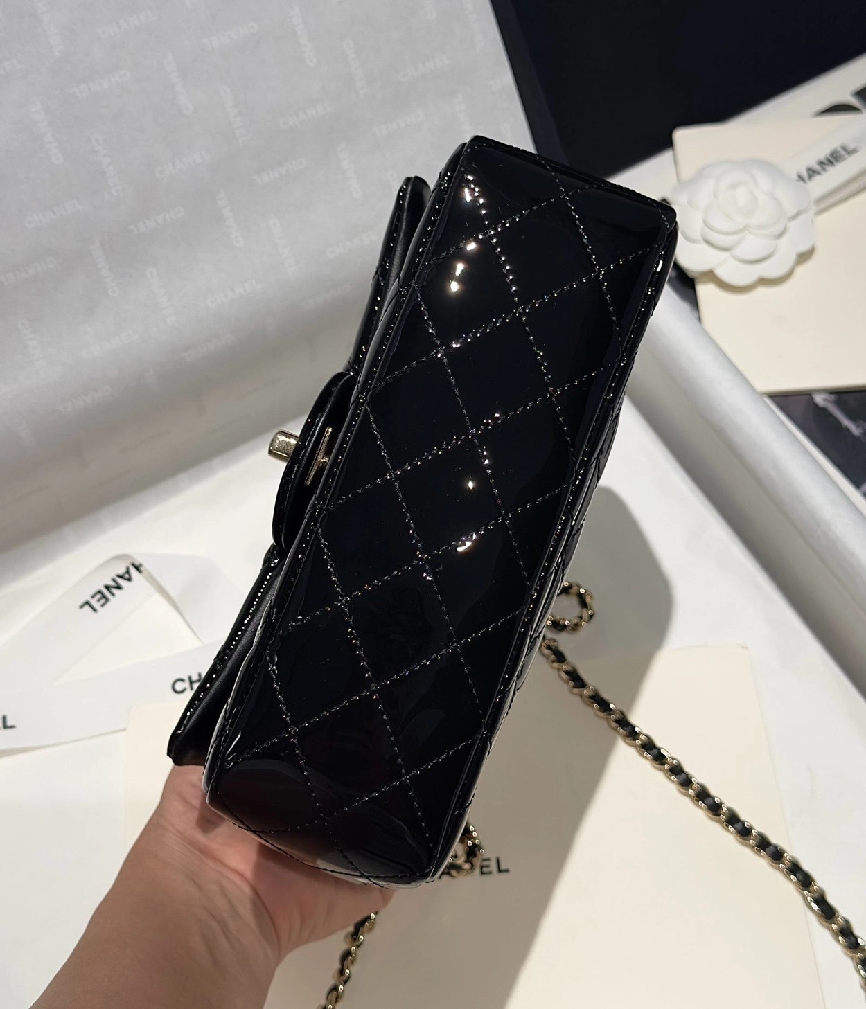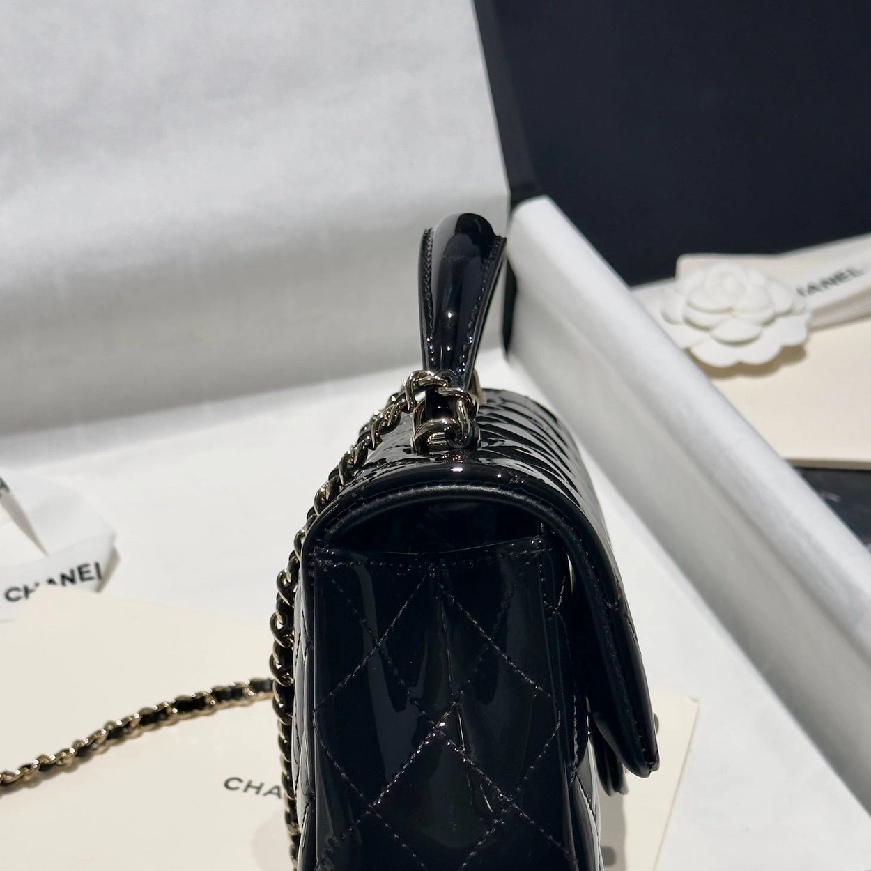 Chanel 24K手提漆皮CF大Mini handle