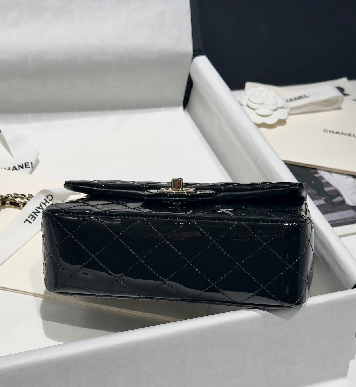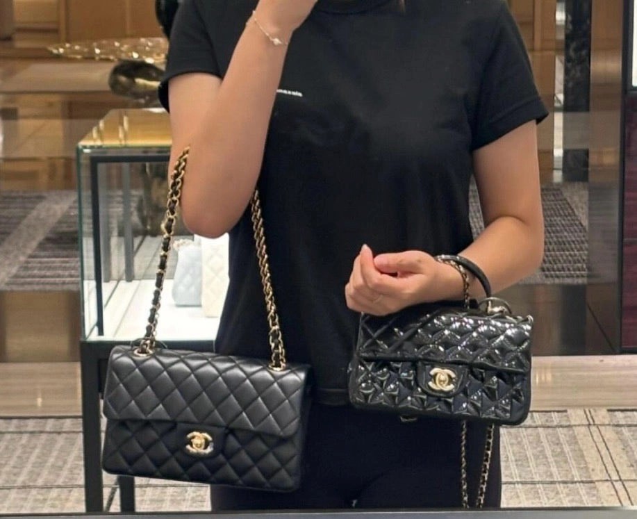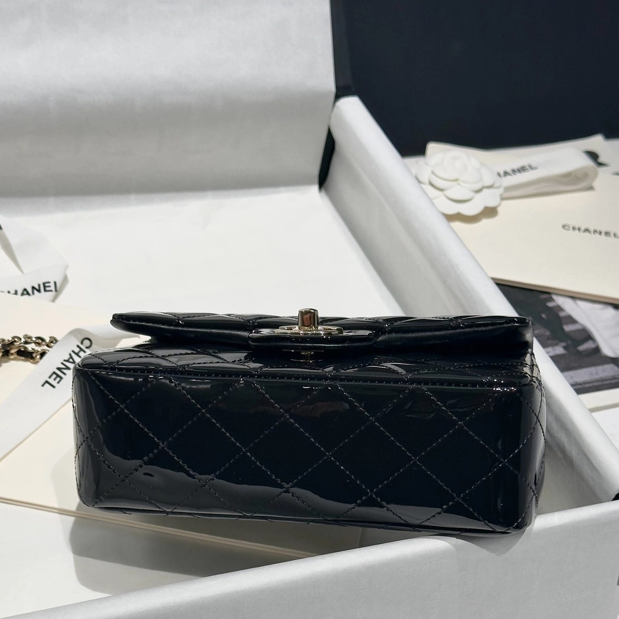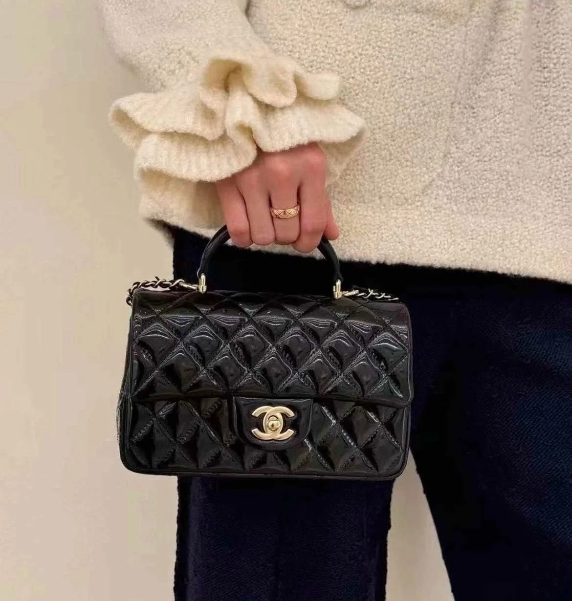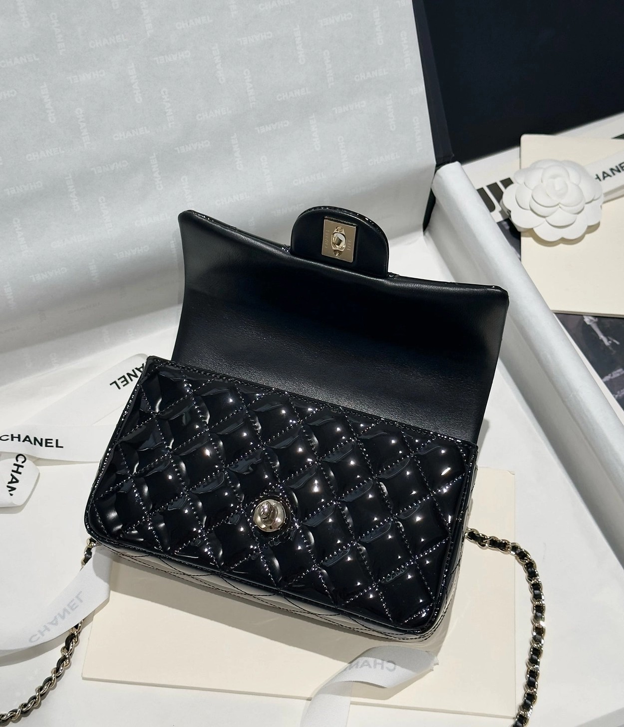 Chanel 24K手提漆皮CF大Mini handle