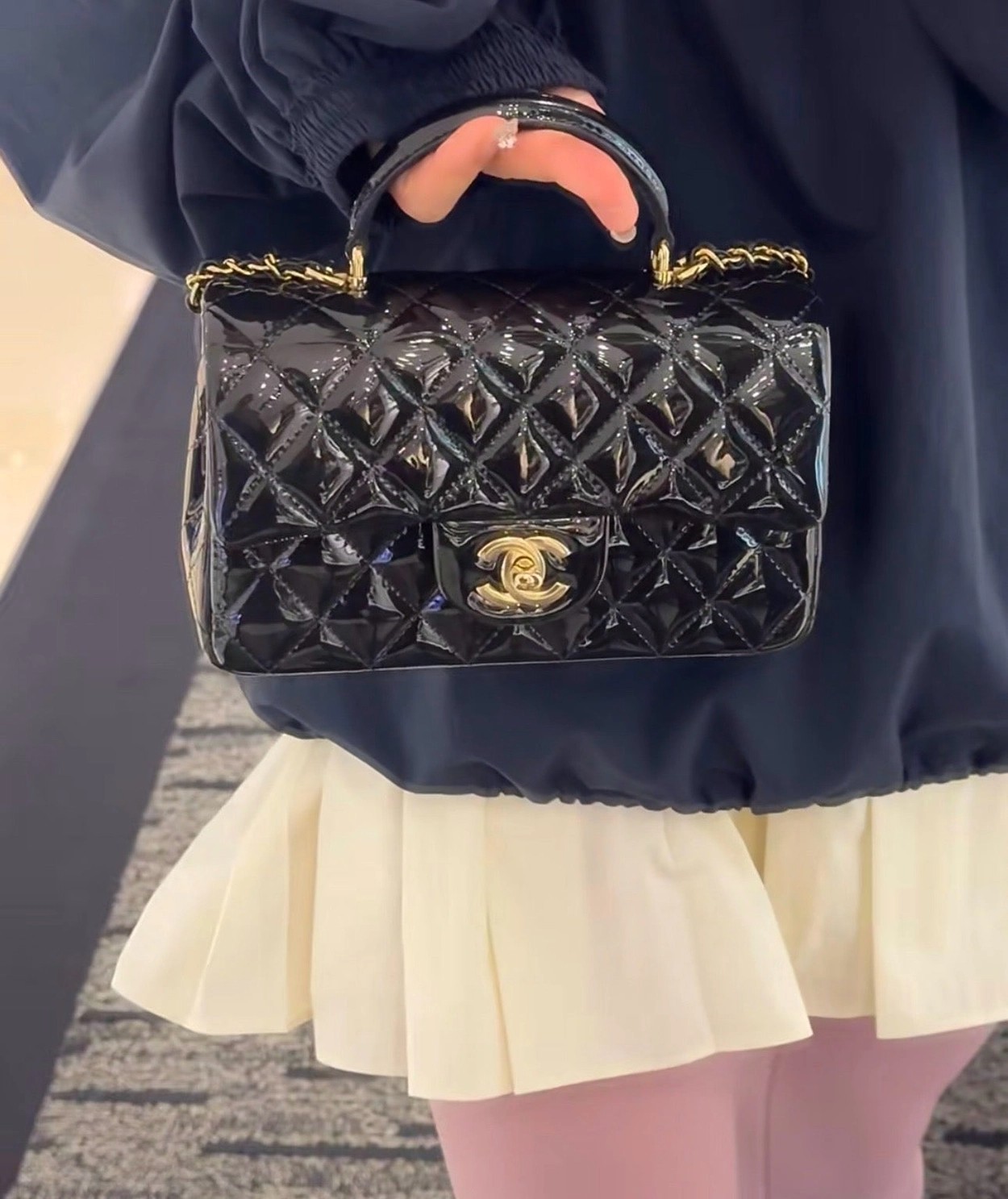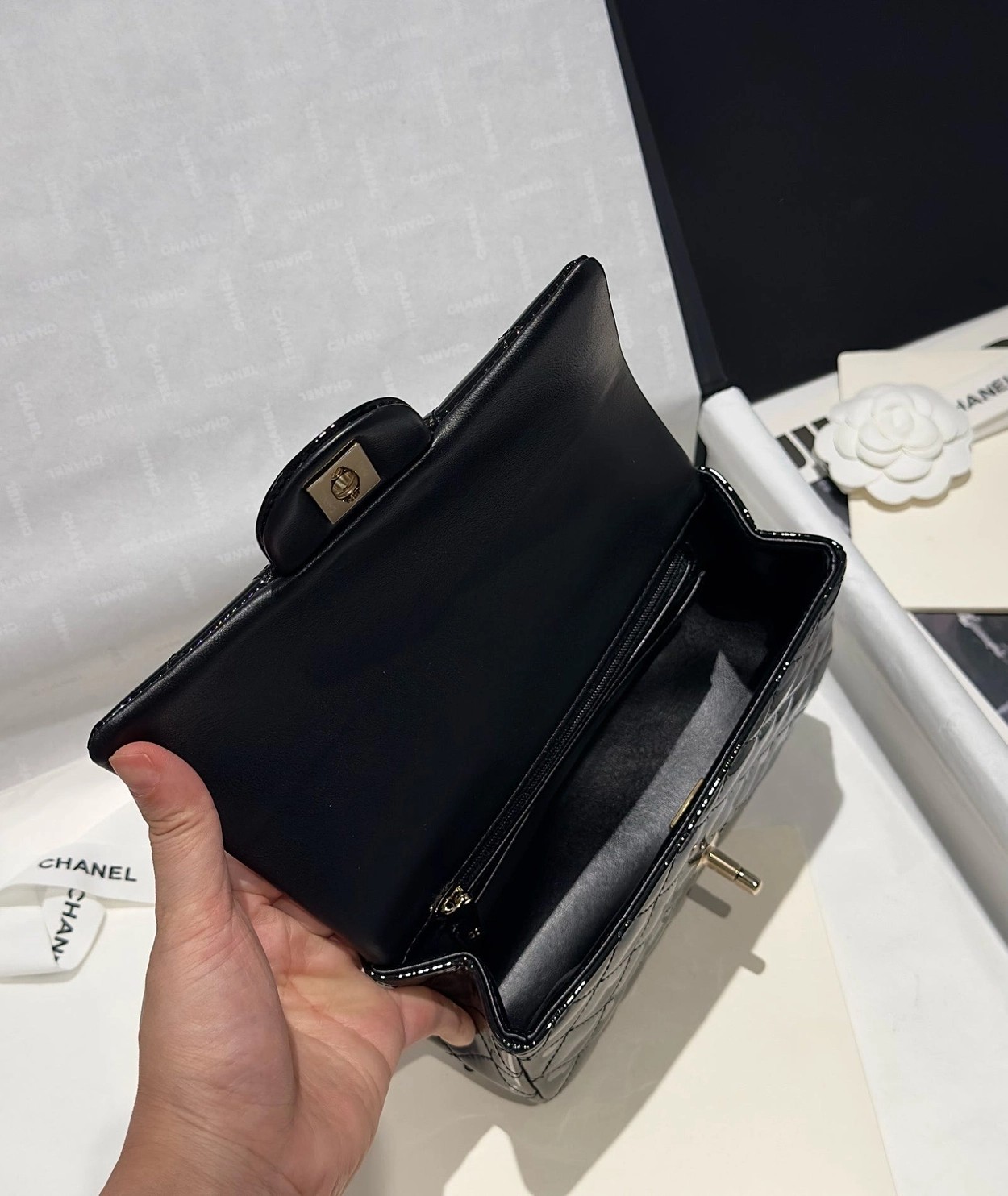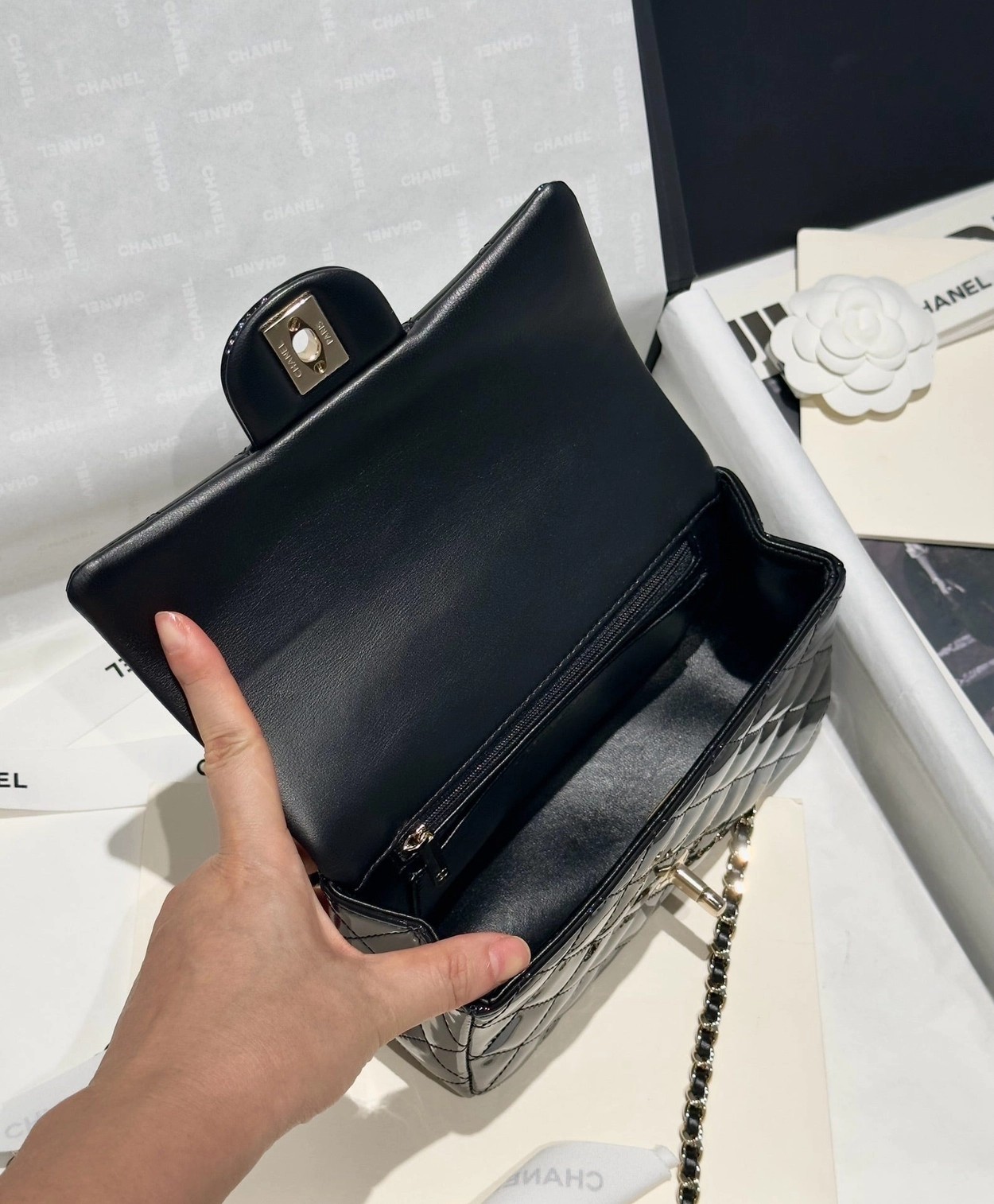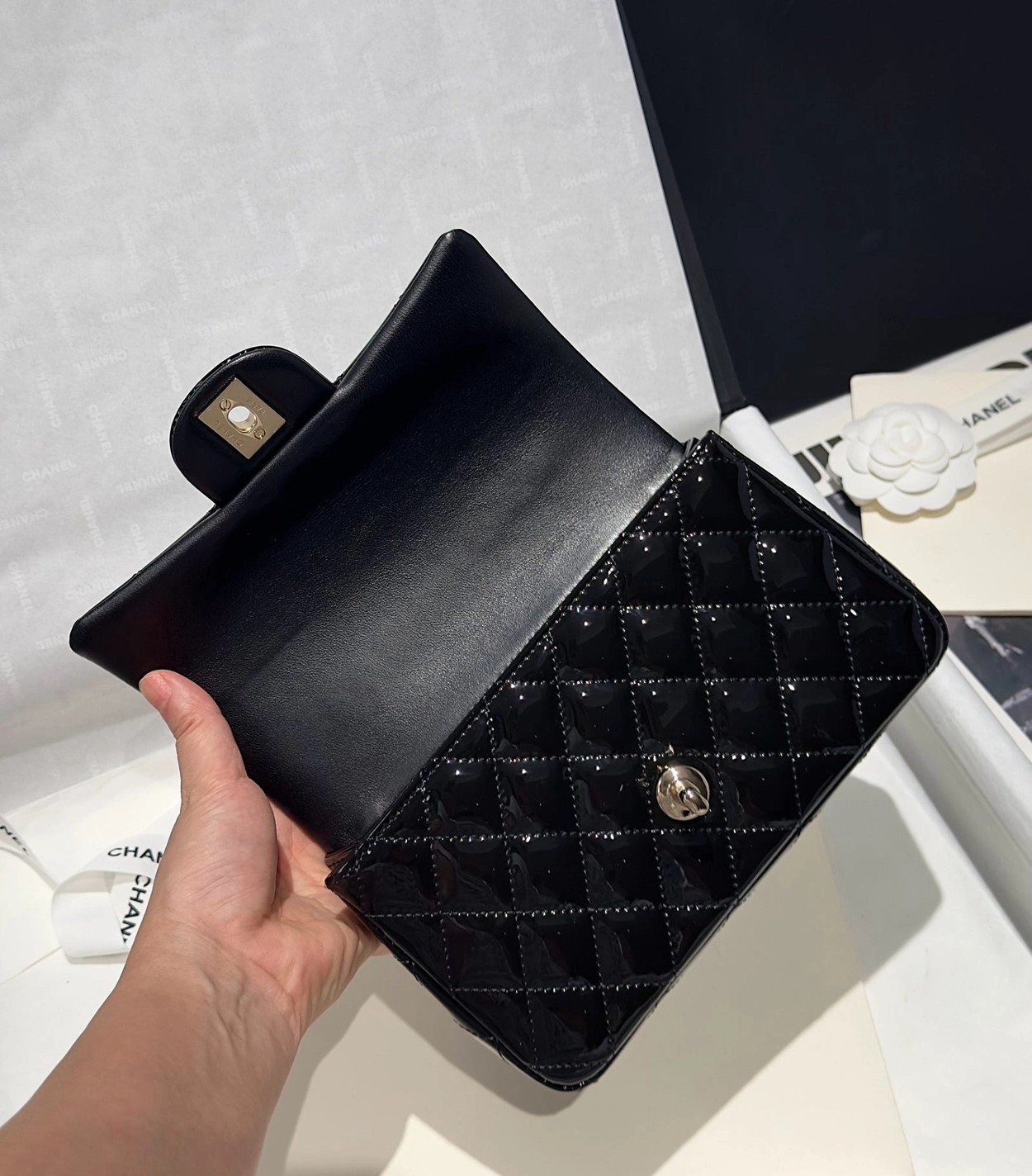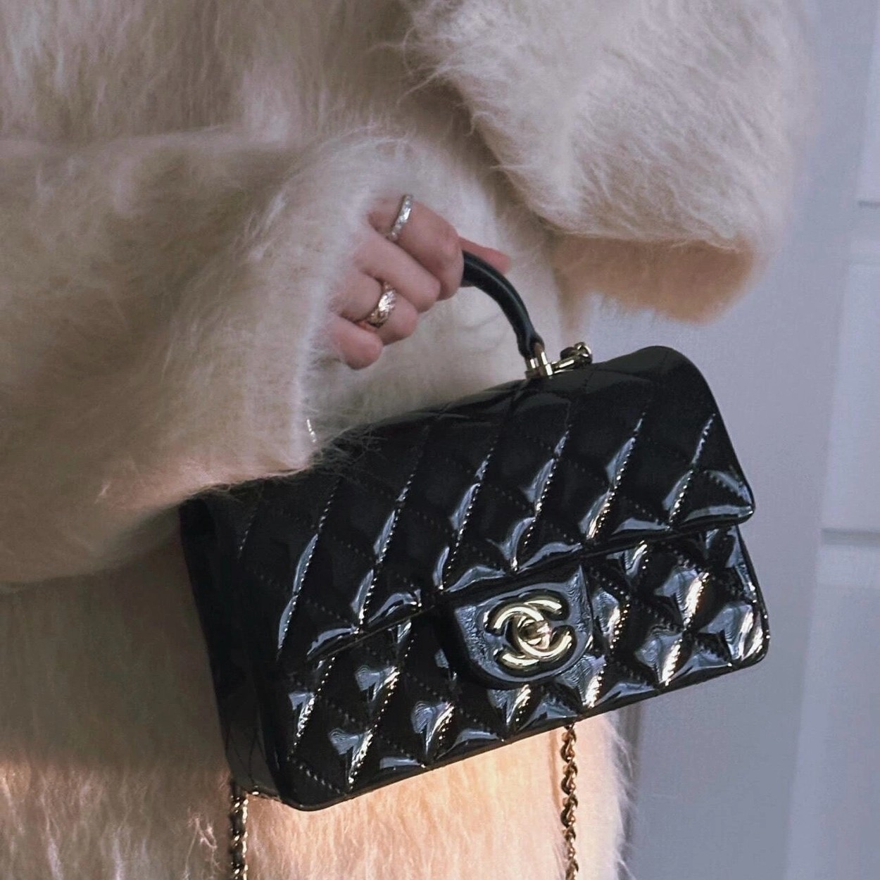 Chanel 24K手提漆皮CF大Mini handle