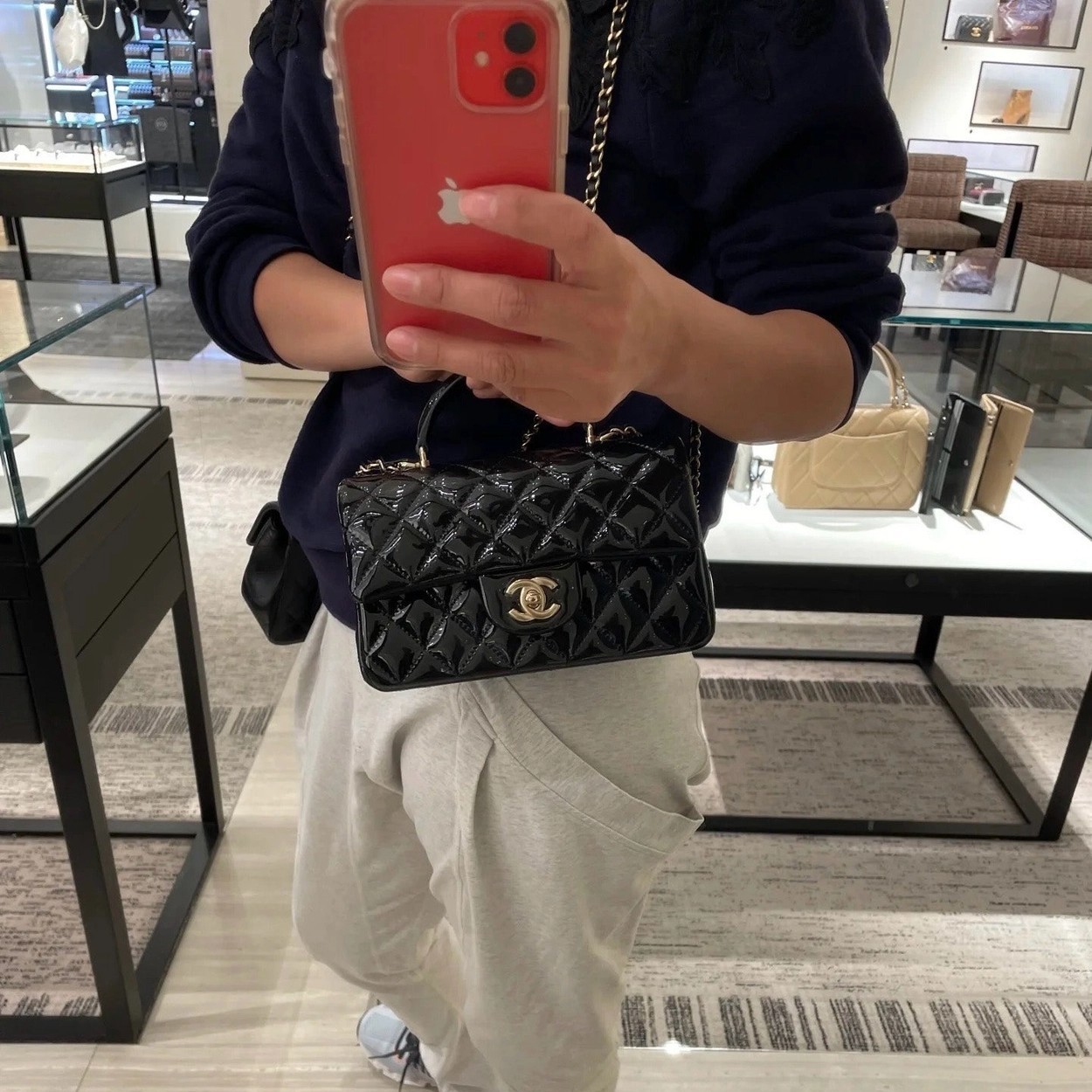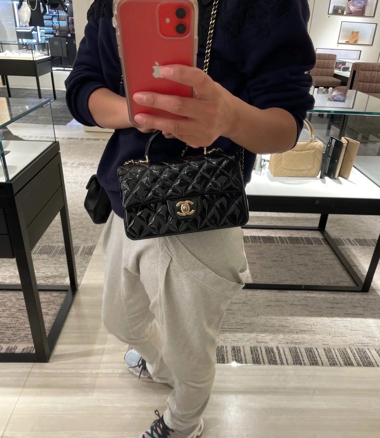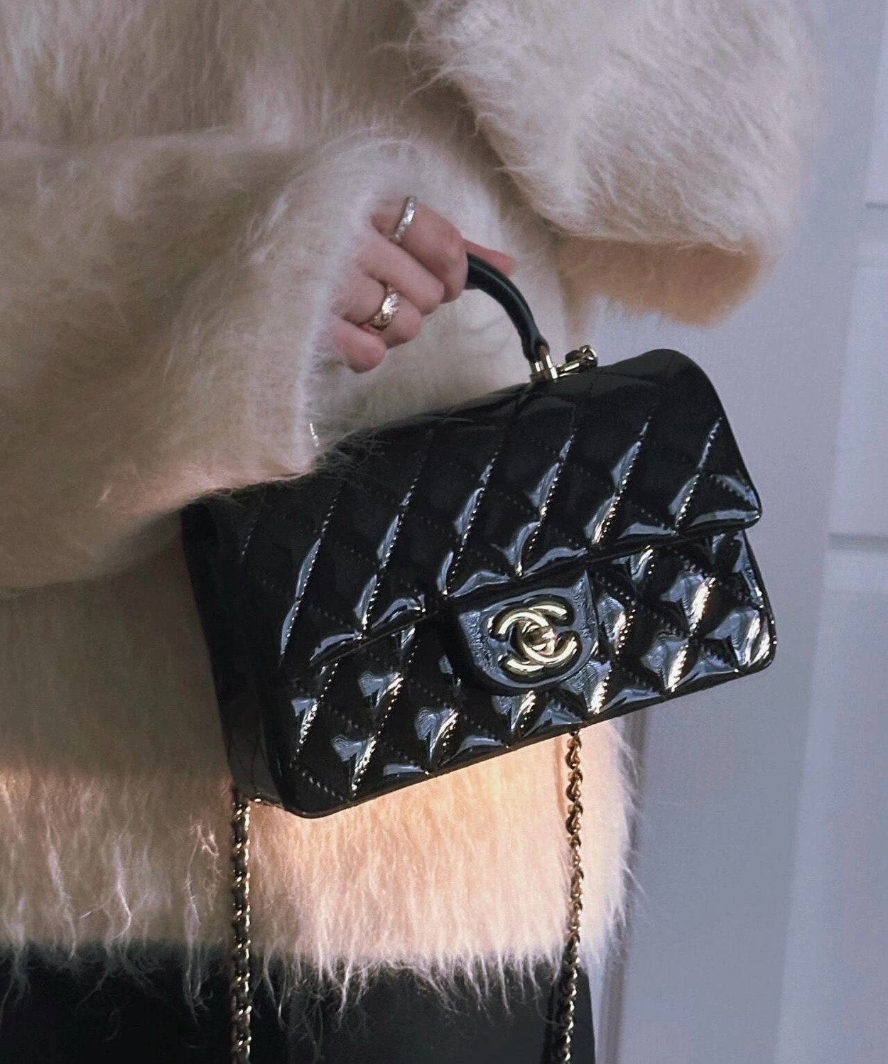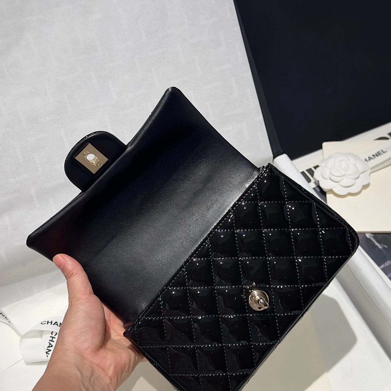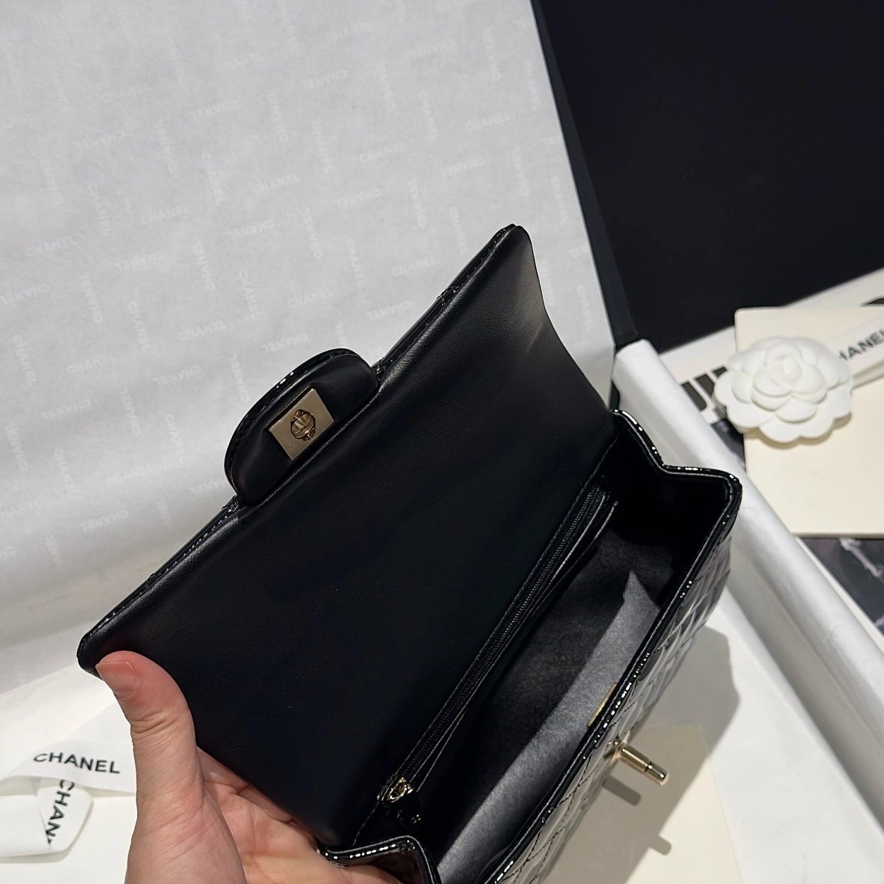 Chanel 24K手提漆皮CF大Mini handle