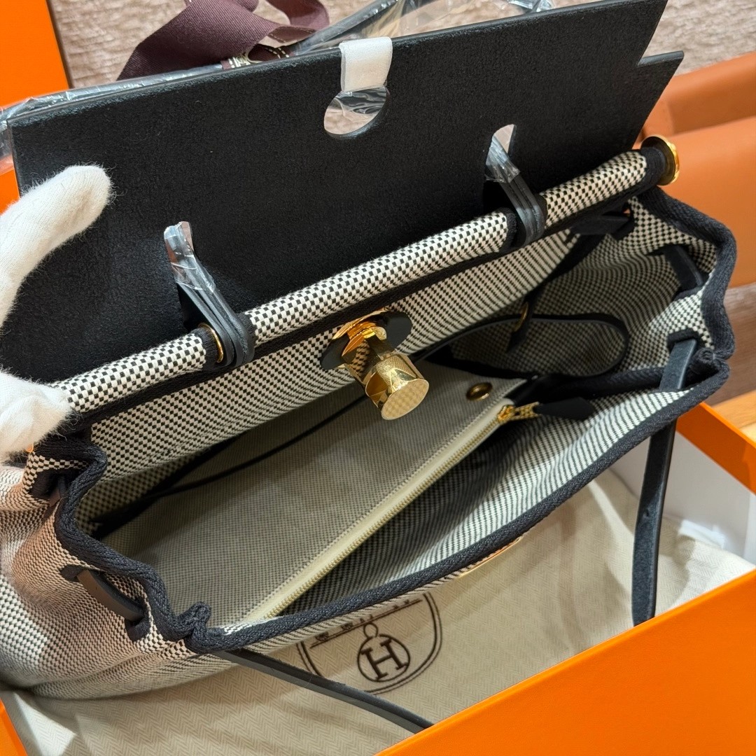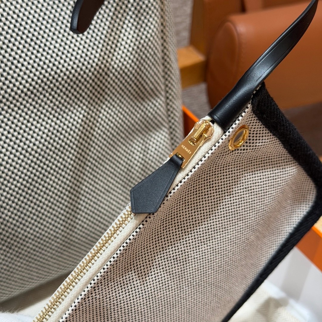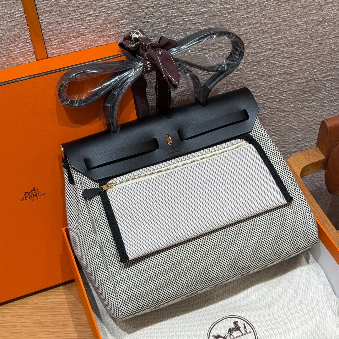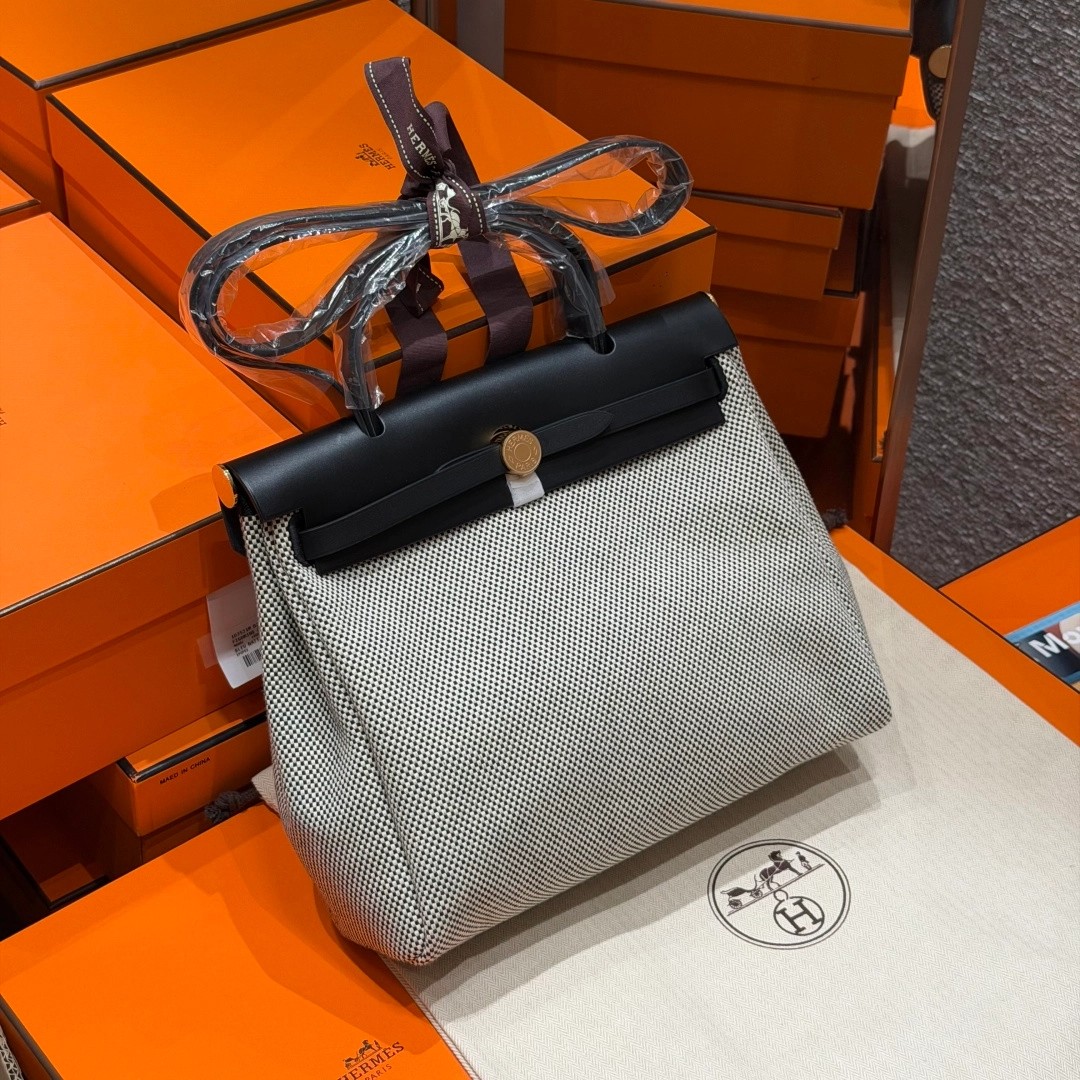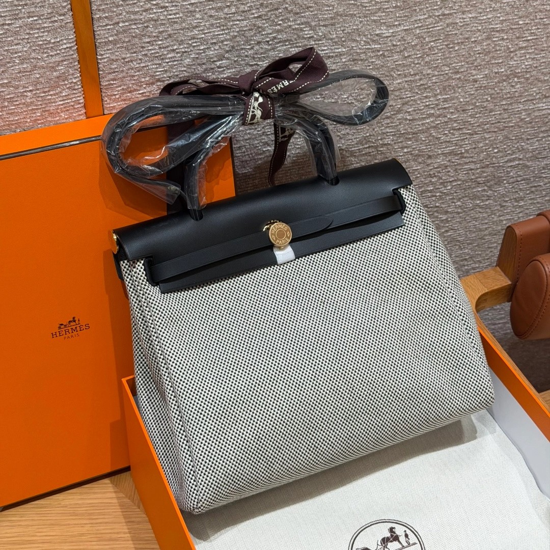 Style:Herbag 31 Colour:ecru/noir/noir Size:31*25*10cm Leather:canvas and cowhide Hardware:Gold 布包31cm,浅米色/黑色/黑色,帆布拼牛皮肩背包,金扣,高级全手工专属定制‼️ - 马鞍钉锁扣 - 可拆卸内部拉链袋 - 外侧拉链后袋 - 可折叠提手 -肩带46cm- 可手提或肩背 客订实拍🐎🐎customer order🐎🐎