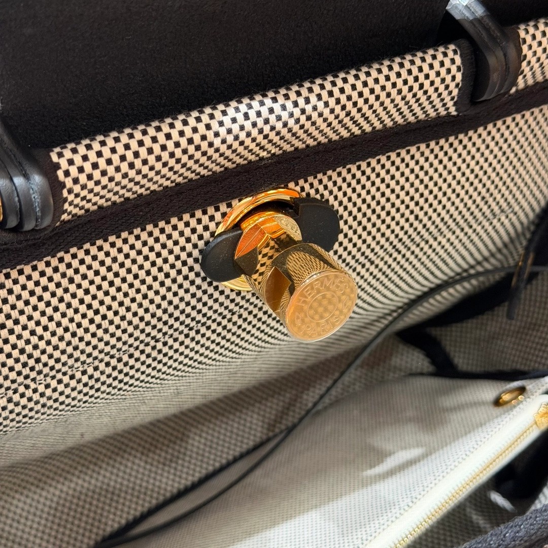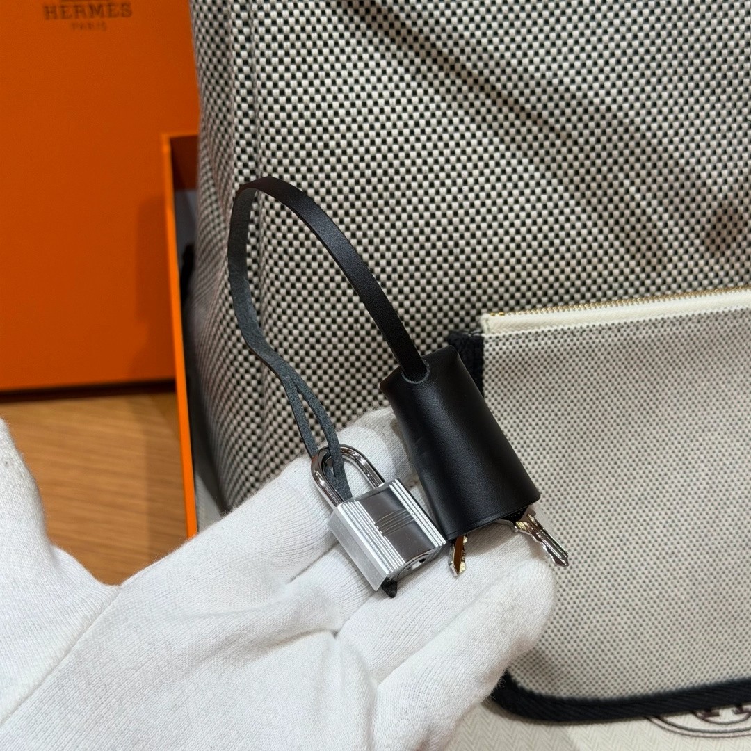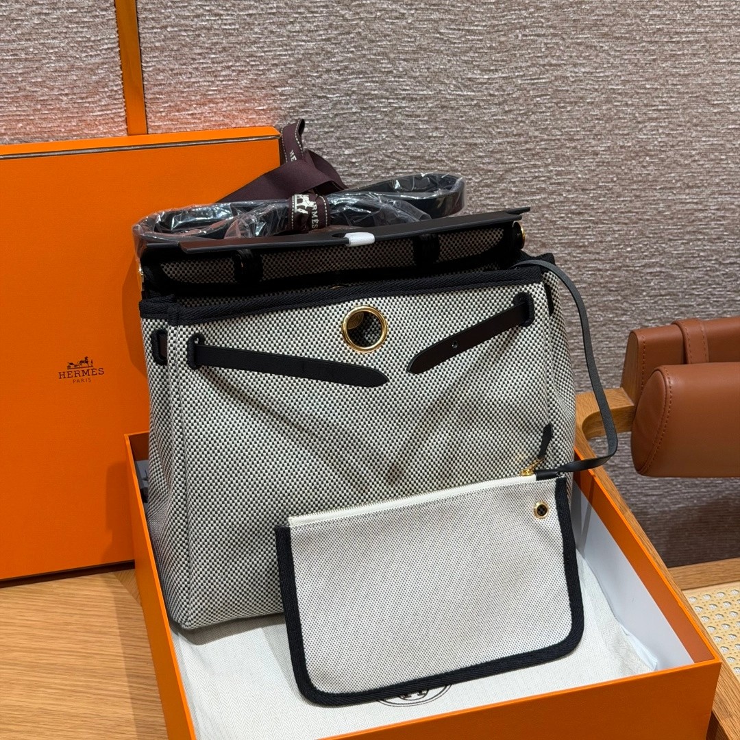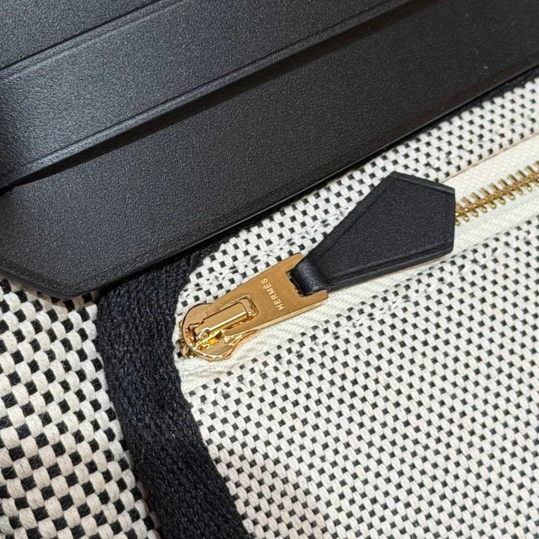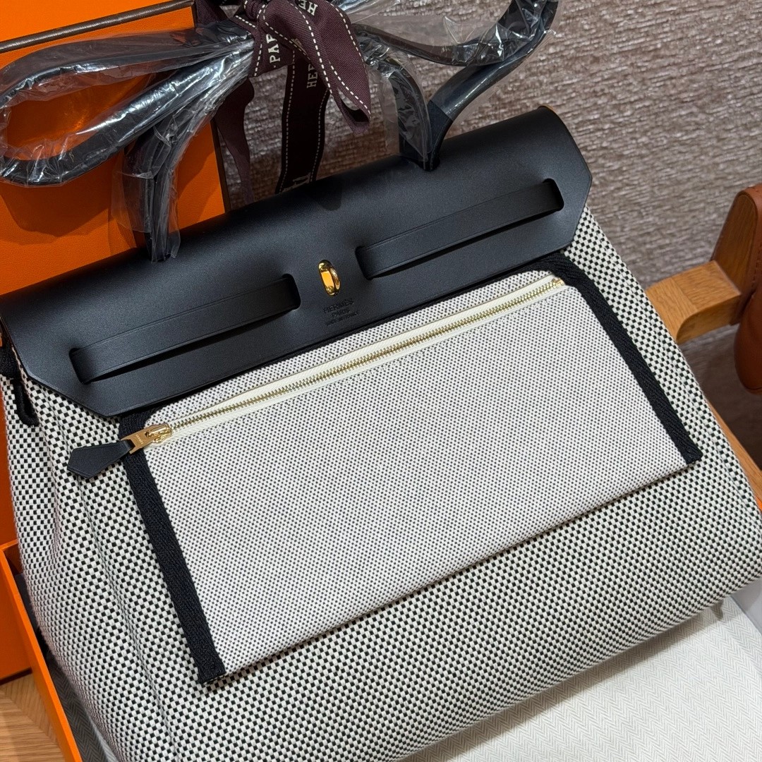 Style:Herbag 31 Colour:ecru/noir/noir Size:31*25*10cm Leather:canvas and cowhide Hardware:Gold 布包31cm,浅米色/黑色/黑色,帆布拼牛皮肩背包,金扣,高级全手工专属定制‼️ - 马鞍钉锁扣 - 可拆卸内部拉链袋 - 外侧拉链后袋 - 可折叠提手 -肩带46cm- 可手提或肩背 客订实拍🐎🐎customer order🐎🐎