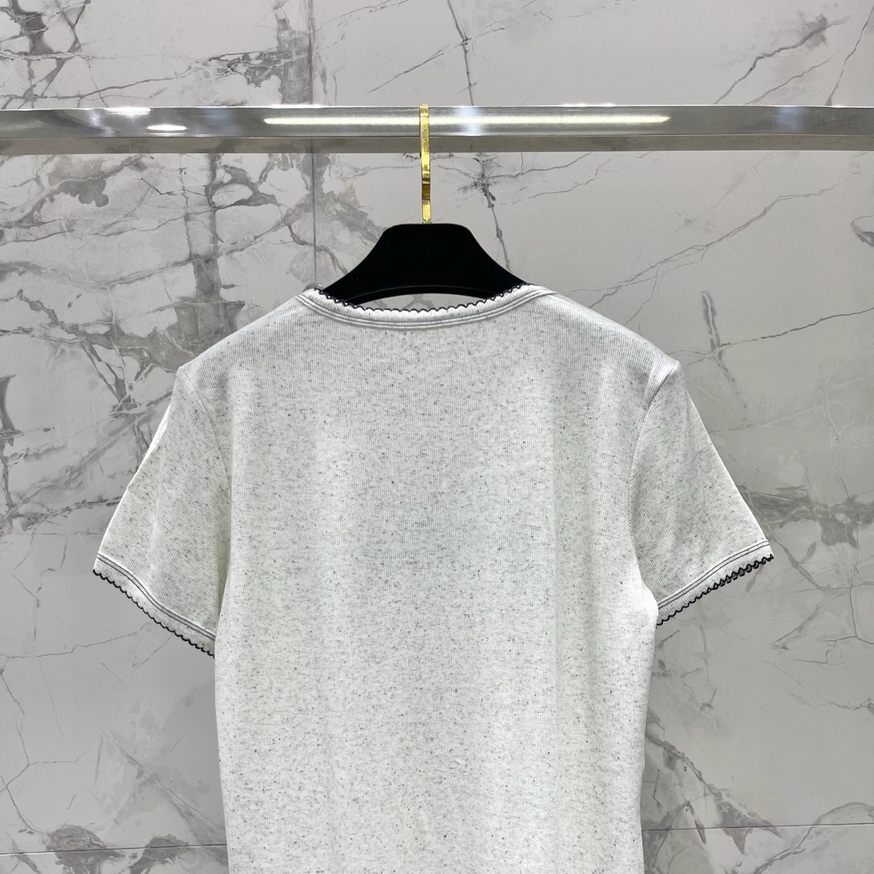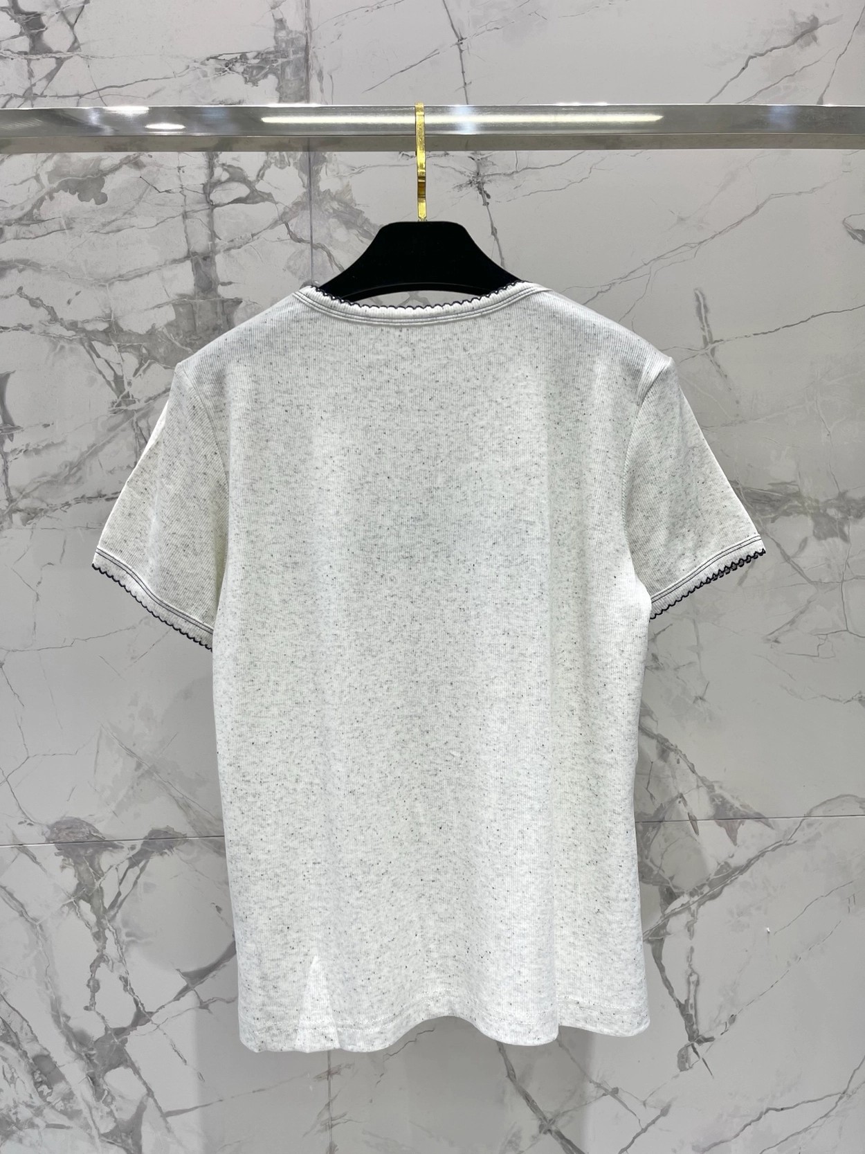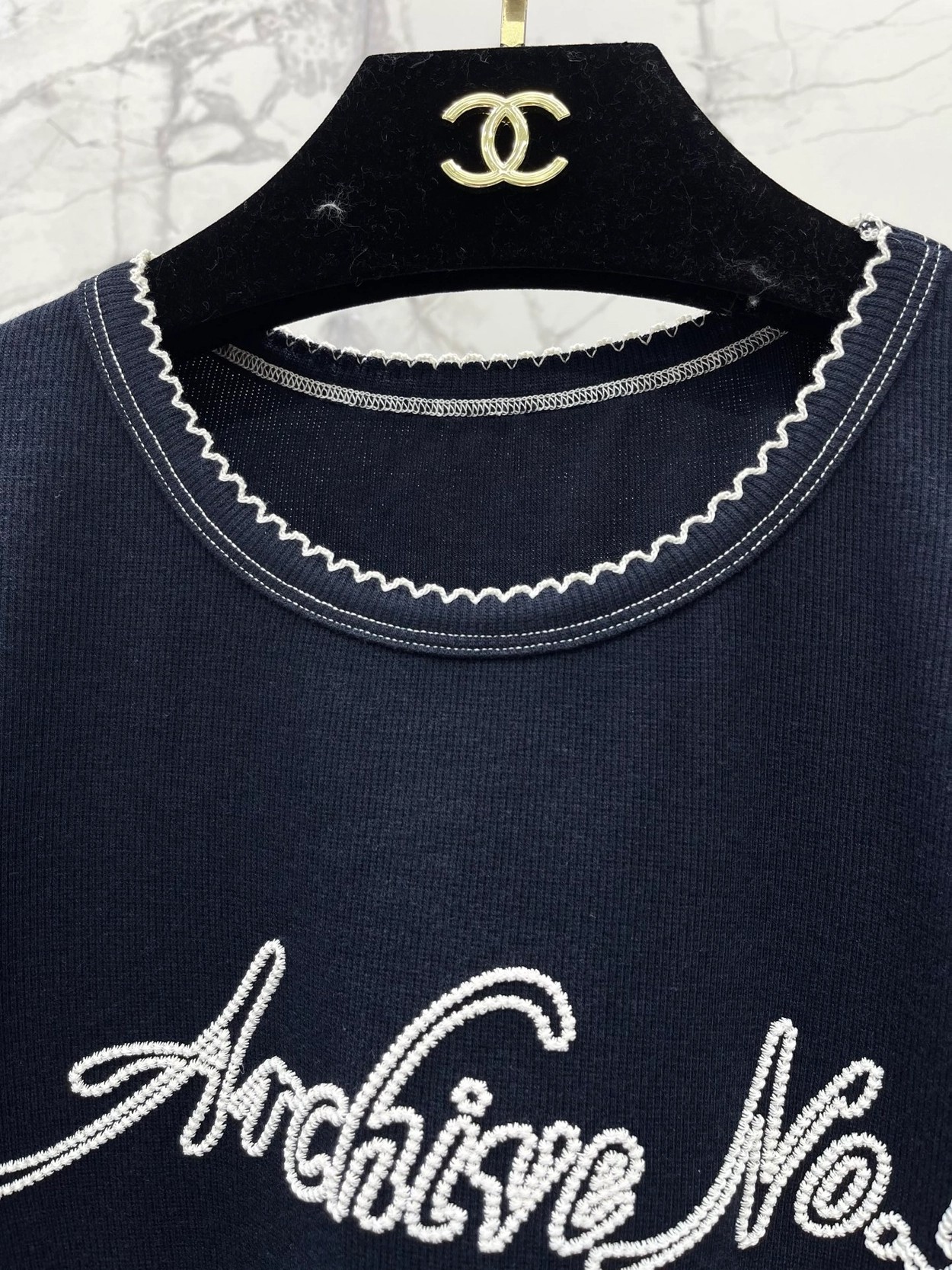 𝗖𝗛𝗔𝗡𝗘* 小香早春新款撞色刺绣字母短袖 面料柔软又有质感,经典版型透着慵懒,撞色刺绣字母+精致缝线把法式贵气感拉满,早春单穿、搭开衫都绝🥰🥰 撞色刺绣把复古和精致平衡得刚刚好,随便搭条牛仔裤都像画报~ 码数:SML 99200150