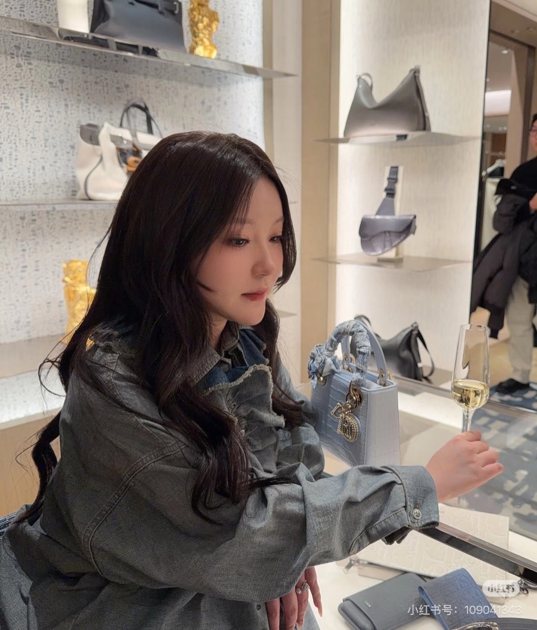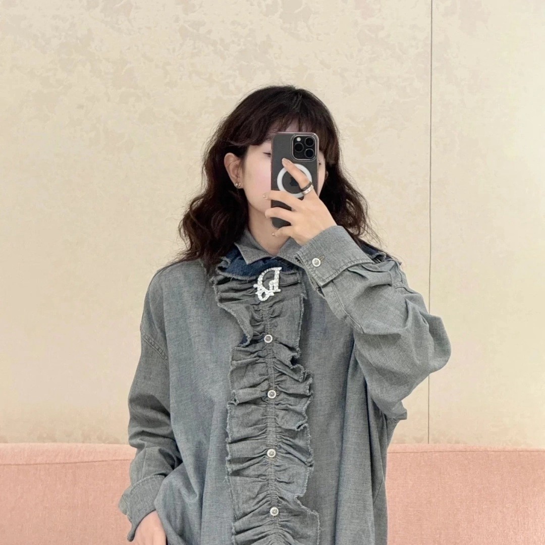 디올 러플 데님 블라우스 셔츠