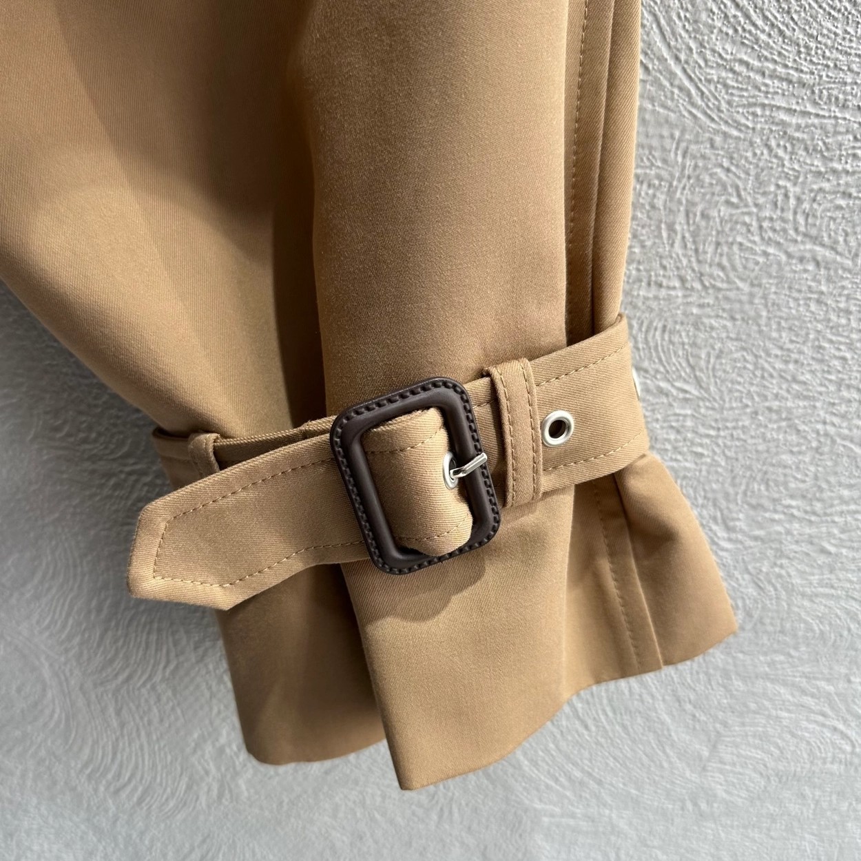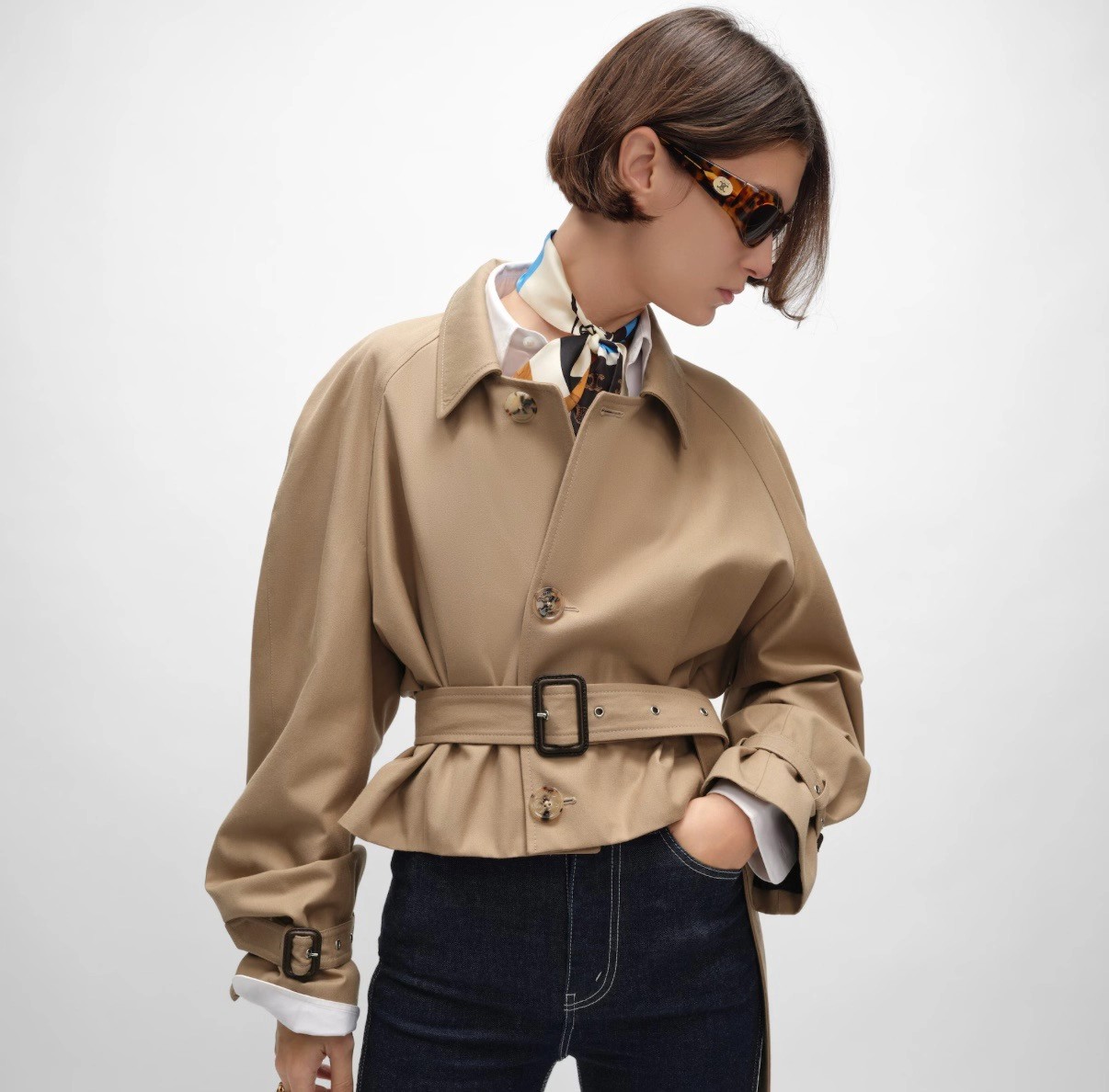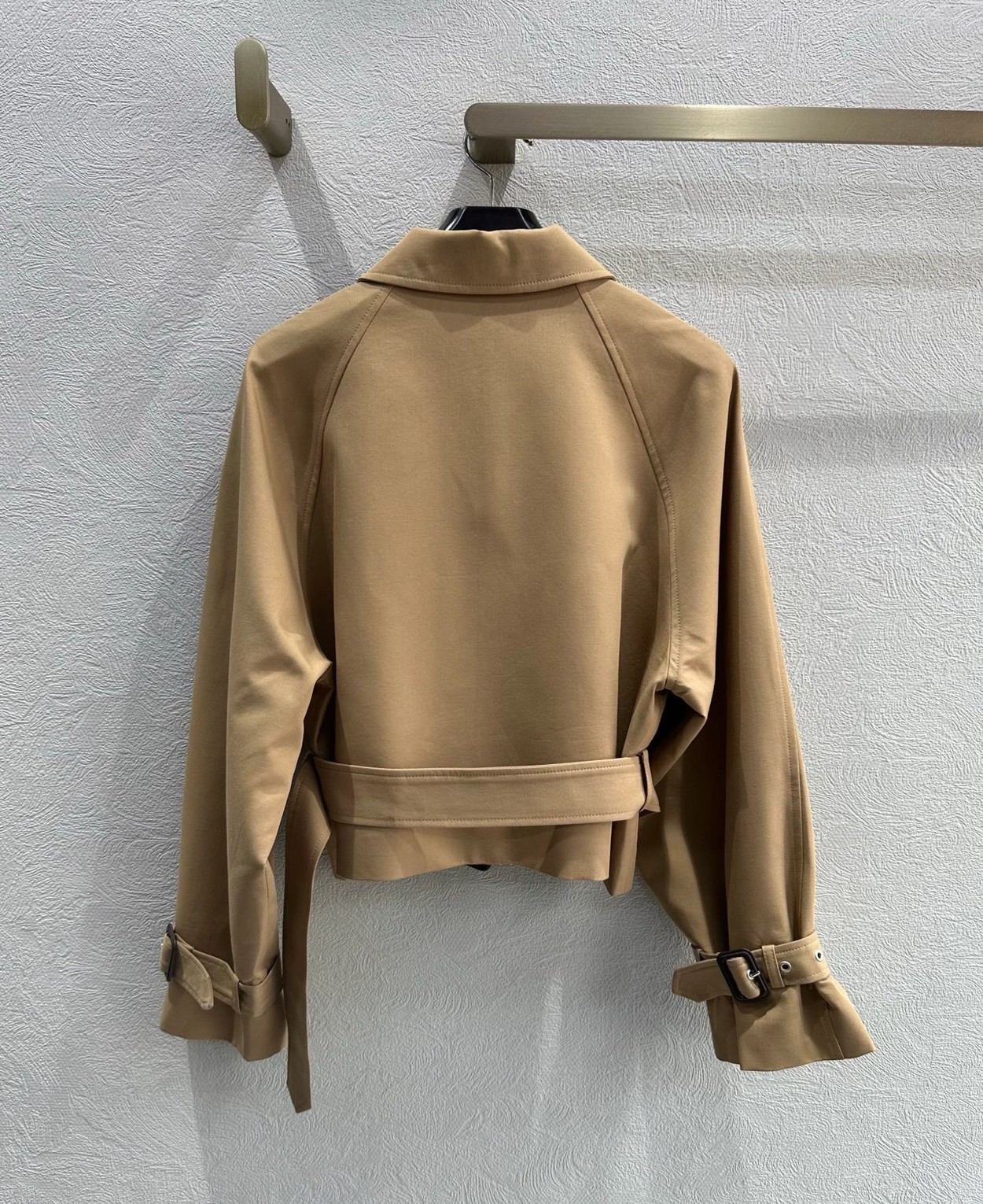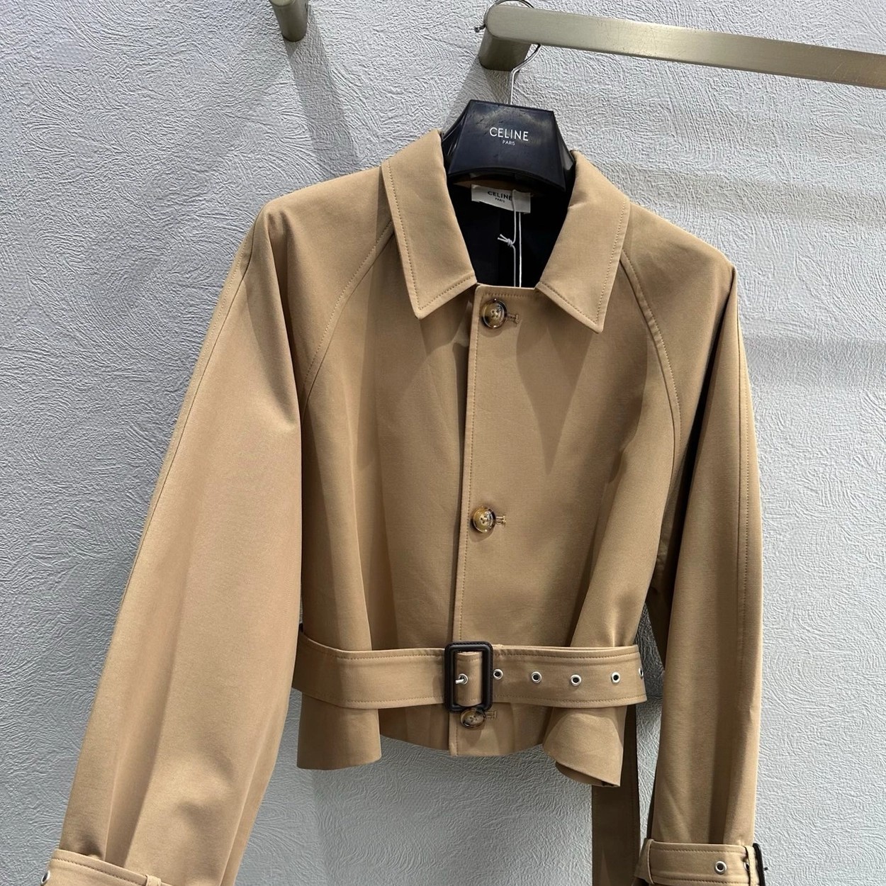 强烈推荐❤️CEL* 26早春新品。短款风衣外套,经典卡其色,轻薄面料超适合早秋穿搭!收腰+腰带设计,修饰身形又显利落,袖口绑带细节超有层次感💫。复古风融合现代剪裁,通勤、休闲都能轻松驾驭,搭配高腰裤或裙装,比例立马拉满!CELINE一贯的高级质感和设计感,时髦精必入!一色SML(S码:胸围112 衣长49 落肩宽袖长) 99340290