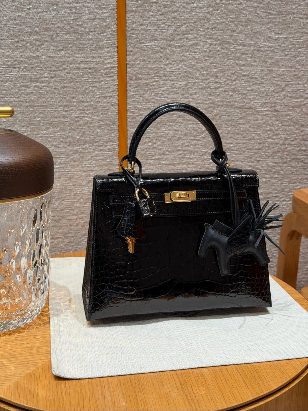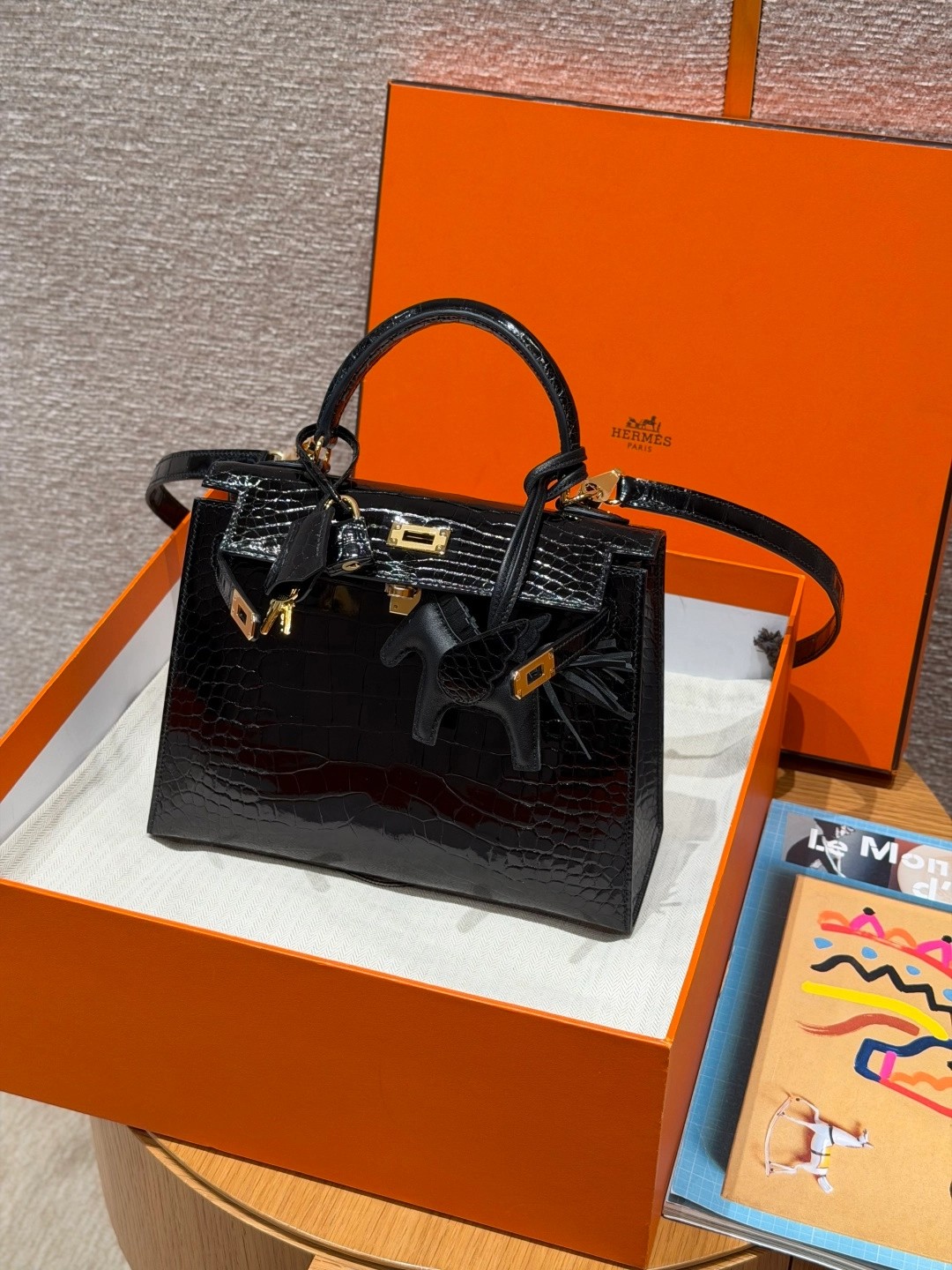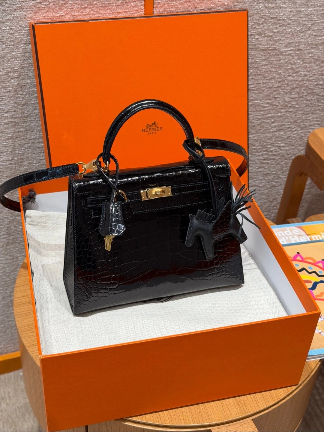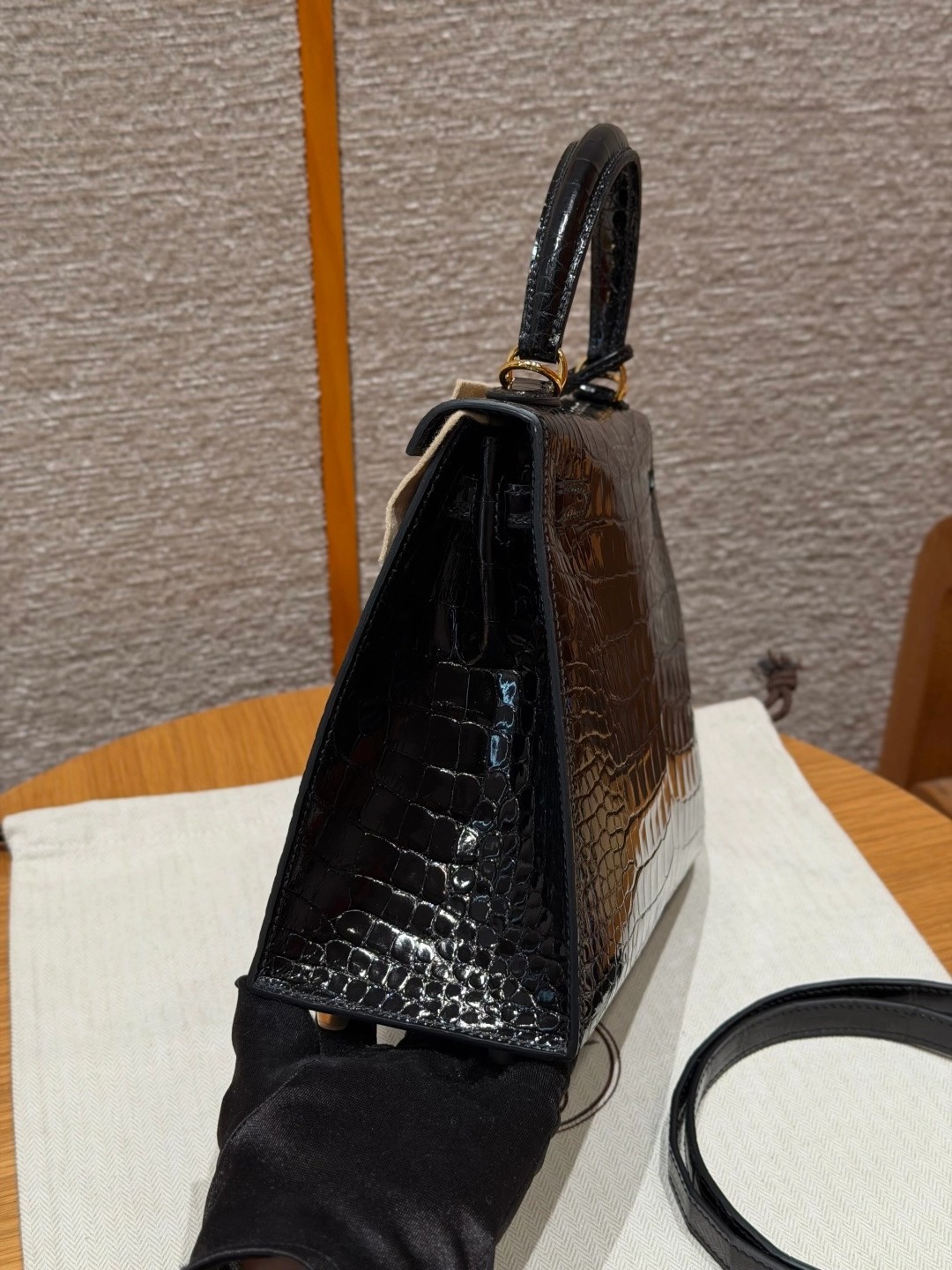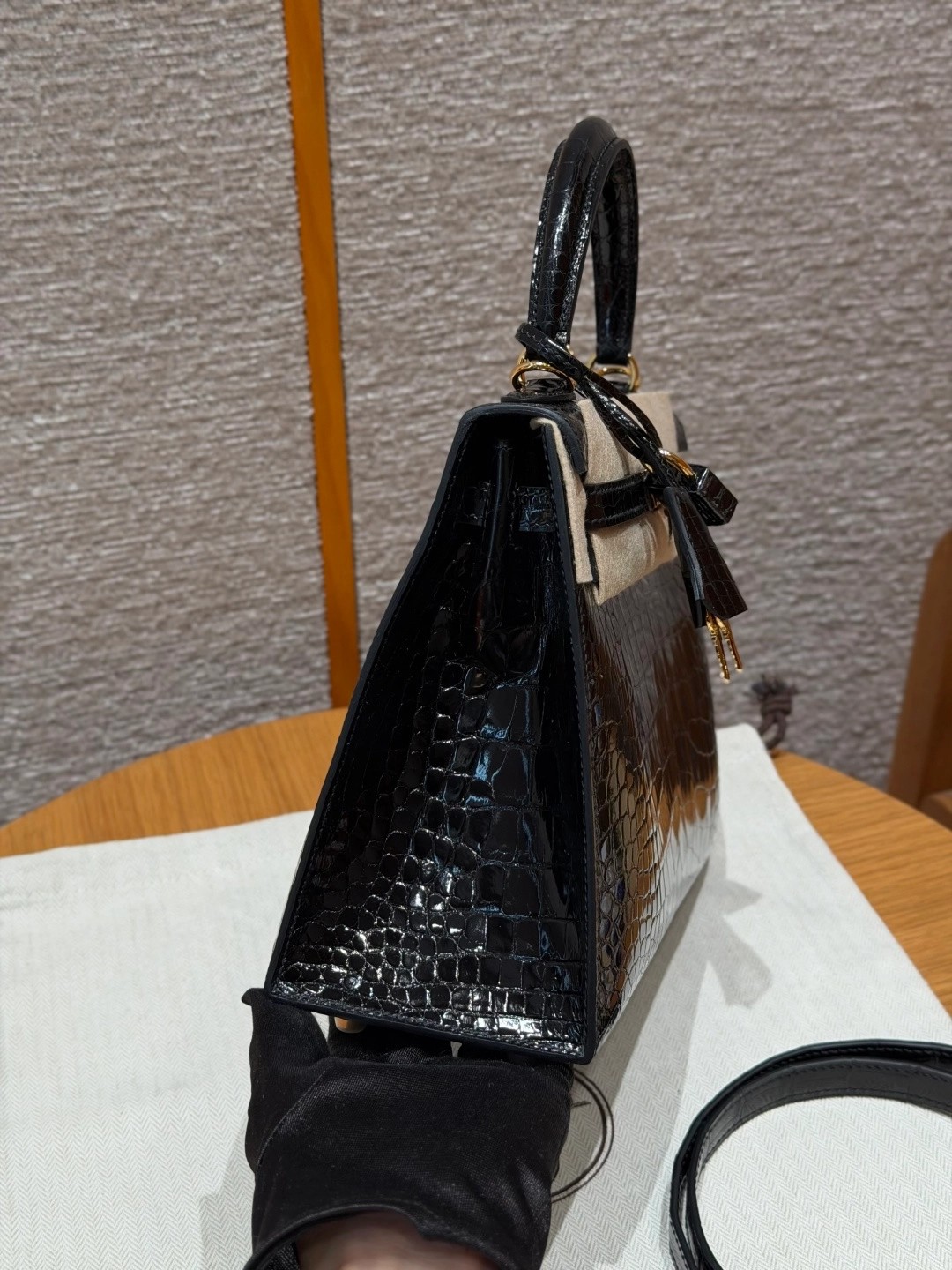 Style: Kelly Colour:89/Noir Size:25*20*13 Leather:Bright faced Alligator🐊 imported From France which originally from Mississippi. Hardware: Gold 铂金25cm,黑色,亮面美洲鳄🐊,法国进口原厂一级鳄鱼皮🐊,原产于密西西比州,金扣,高级全手工专属定制‼️ 纯手工手打钉,手刻五金,精钢电镀18k五金 客订实拍🐎🐎customer order🐎🐎