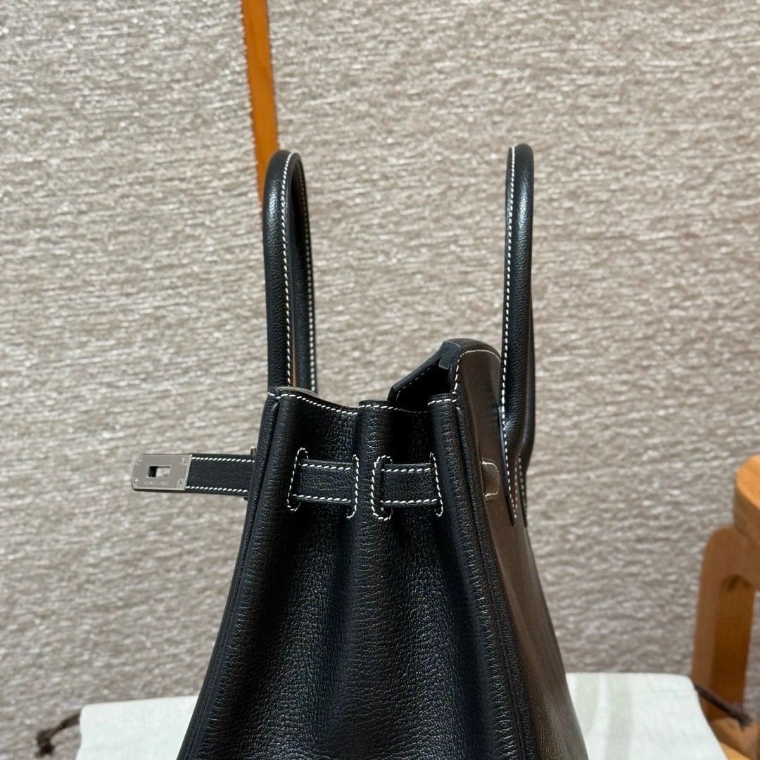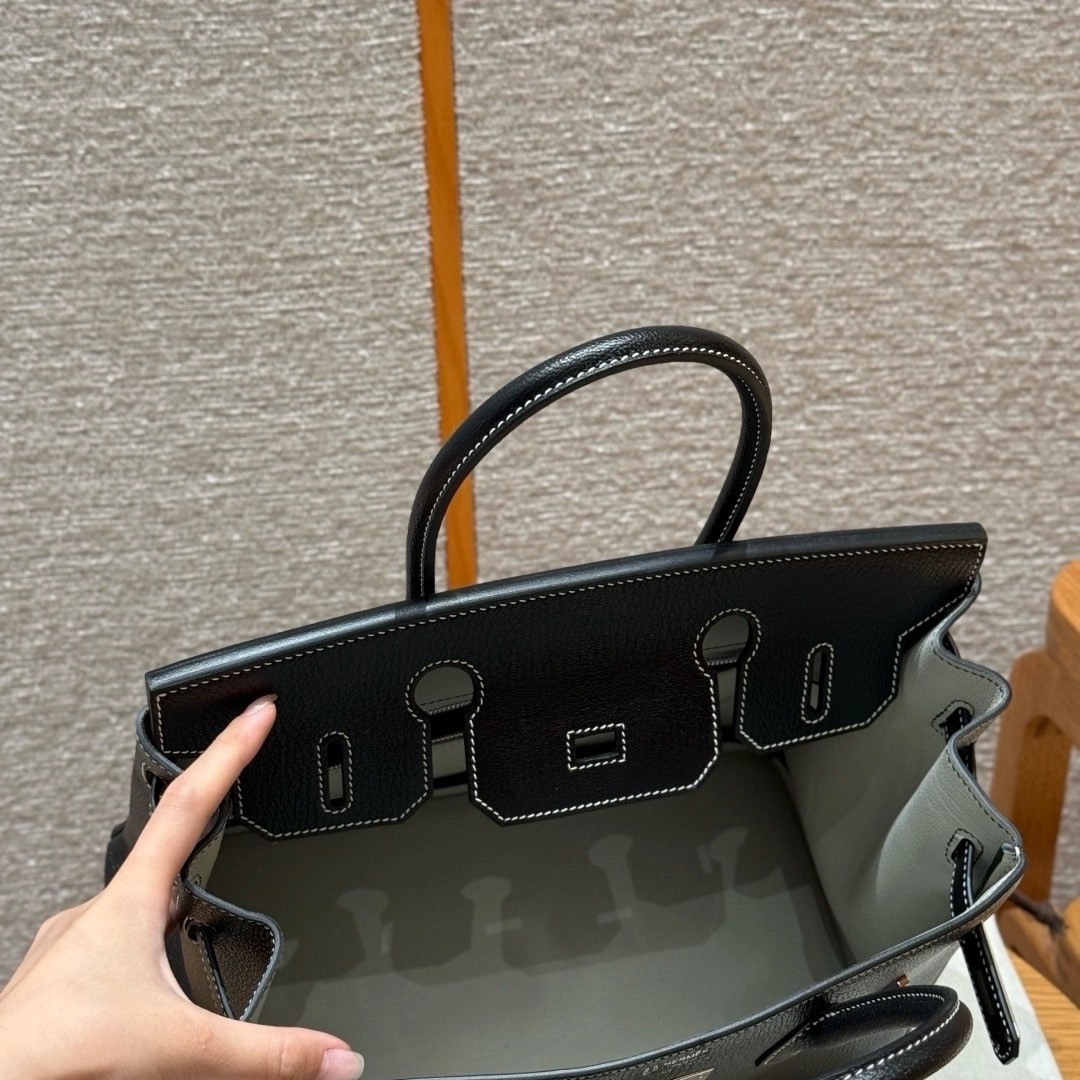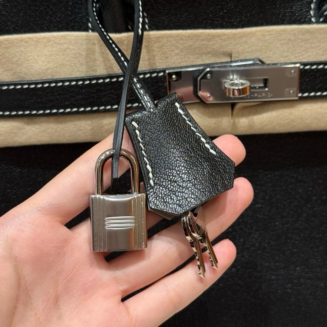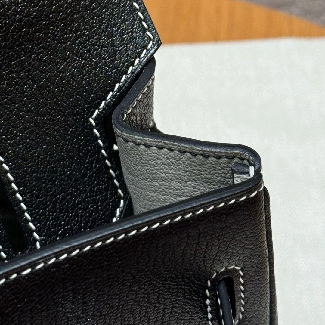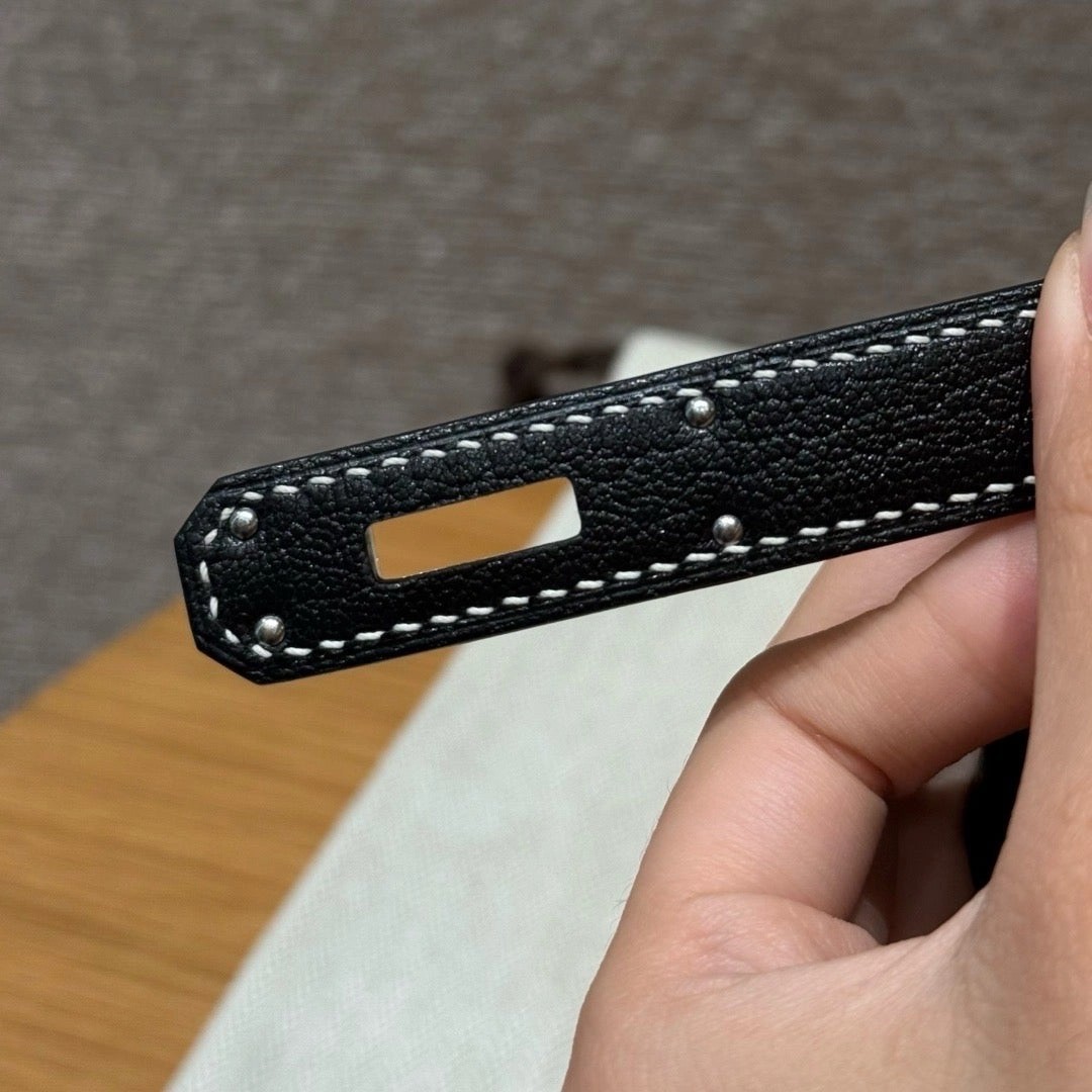 铂金30,黑色走白线内拼珍珠灰,法国进口山羊皮,银扣,高级全手工专属定制‼️