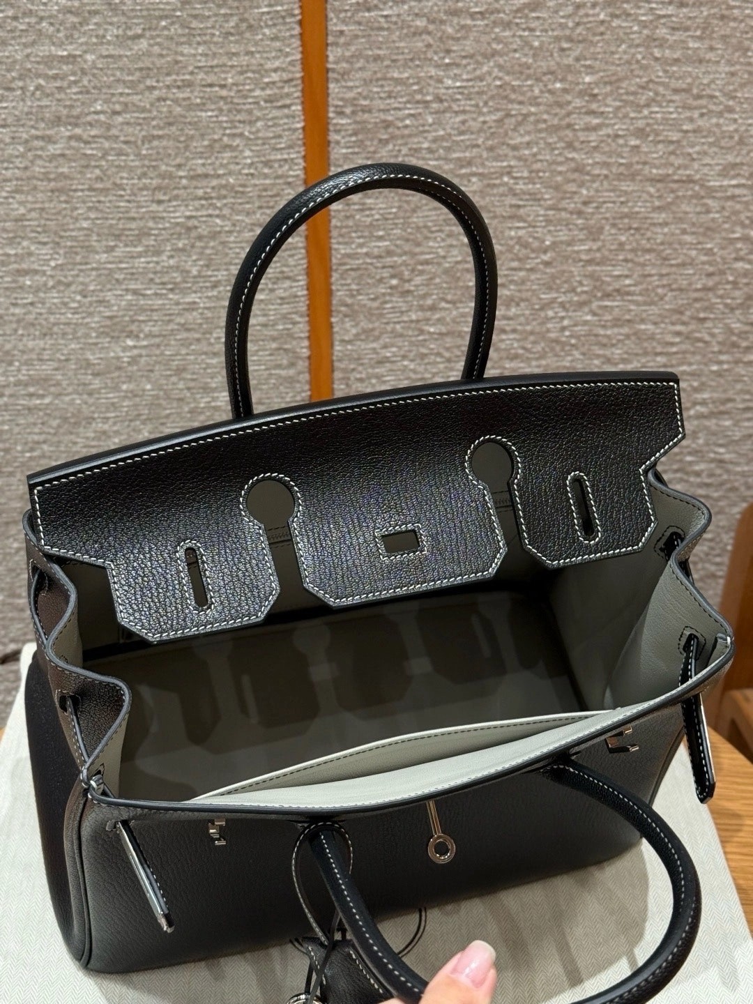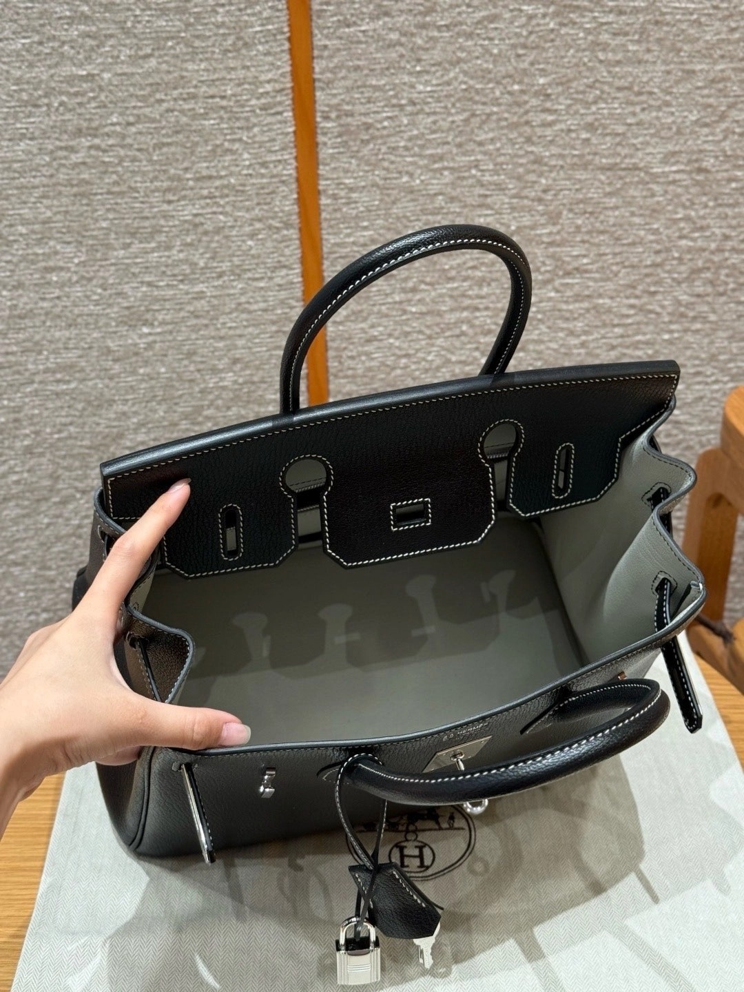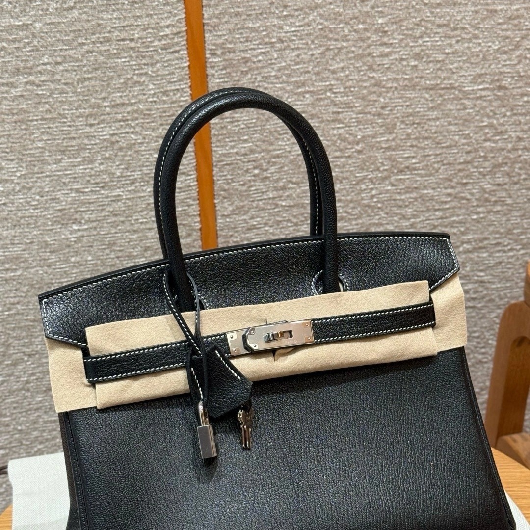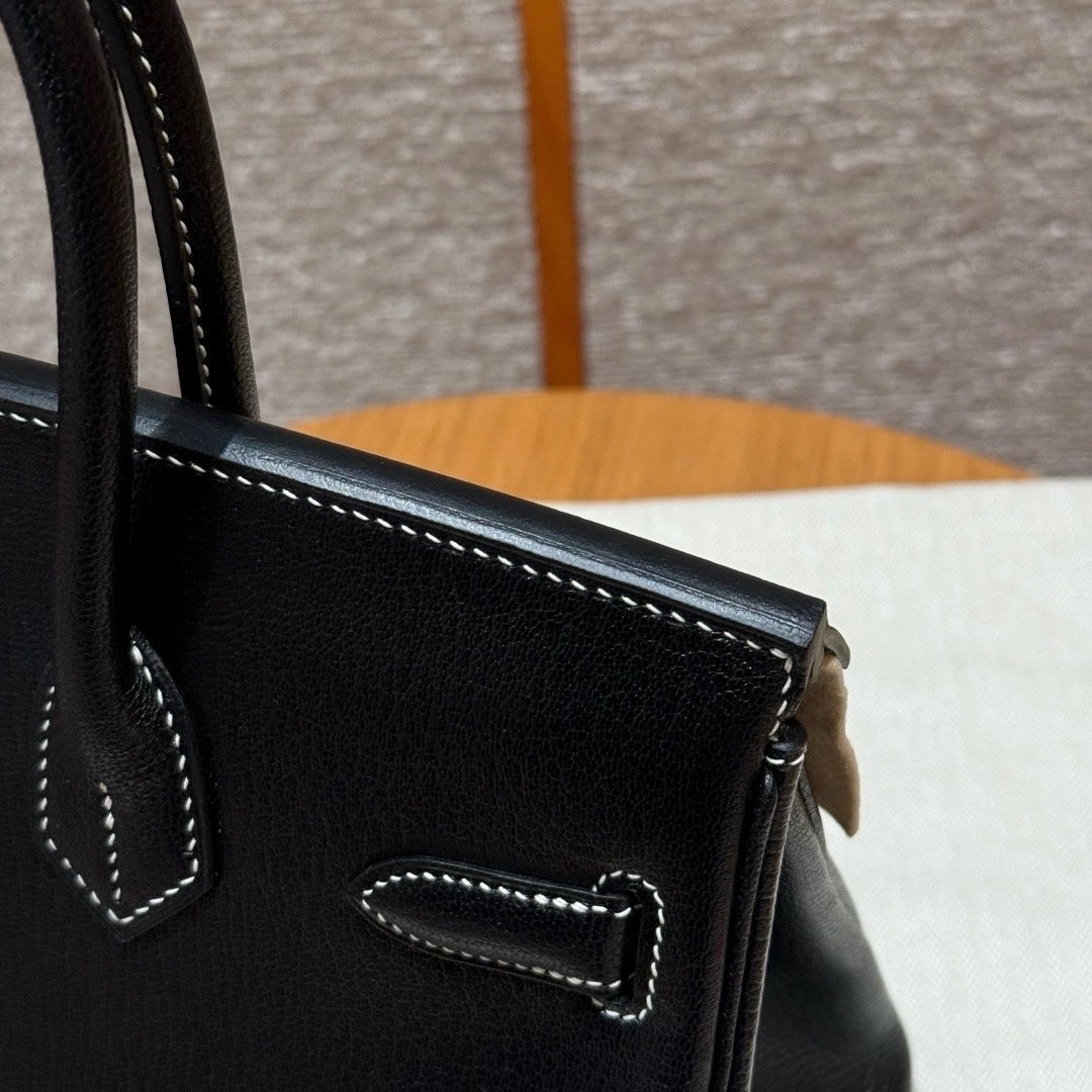 铂金30,黑色走白线内拼珍珠灰,法国进口山羊皮,银扣,高级全手工专属定制‼️