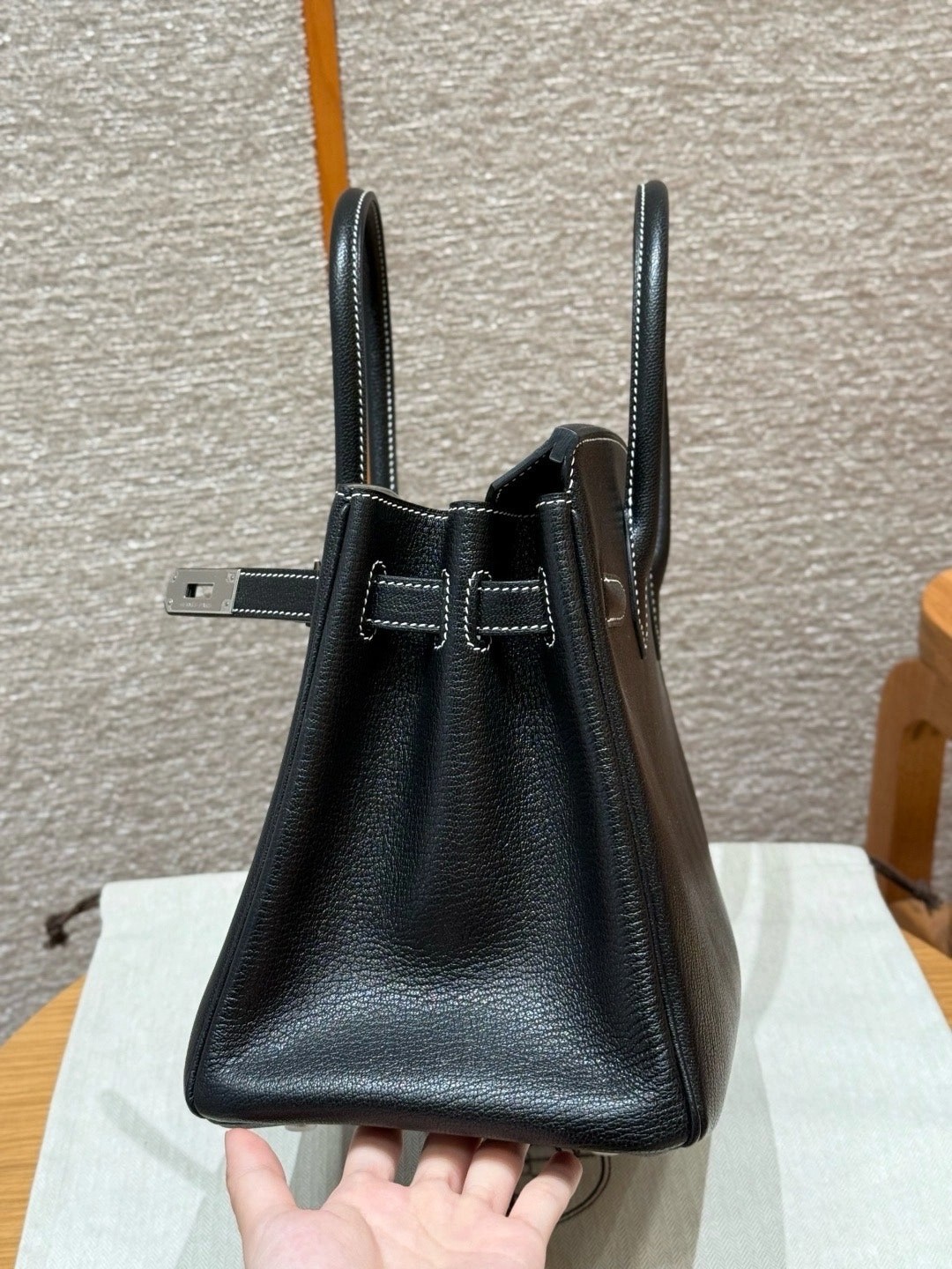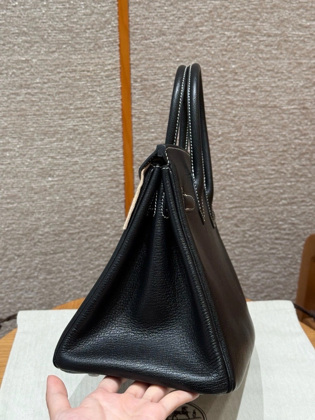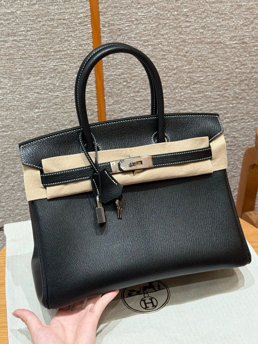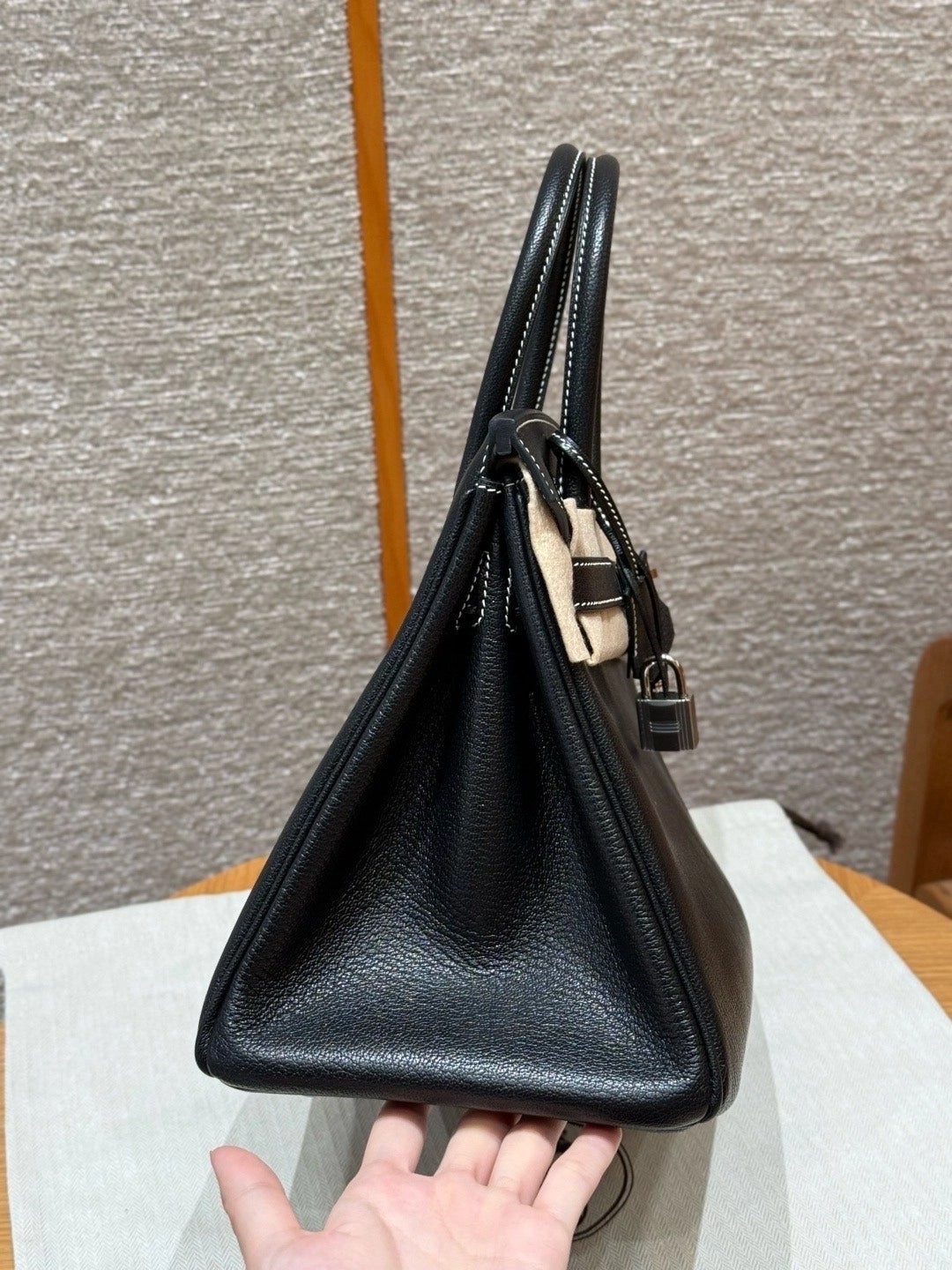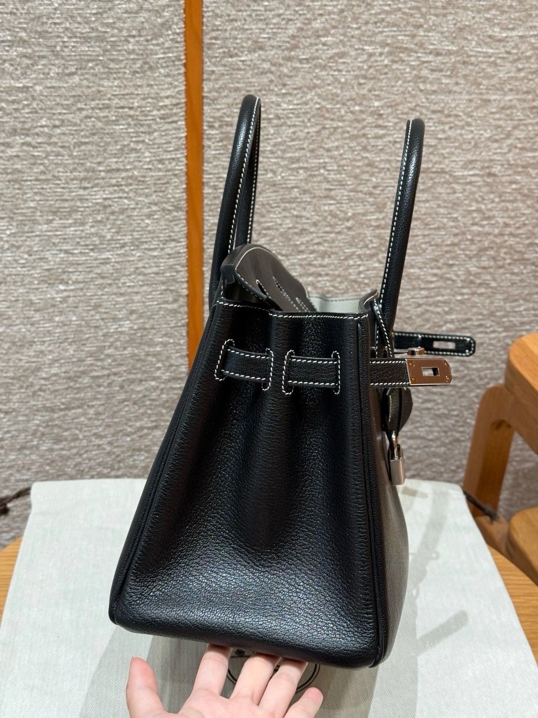 铂金30,黑色走白线内拼珍珠灰,法国进口山羊皮,银扣,高级全手工专属定制‼️
