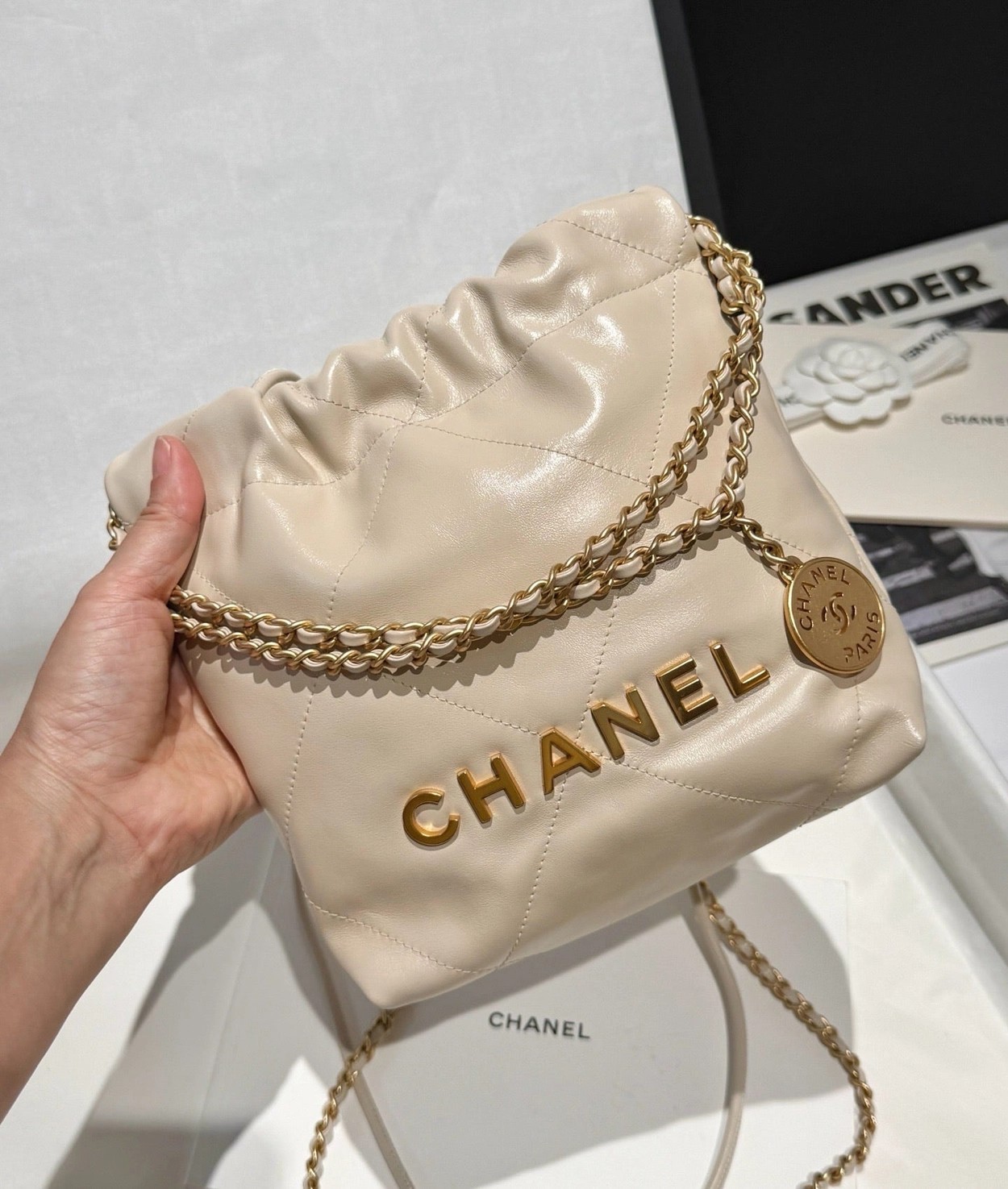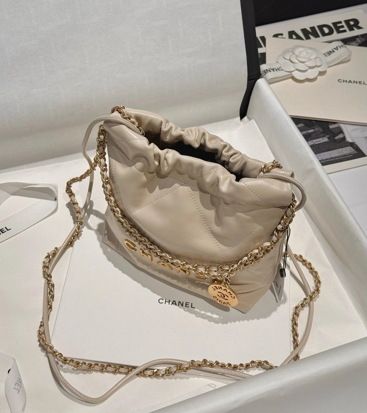 Chanel 22bag迷你mini垃圾袋“奶杏色”