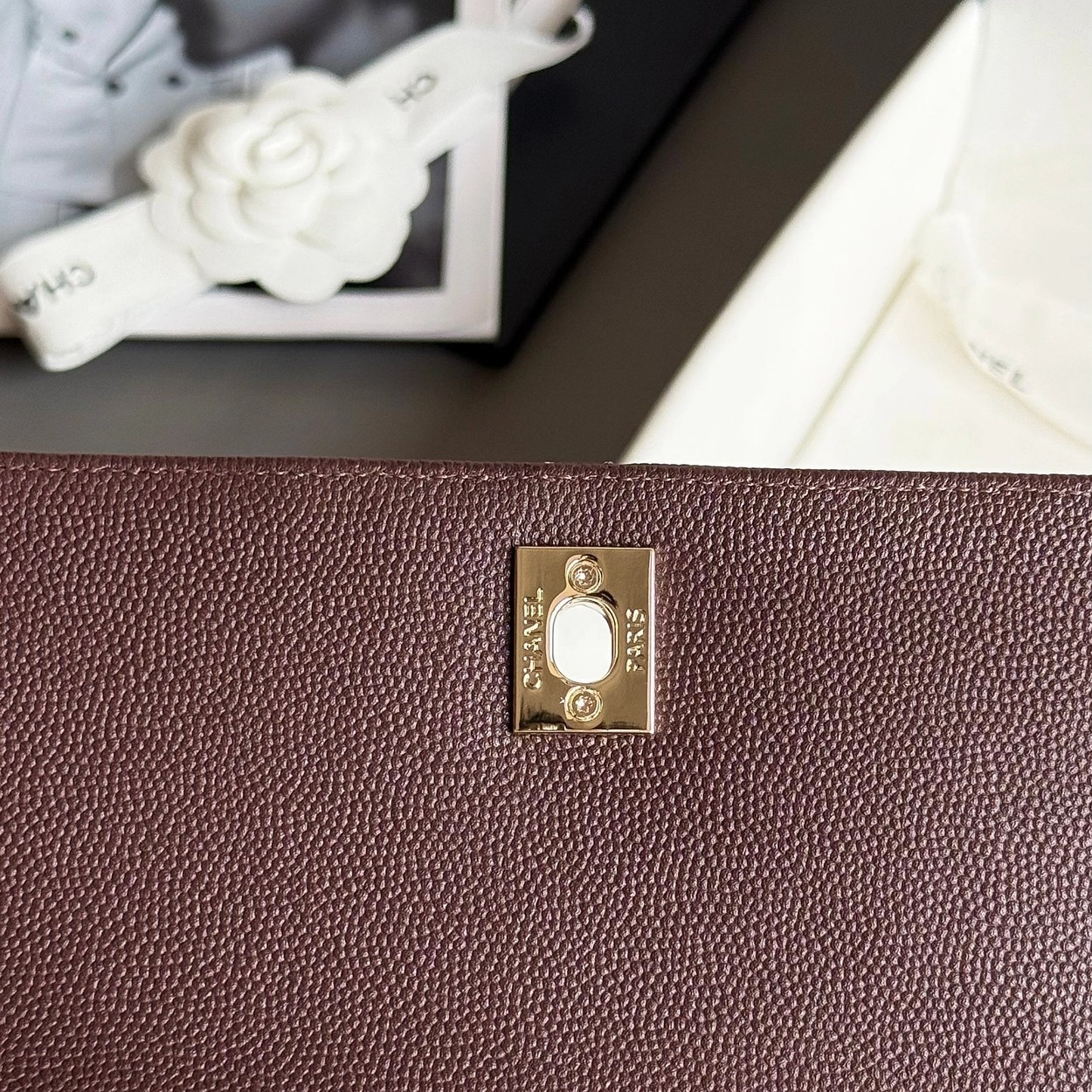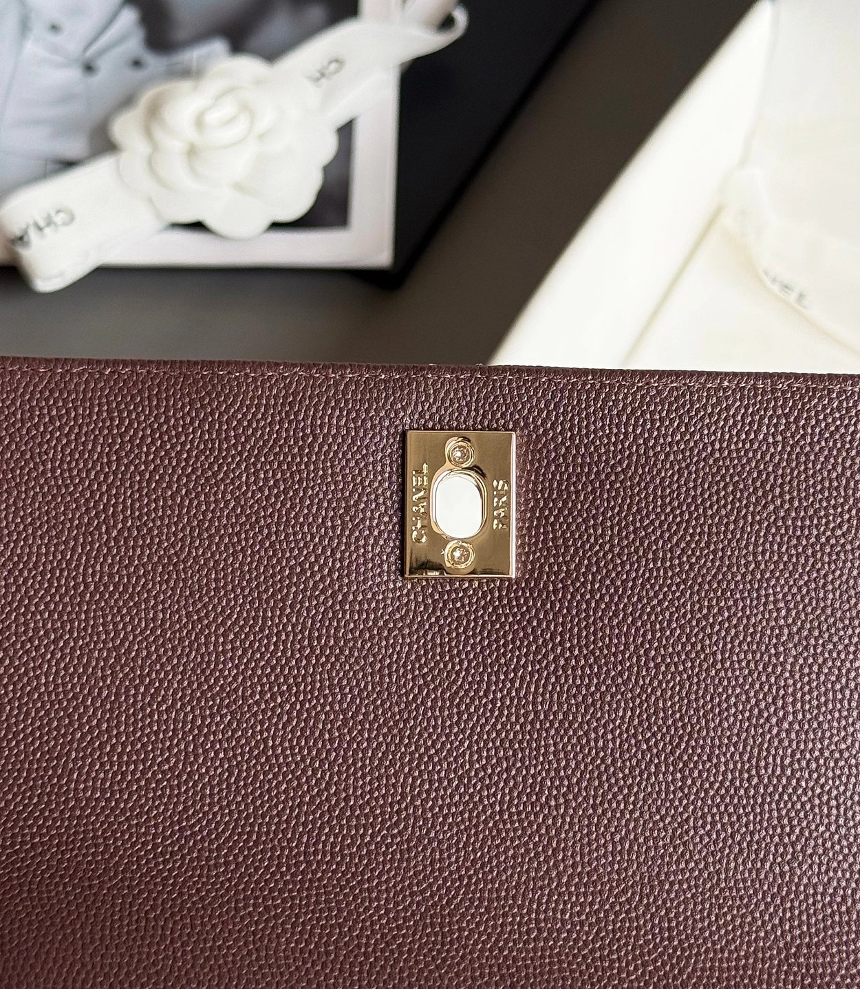 原厂Haas鱼子酱牛皮搭配24K厚钯水润香槟扣、巧克力色非常高级!内里隔层分明自带拉链袋!肩背、斜挎、手拎都非常Nice……