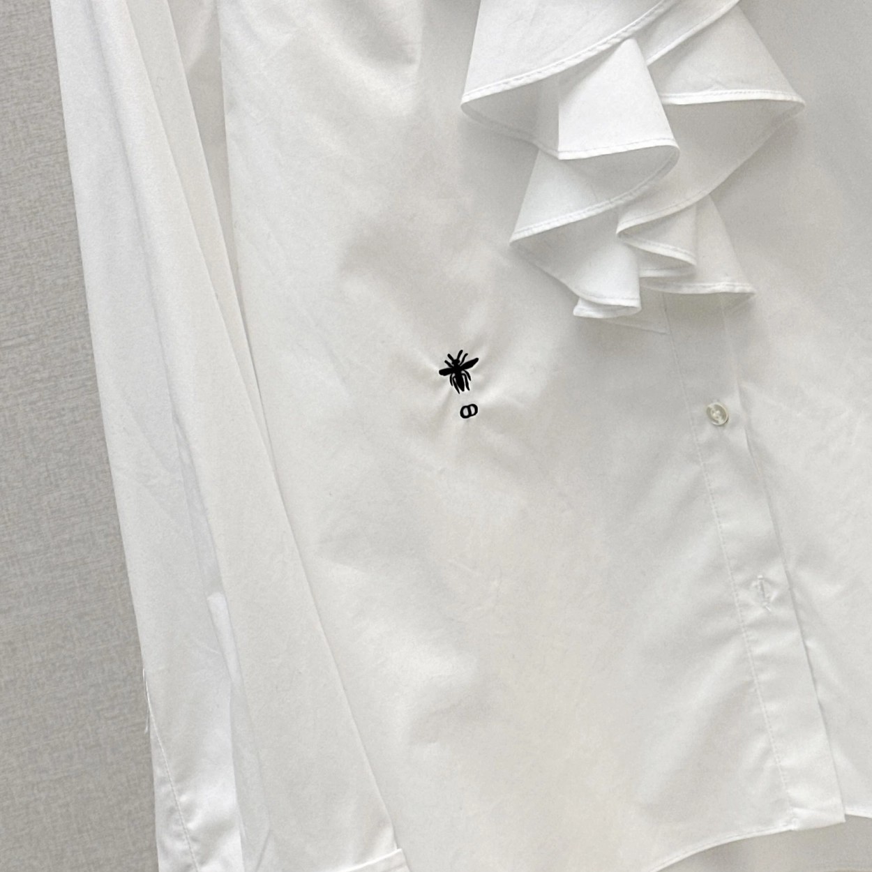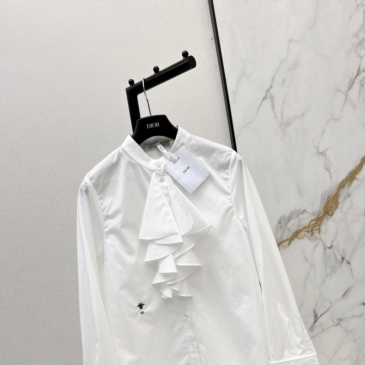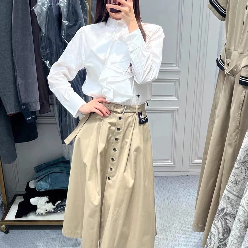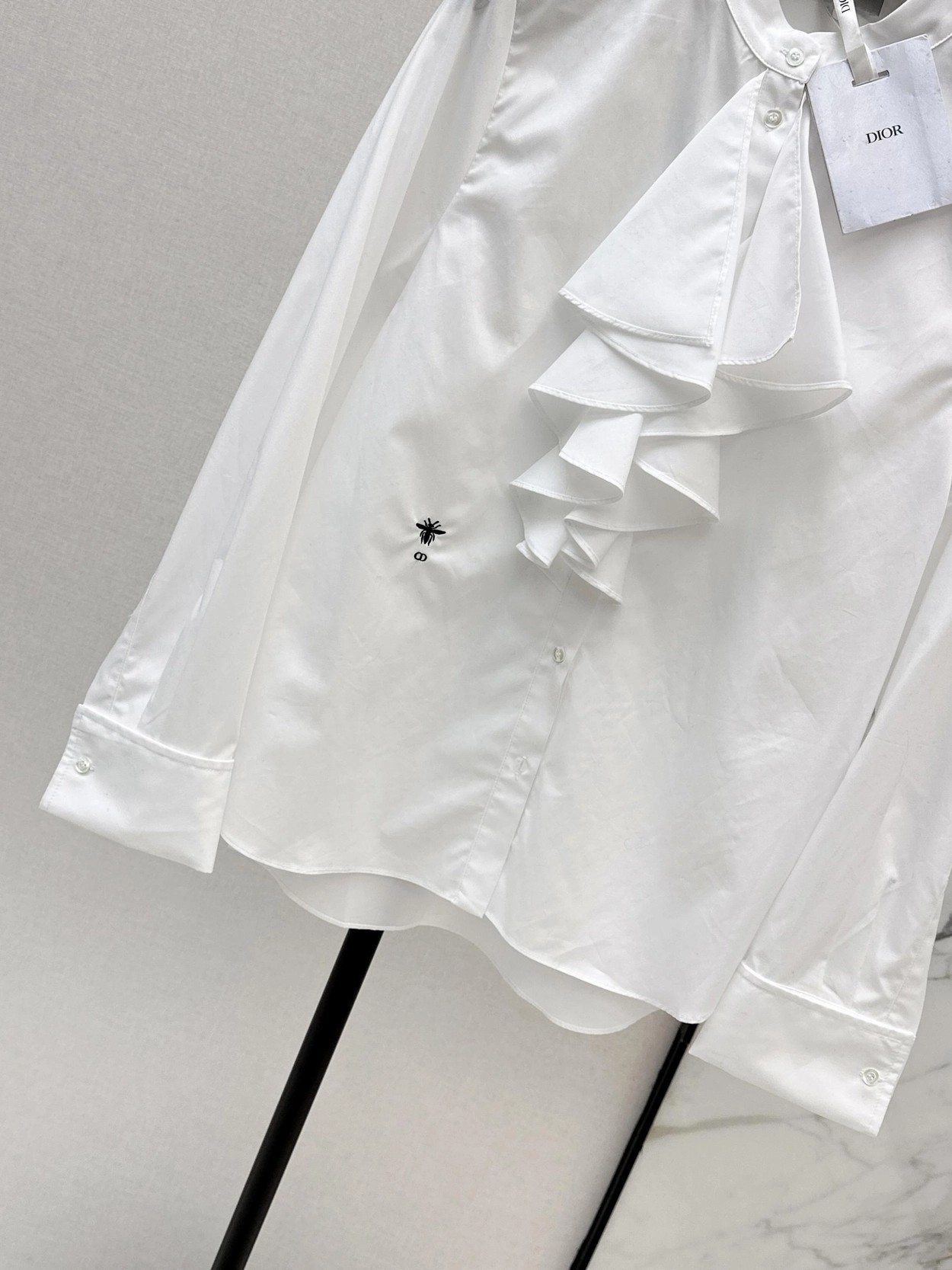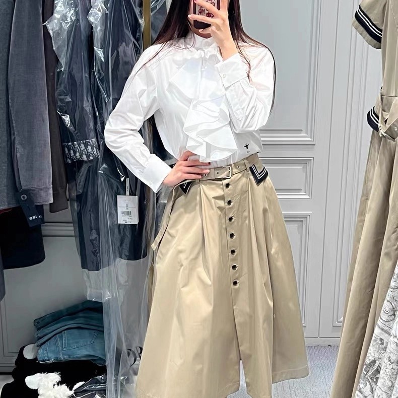 CD 26Ss————早春最新款荷叶边立领衬衫 🤍定位褶皱花边经典前短后长版型显瘦又高挑 荷叶边领口层次感十足 细节精致刺绣CD小蜜蜂 复古宫廷风可甜可盐气质上身美到没朋友 纯棉面料轻薄舒适 演绎慵懒随性的高级单品 自带优雅华丽感 白富美必入 一色现货发售sml 99290210