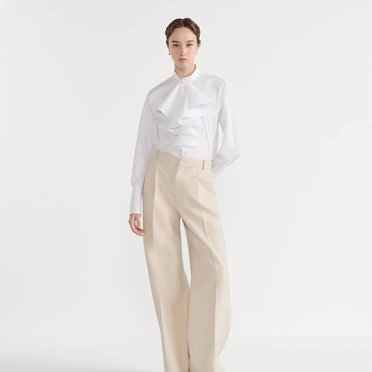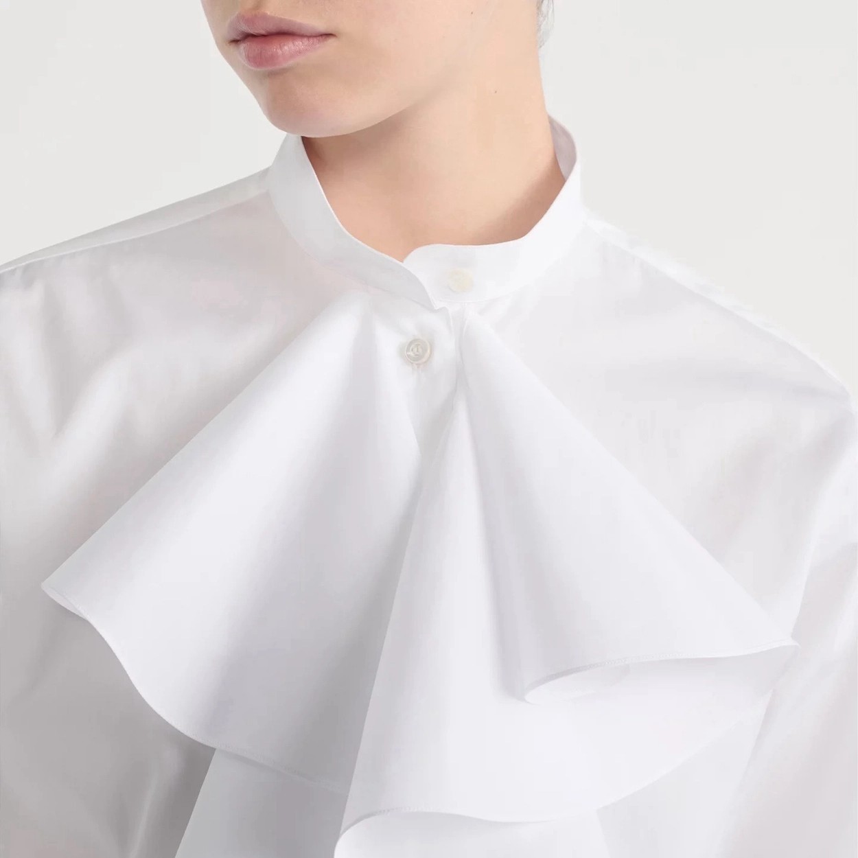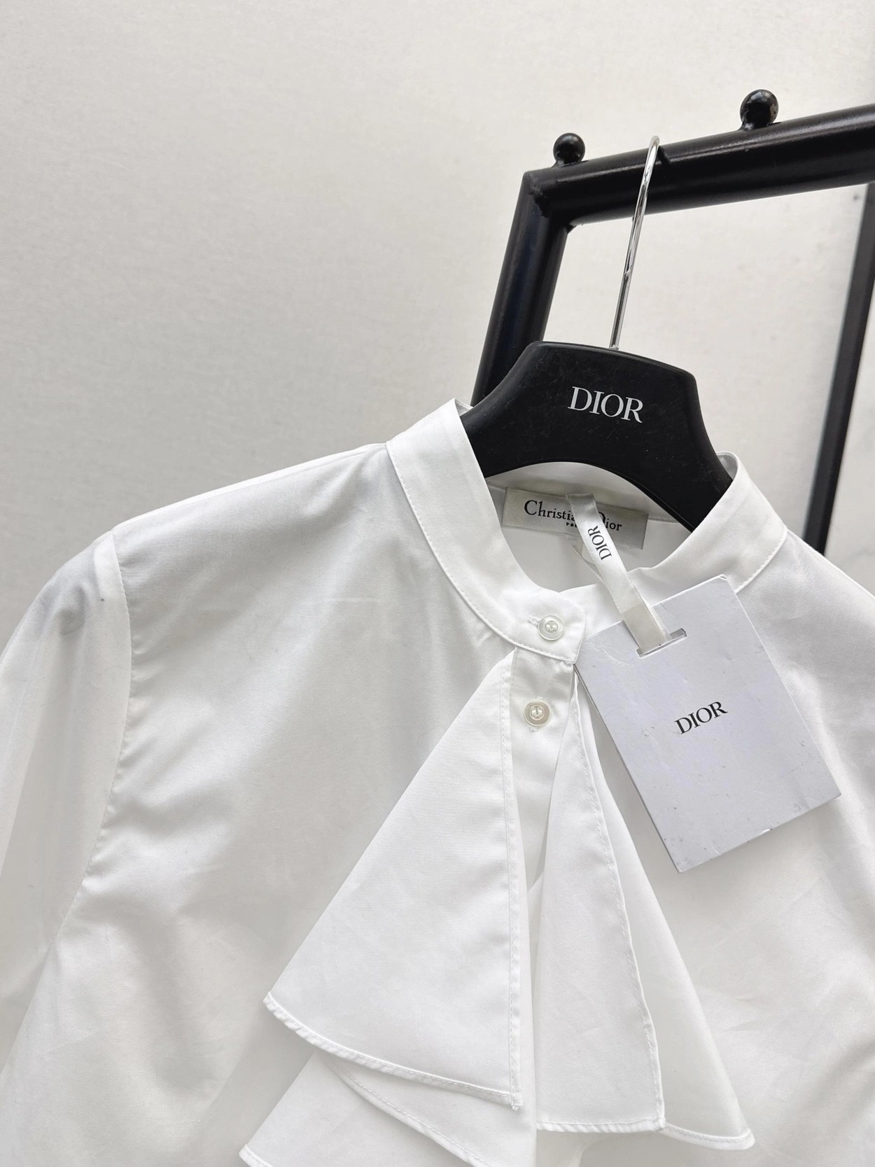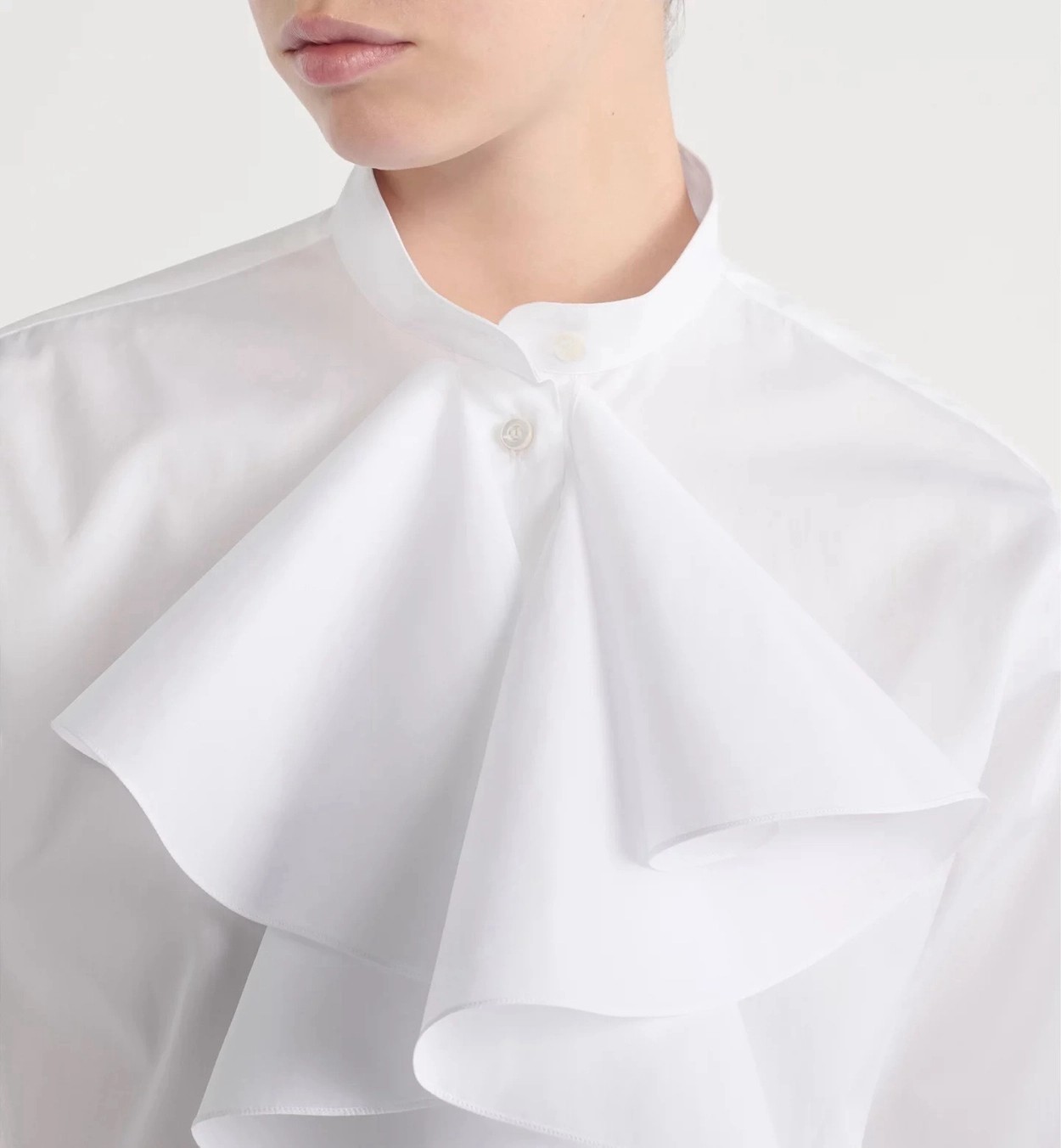 CD 26Ss————早春最新款荷叶边立领衬衫 🤍定位褶皱花边经典前短后长版型显瘦又高挑 荷叶边领口层次感十足 细节精致刺绣CD小蜜蜂 复古宫廷风可甜可盐气质上身美到没朋友 纯棉面料轻薄舒适 演绎慵懒随性的高级单品 自带优雅华丽感 白富美必入 一色现货发售sml 99290210