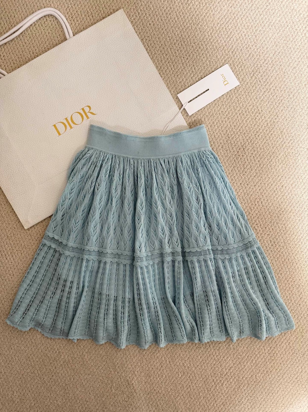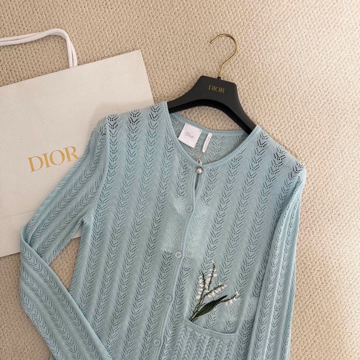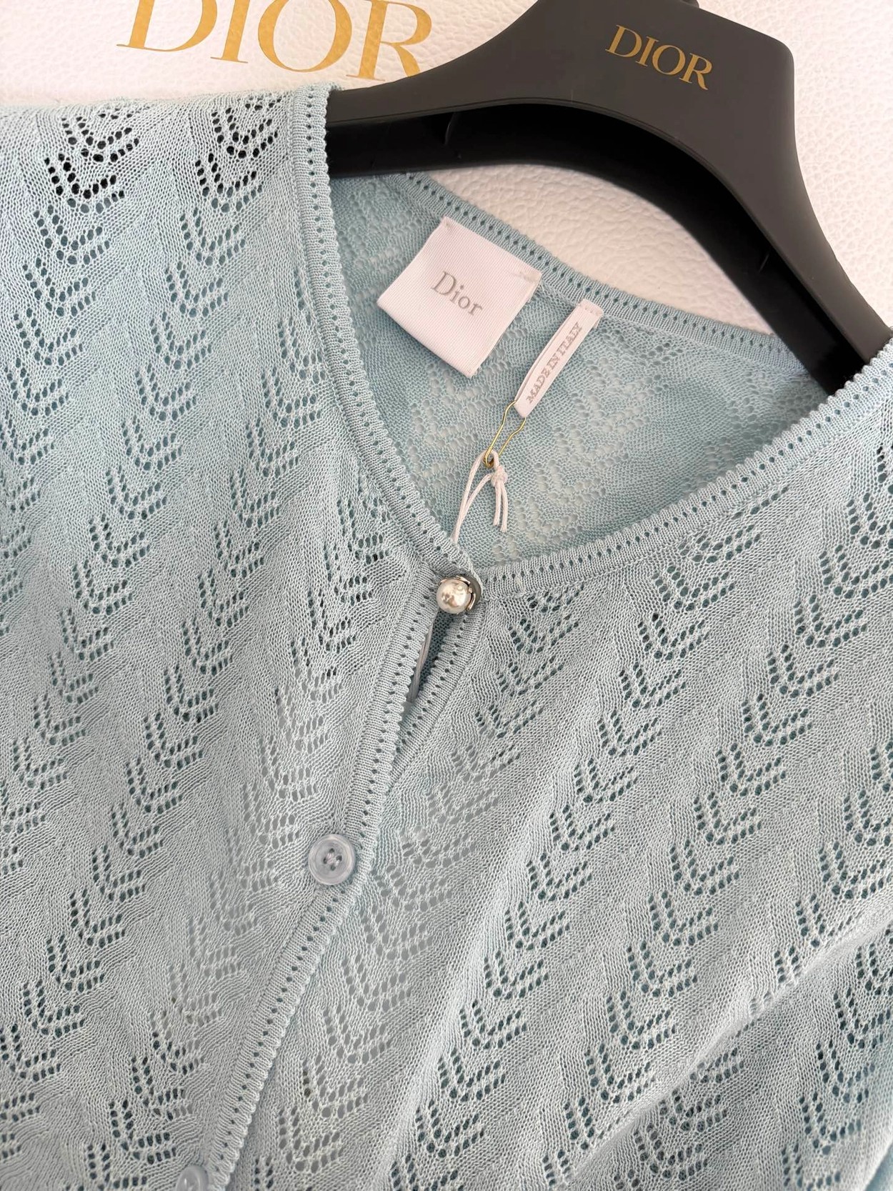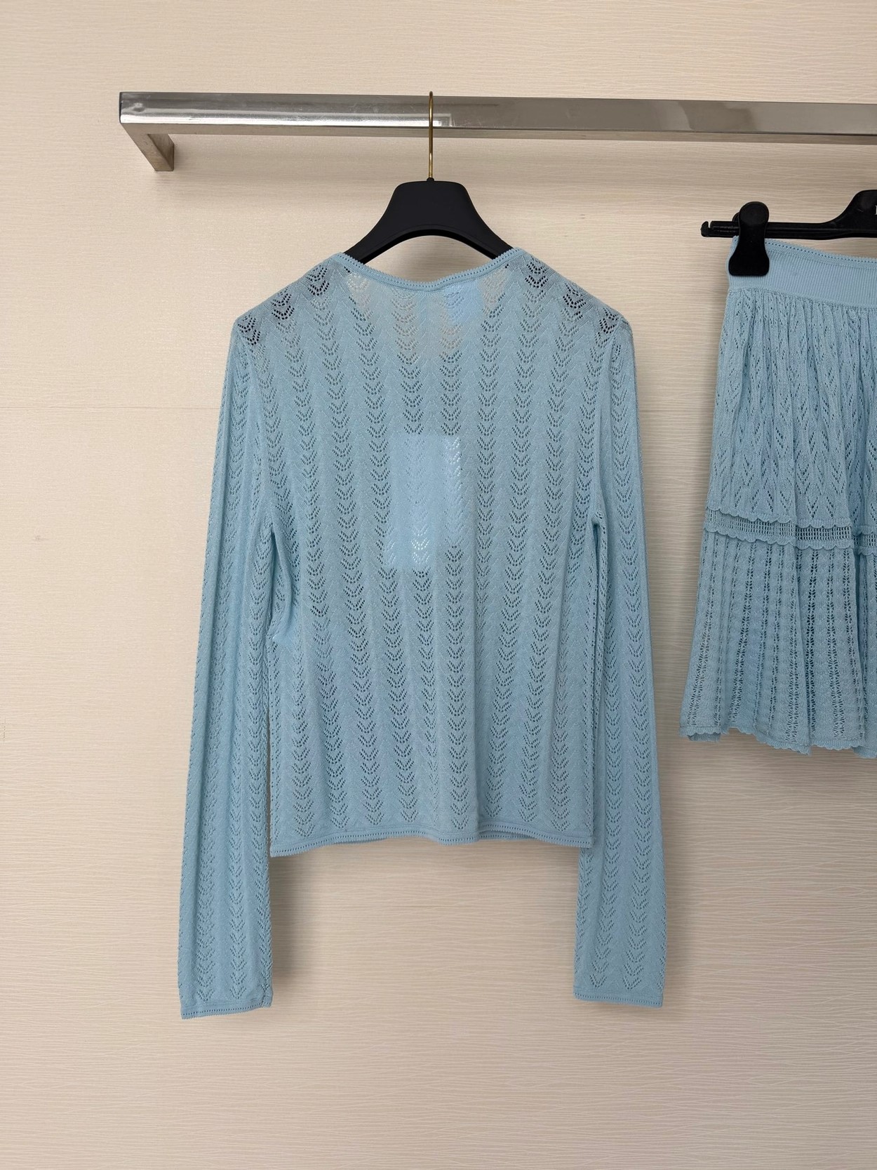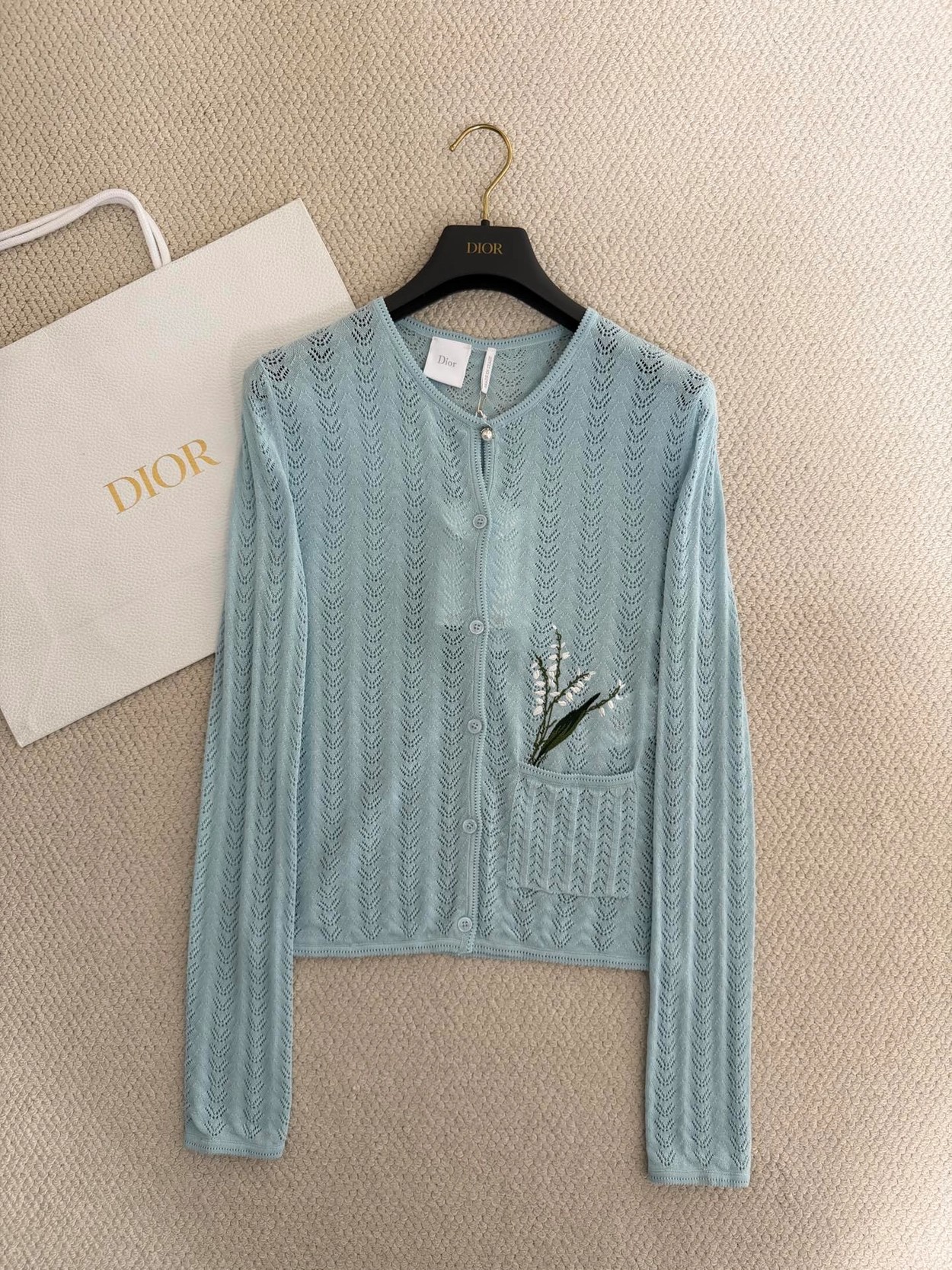 🛒Dio* 26c早春新款铃兰花刺绣开衫&褶皱半裙。Y版定制黏胶和棉纱混纺弹力镂空针织,轻薄柔软亲肤舒爽。合身圆领双口袋小开衫口袋花卉刺绣装饰,领口铃兰花苞纽扣装饰。高腰弹力褶皱A字半裙,配送防走光真丝内衬。一套搭配清爽纯美,精美典雅。