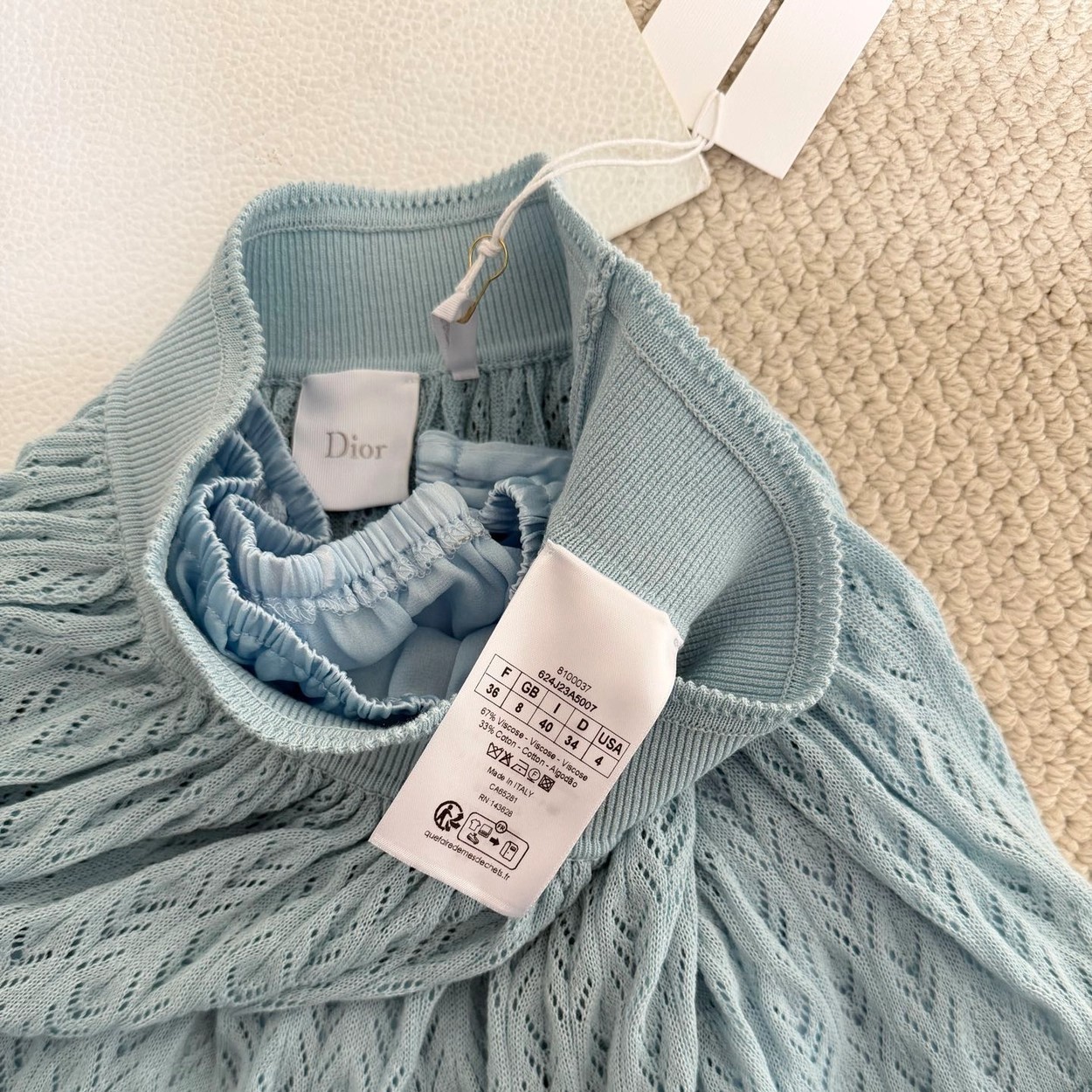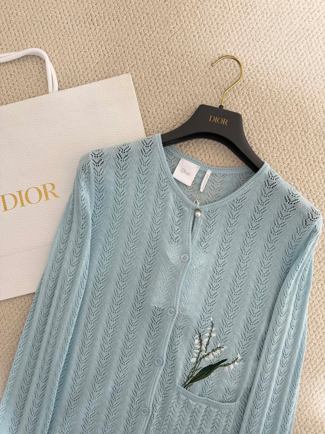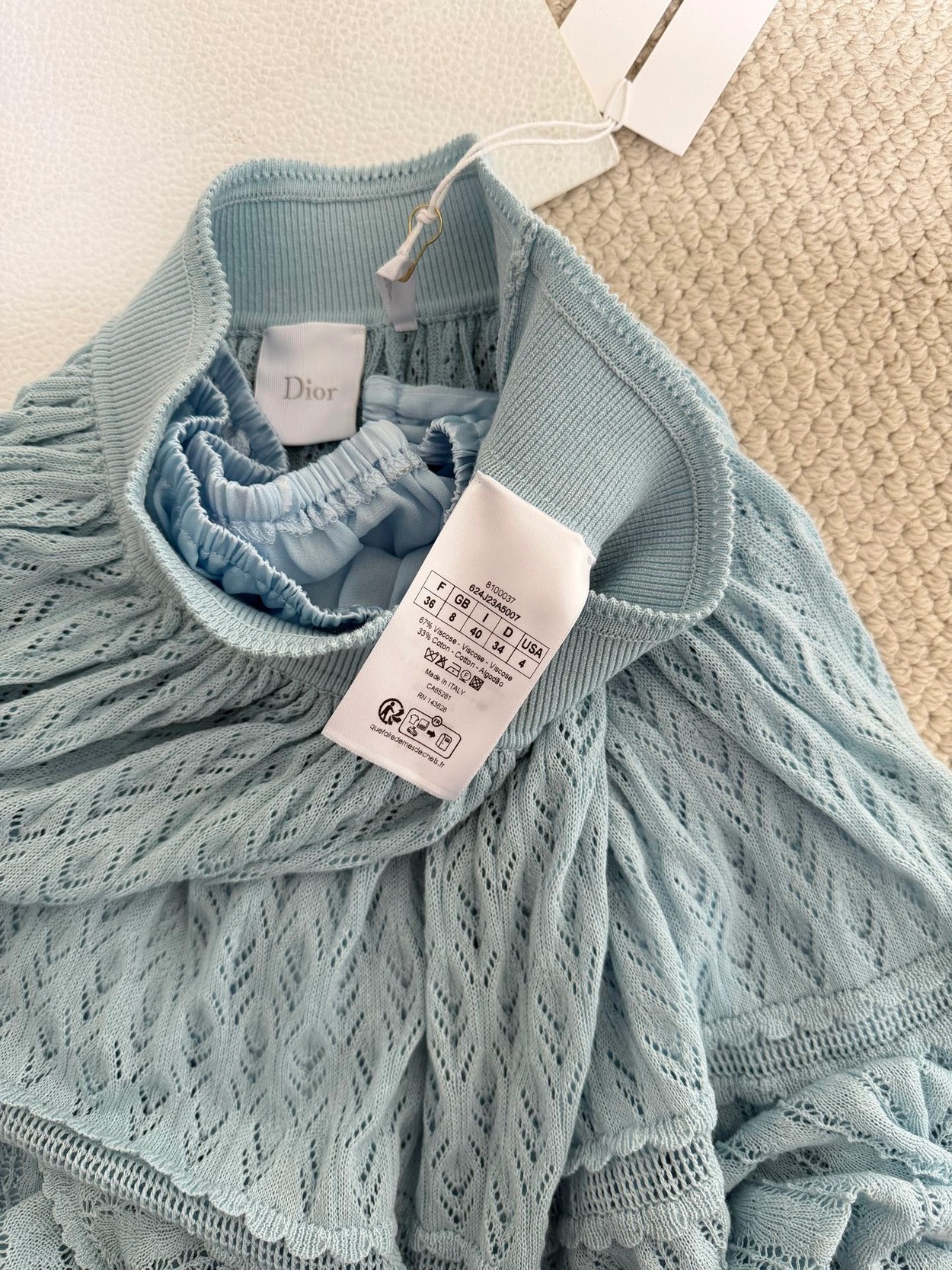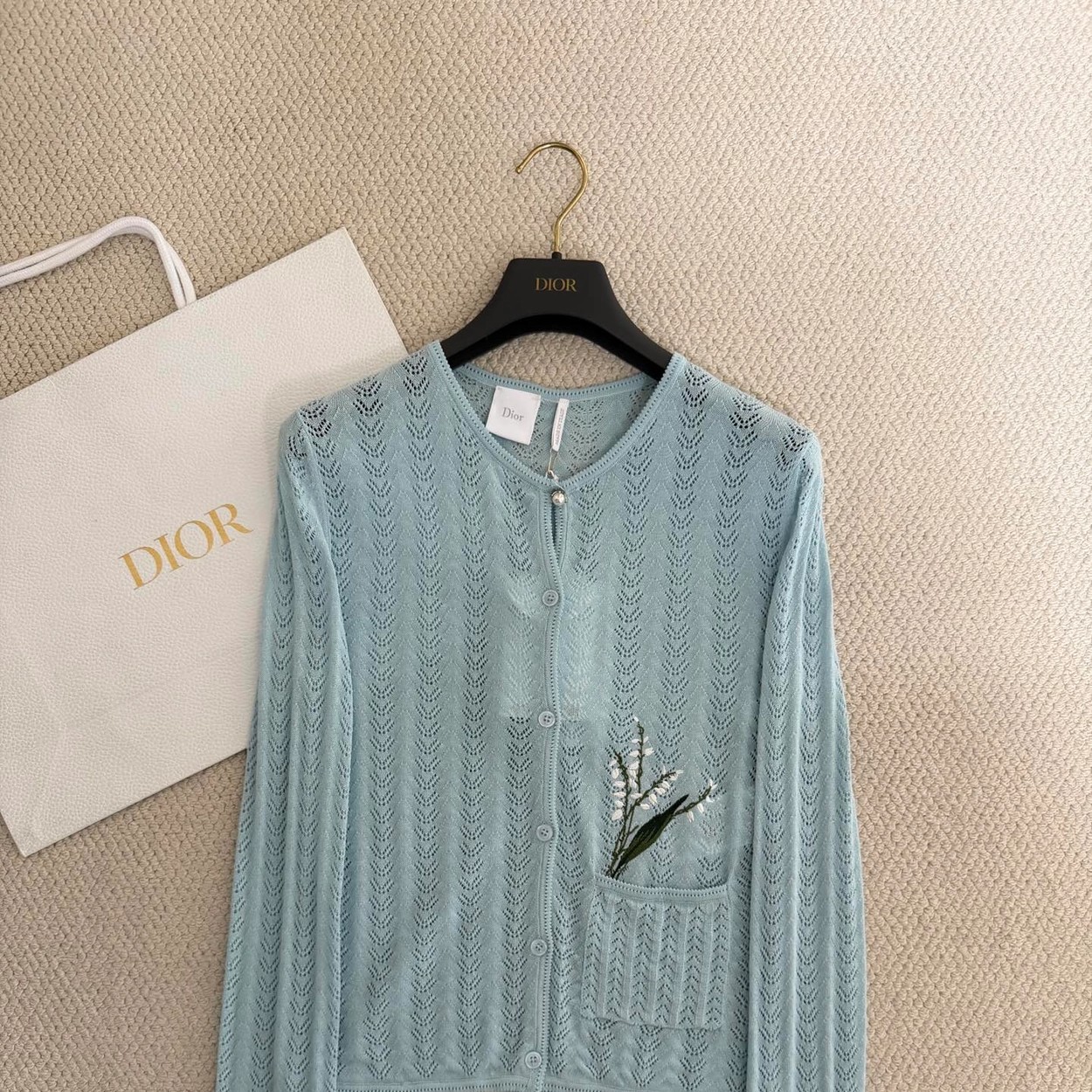 🛒Dio* 26c早春新款铃兰花刺绣开衫&褶皱半裙。Y版定制黏胶和棉纱混纺弹力镂空针织,轻薄柔软亲肤舒爽。合身圆领双口袋小开衫口袋花卉刺绣装饰,领口铃兰花苞纽扣装饰。高腰弹力褶皱A字半裙,配送防走光真丝内衬。一套搭配清爽纯美,精美典雅。