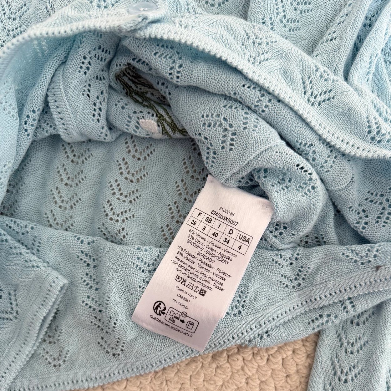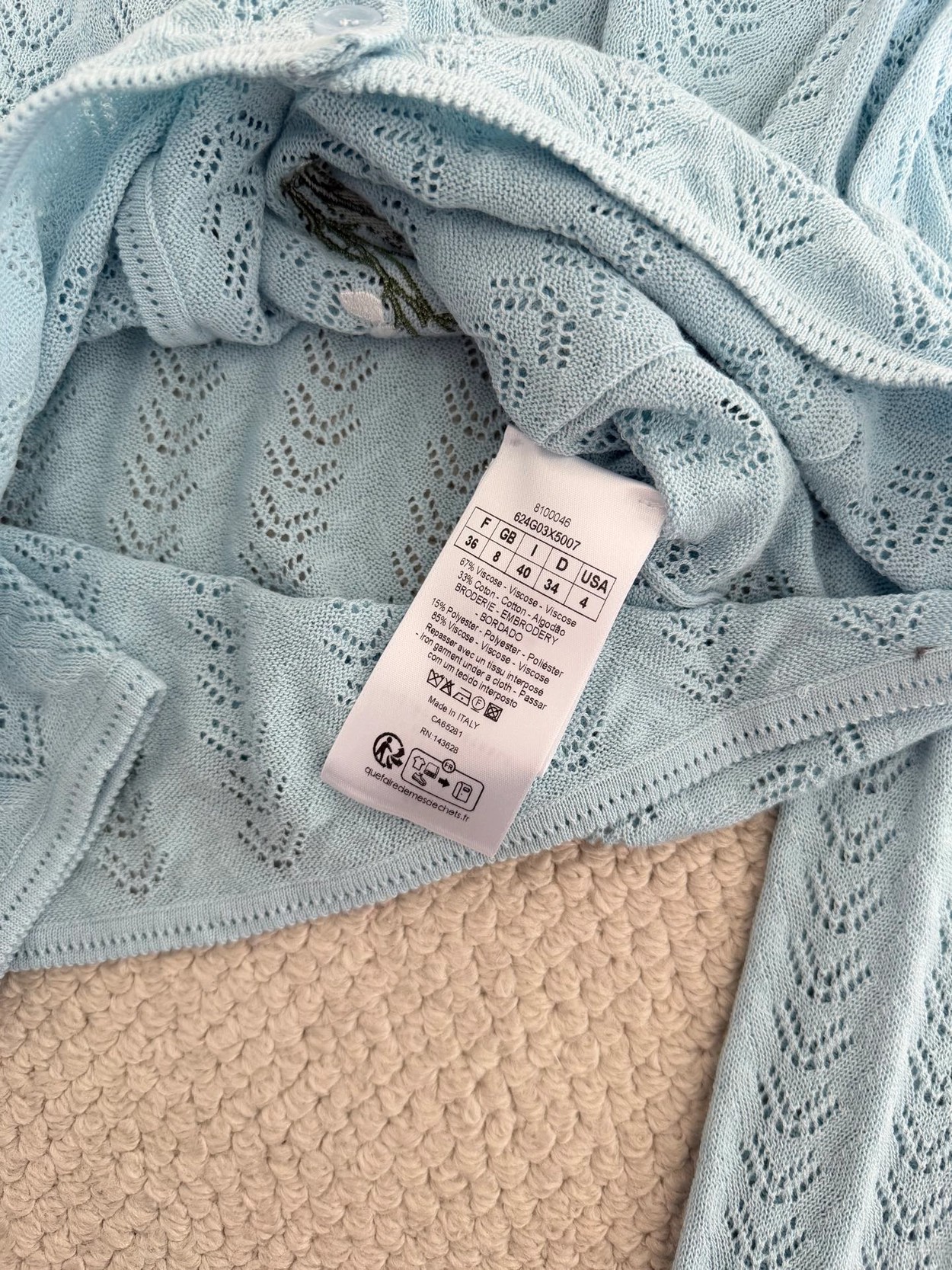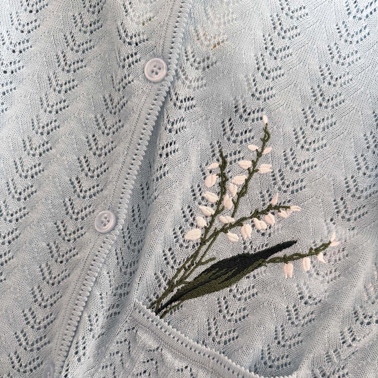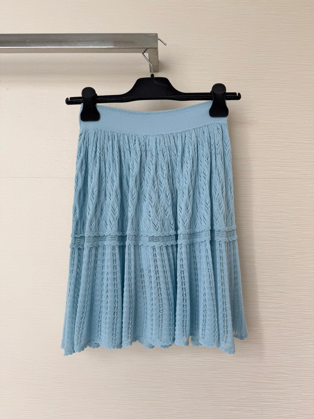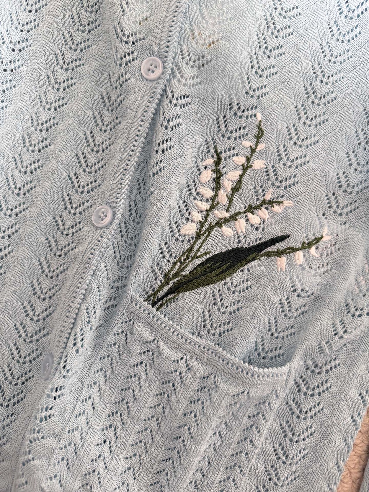 🛒Dio* 26c早春新款铃兰花刺绣开衫&褶皱半裙。Y版定制黏胶和棉纱混纺弹力镂空针织,轻薄柔软亲肤舒爽。合身圆领双口袋小开衫口袋花卉刺绣装饰,领口铃兰花苞纽扣装饰。高腰弹力褶皱A字半裙,配送防走光真丝内衬。一套搭配清爽纯美,精美典雅。