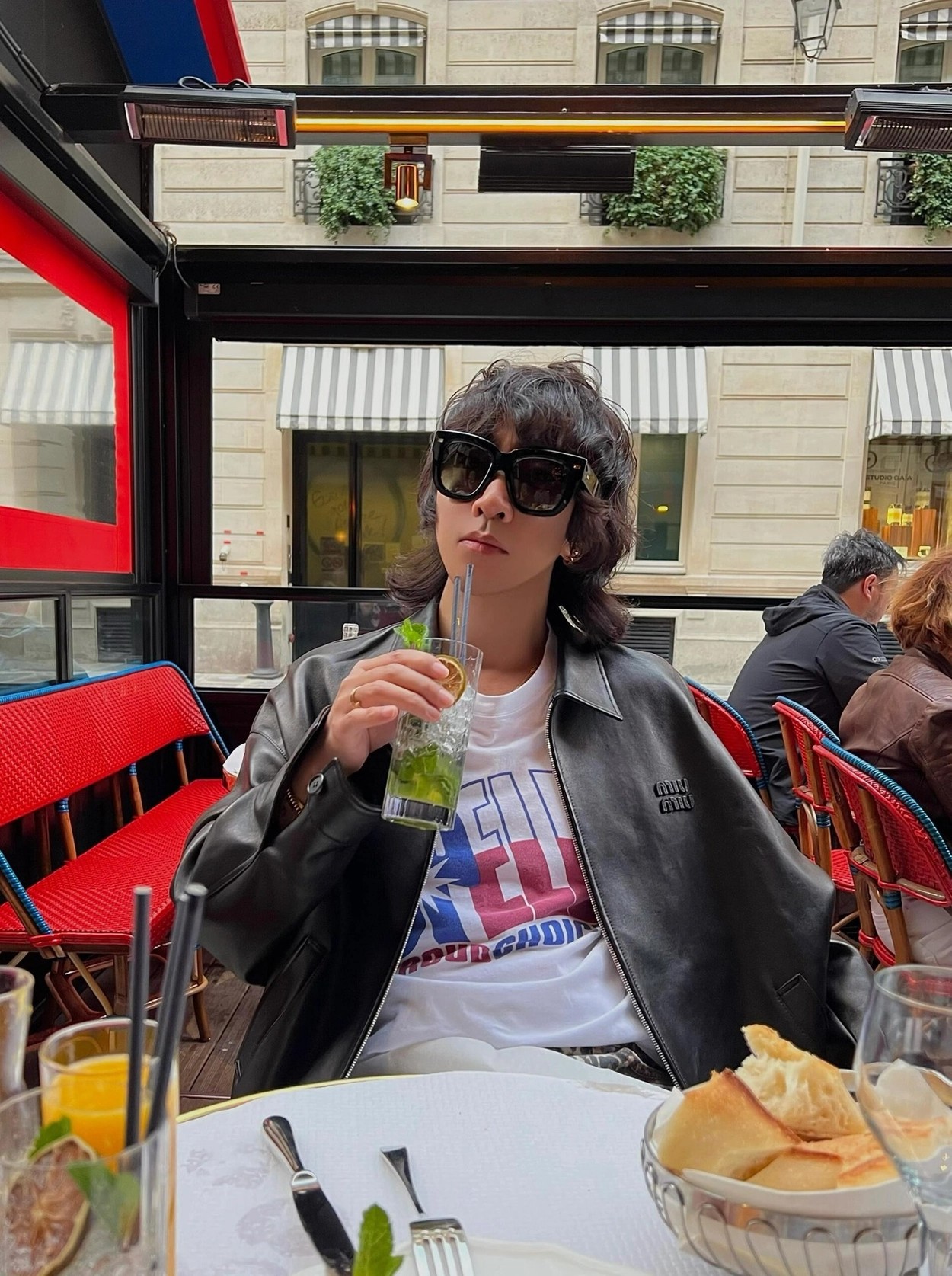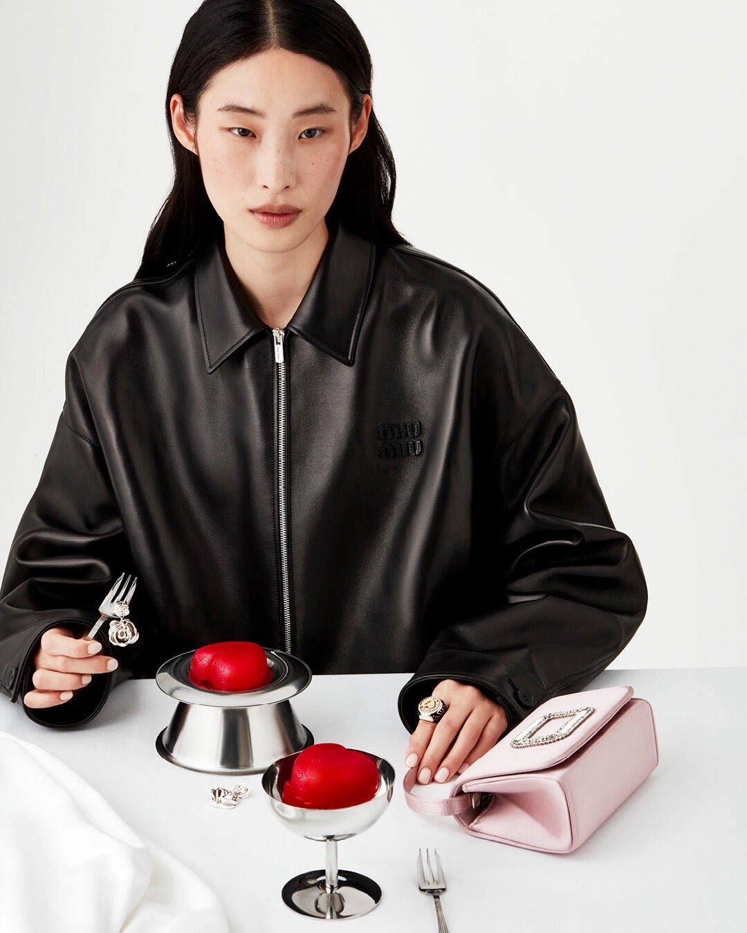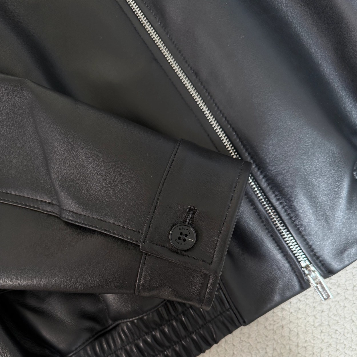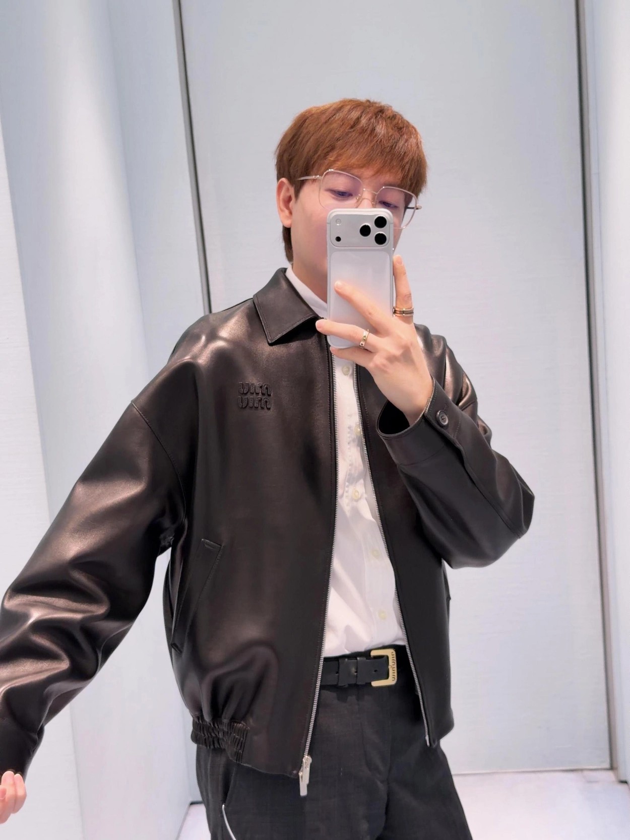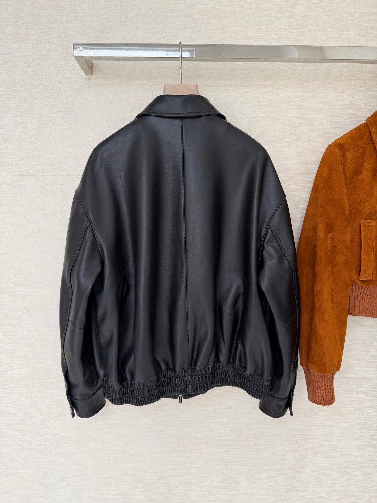 🛒Miumi* 25fw 秋冬新款翻领皮夹克外套。Y版定制高级进口小羊皮,如肌肤般富有弹性和光泽感。气质翻领,甜美落肩袖宽大立体微阔夹克版型,对身材包容性极佳,🖤少女感甜酷辣妹风轻松驾驭!